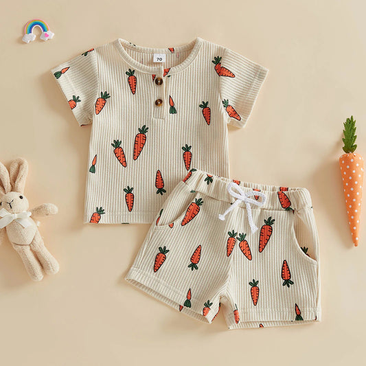Baby Toddler Boys Girls 2Pcs Easter Outfit Carrot Print Short Sleeve Crew Neck T-shirt Top with Shorts 2-piece Set