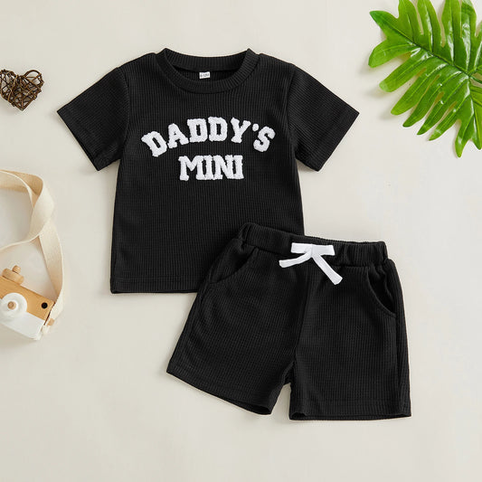 Baby Toddler Boys 2Pcs Daddy's Mini Summer 2 Piece Outfits Short Sleeve Round Neck Letter Embroidery Waffle Top and Shorts Set