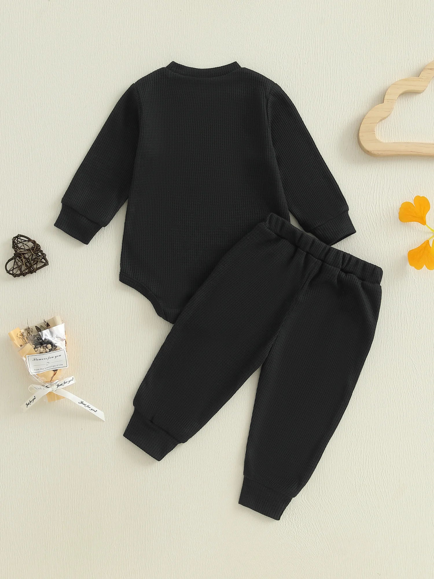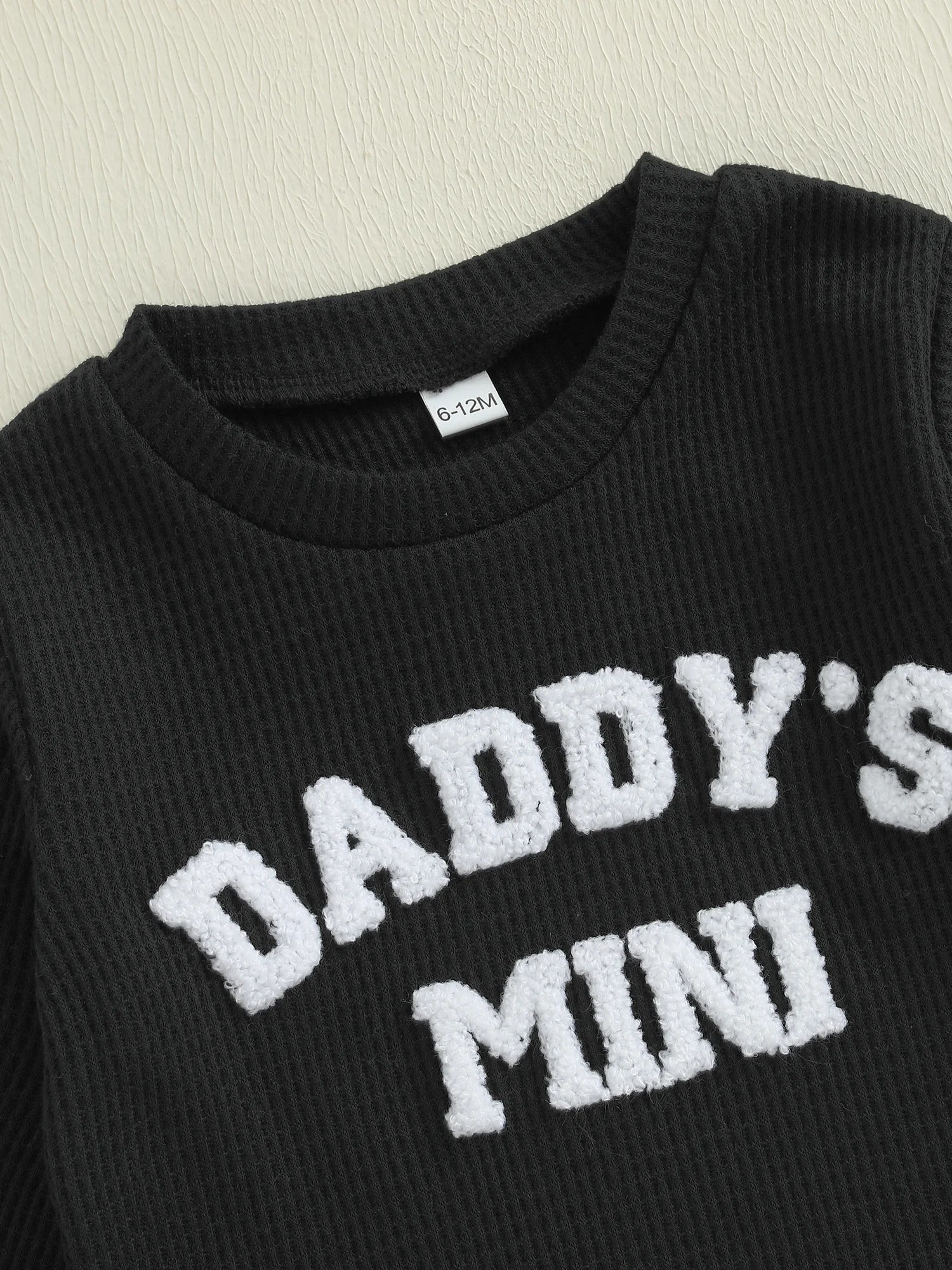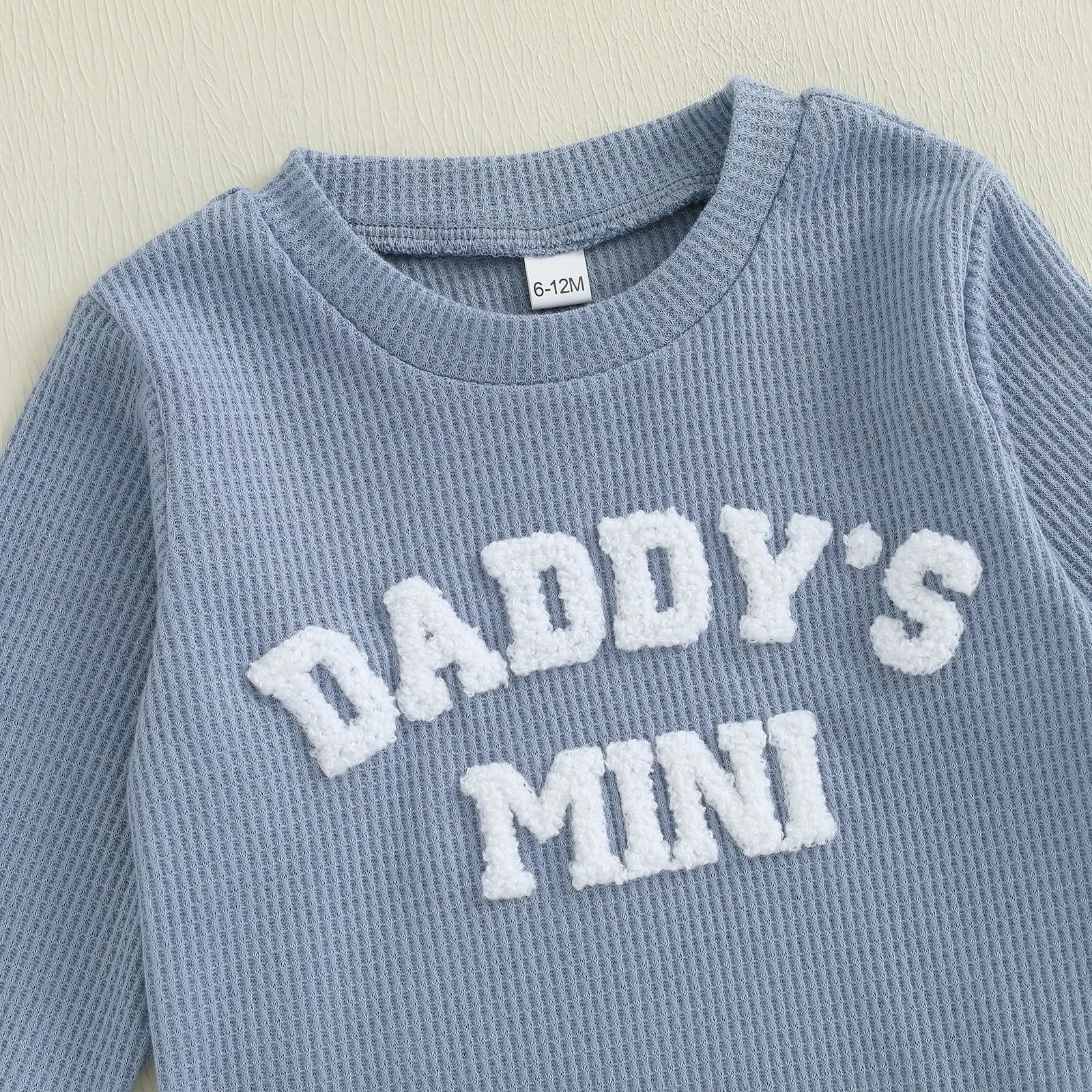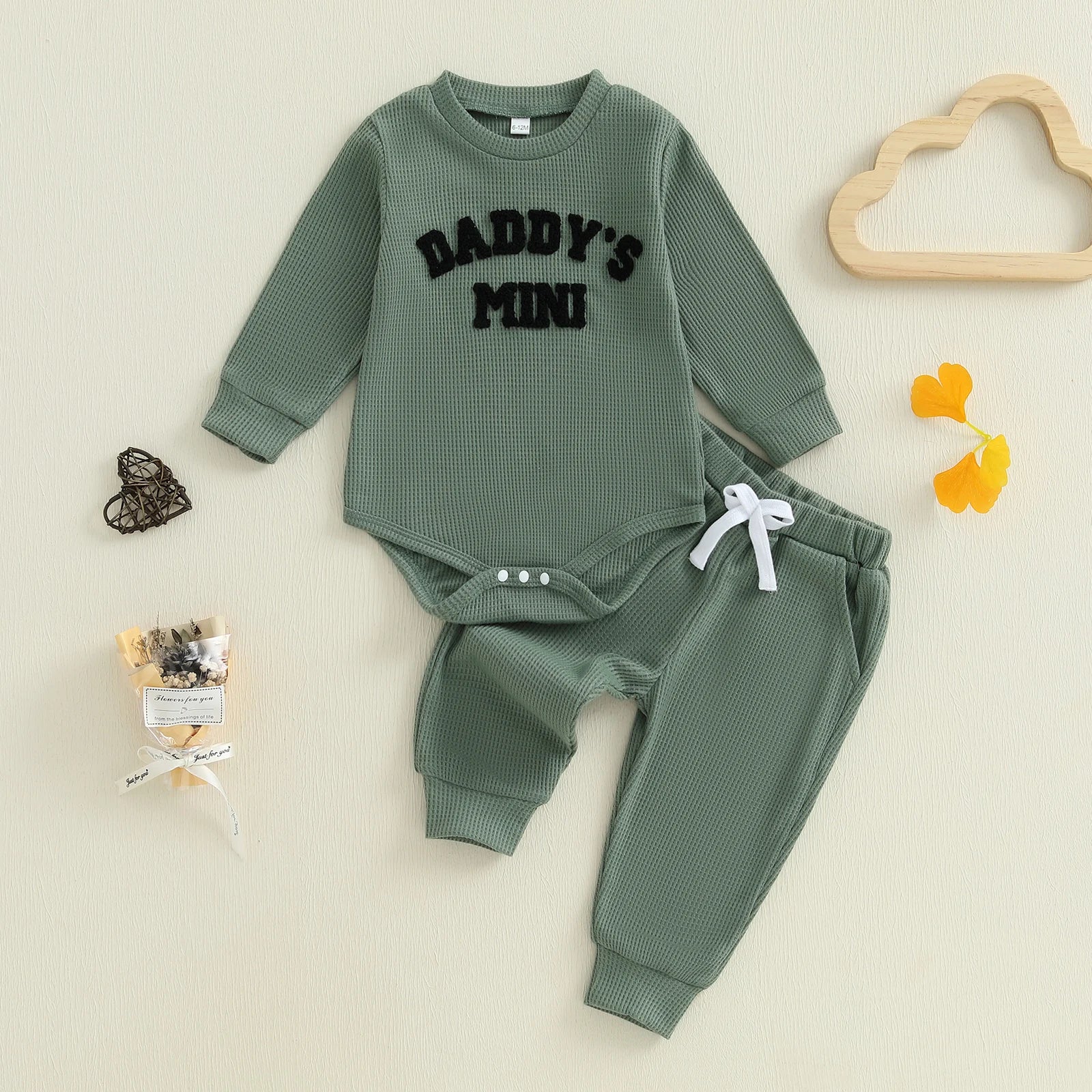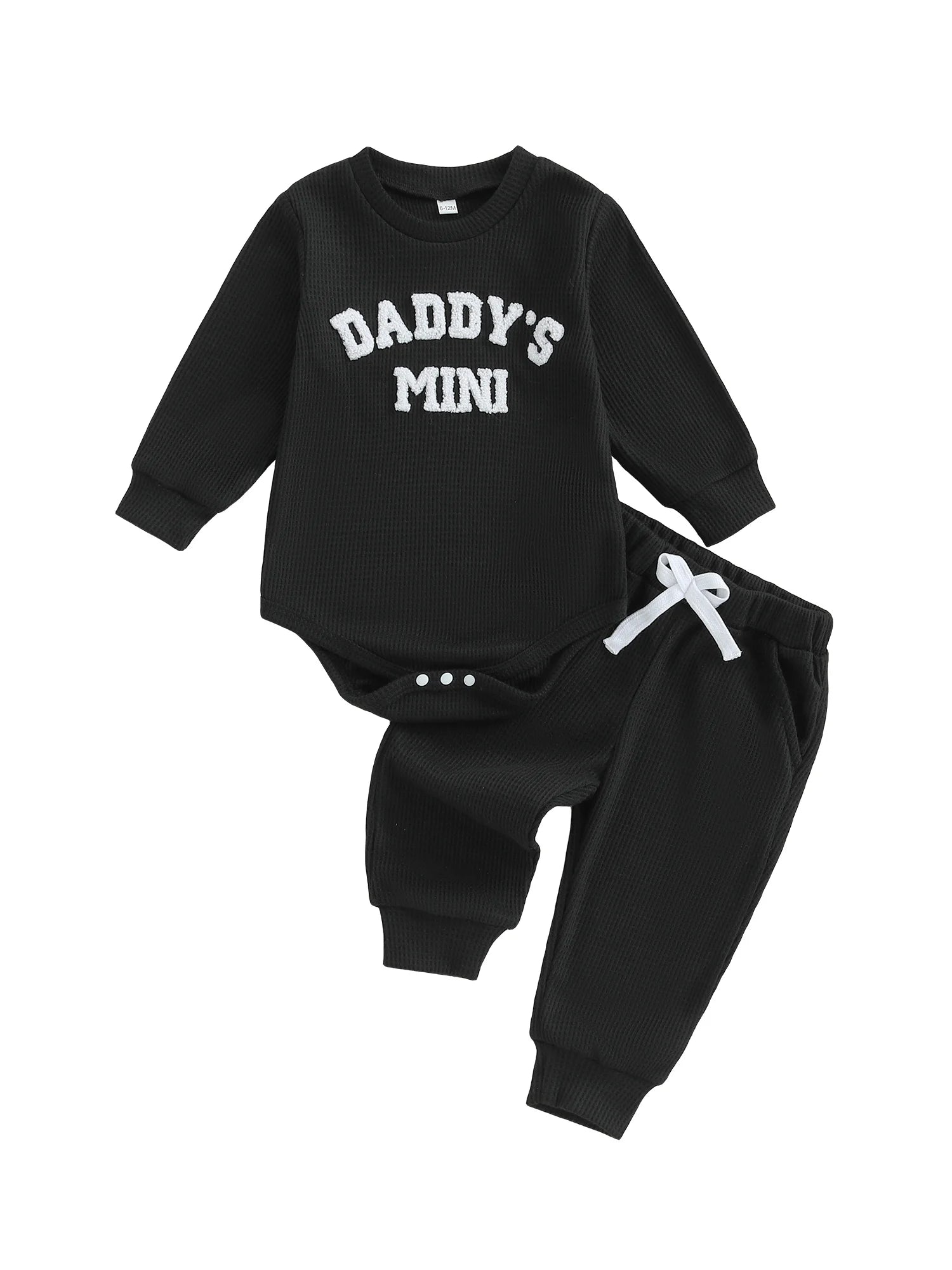 Baby Boy 2Pcs Daddy's Mini Fall Outfit Letter Embroidery Long Sleeve Romper Elastic Waist Jogger Pants 2Pcs Set