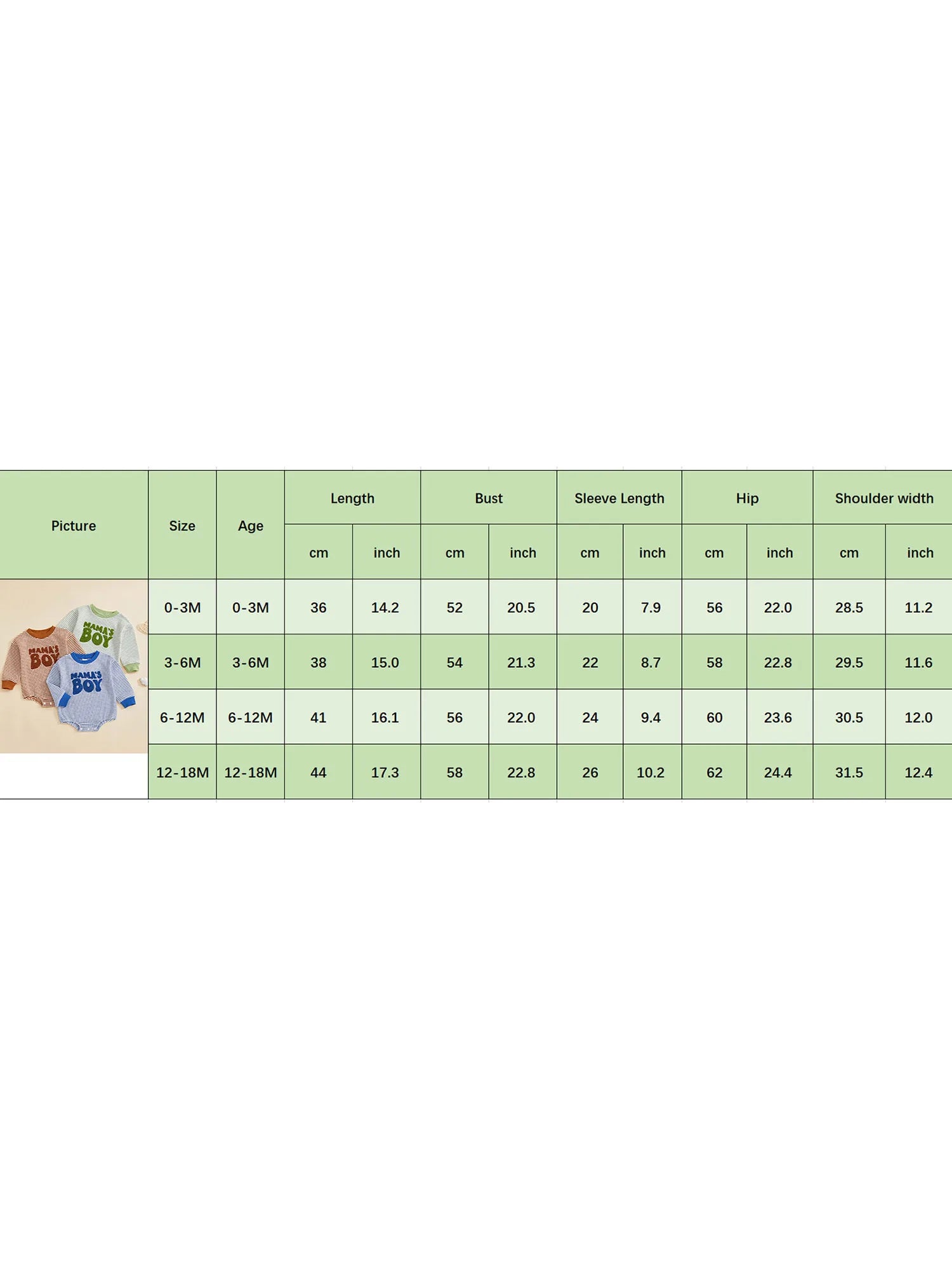 0-3M Length: 14.17 Bust: 20.47 Sleeve: 7.87 Shoulder: 11.22 Hip: 22.05 Suggest Age: 0-3 Months