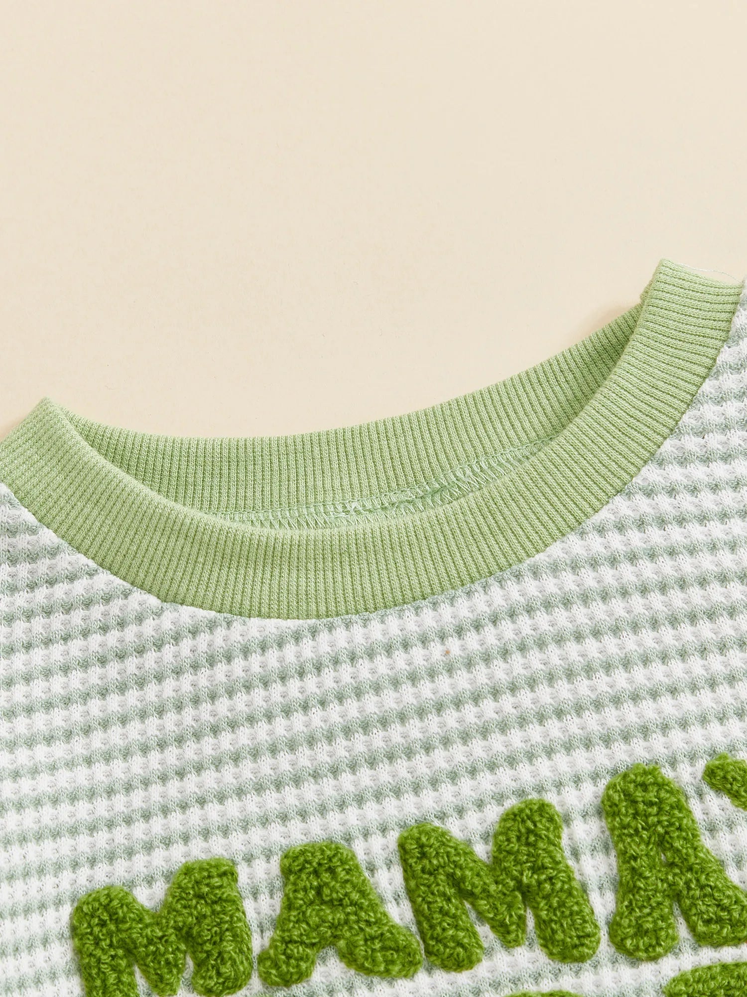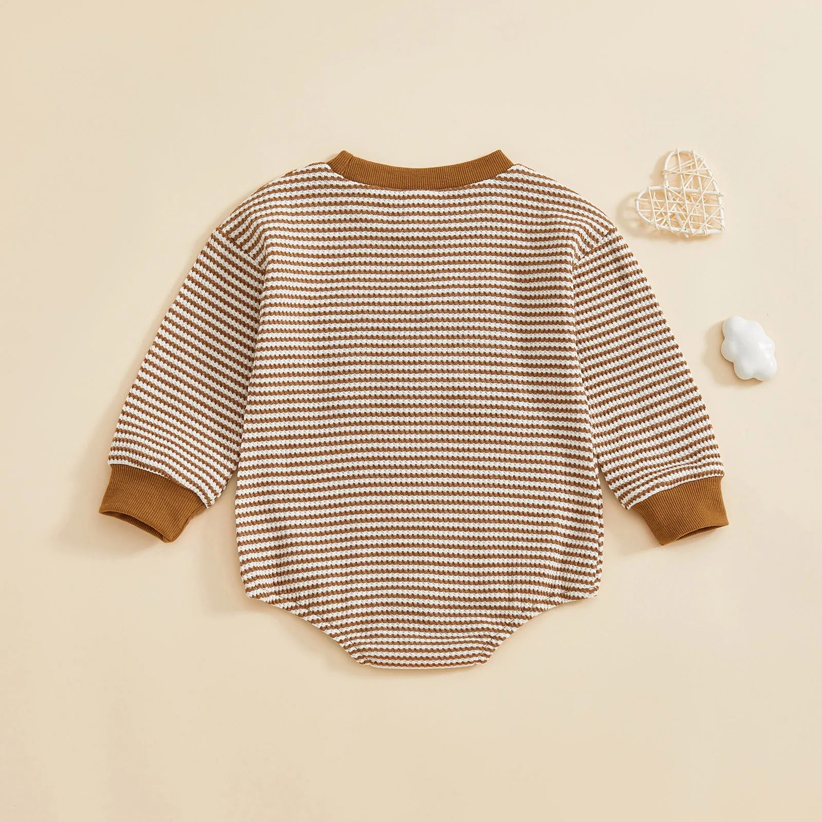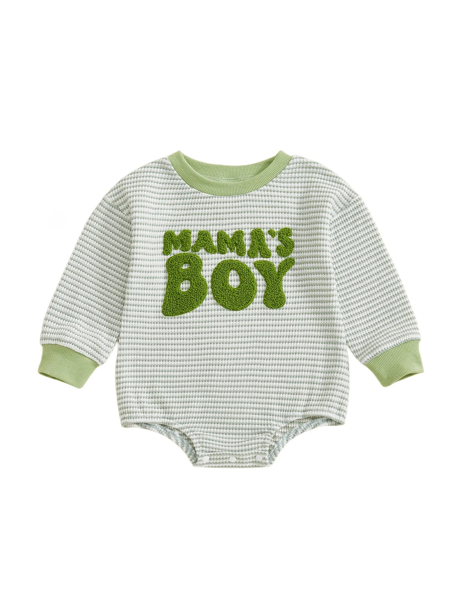 Baby Boy Romper Long Sleeve Crew Neck Striped Embroidery Mama's Boy Letters Fall Bodysuit