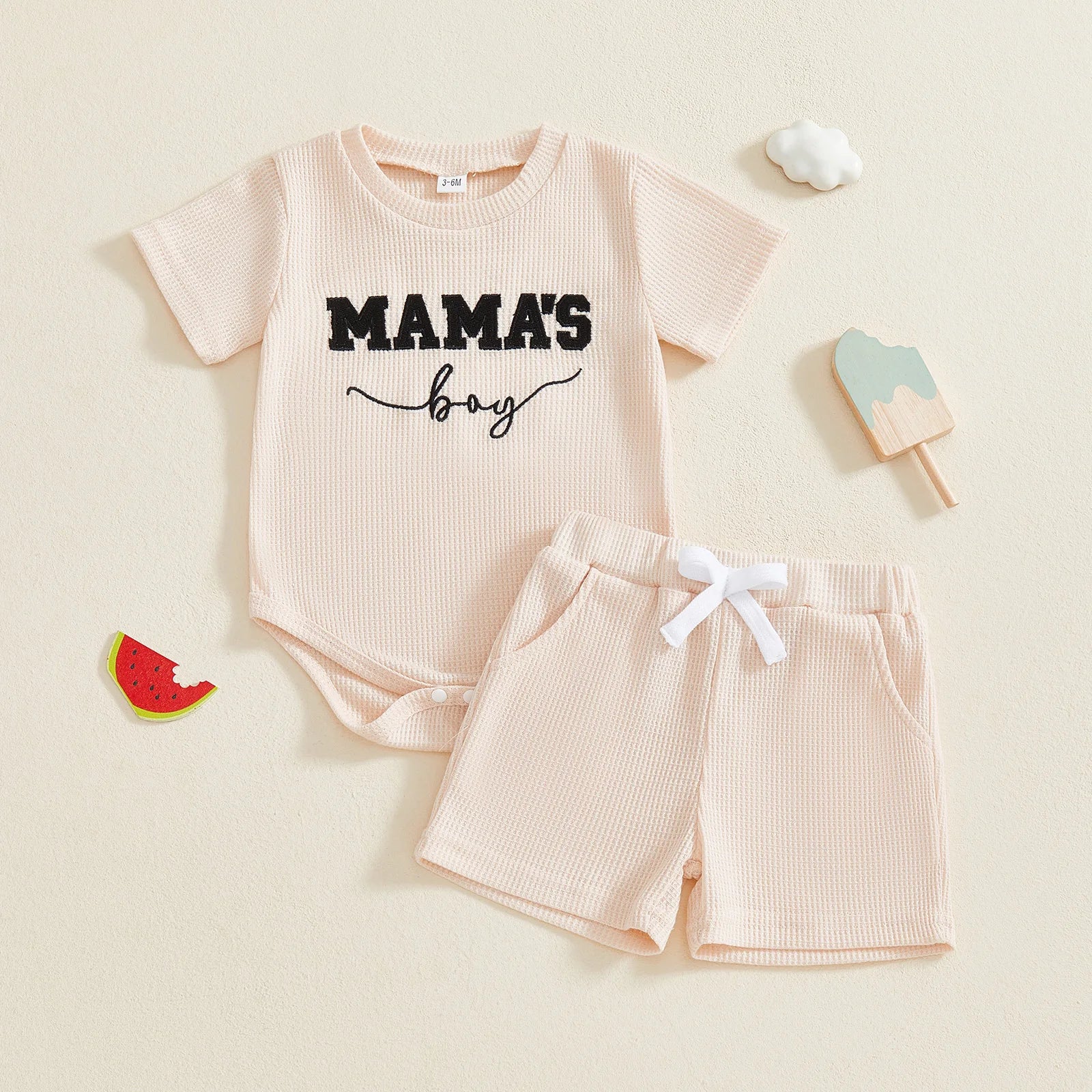 Baby Boys 2Pcs Mama's Boy Shorts Set Letter Embroidered Short Sleeve Romper and Shorts 2 Piece Waffle Knit Summer Outfit