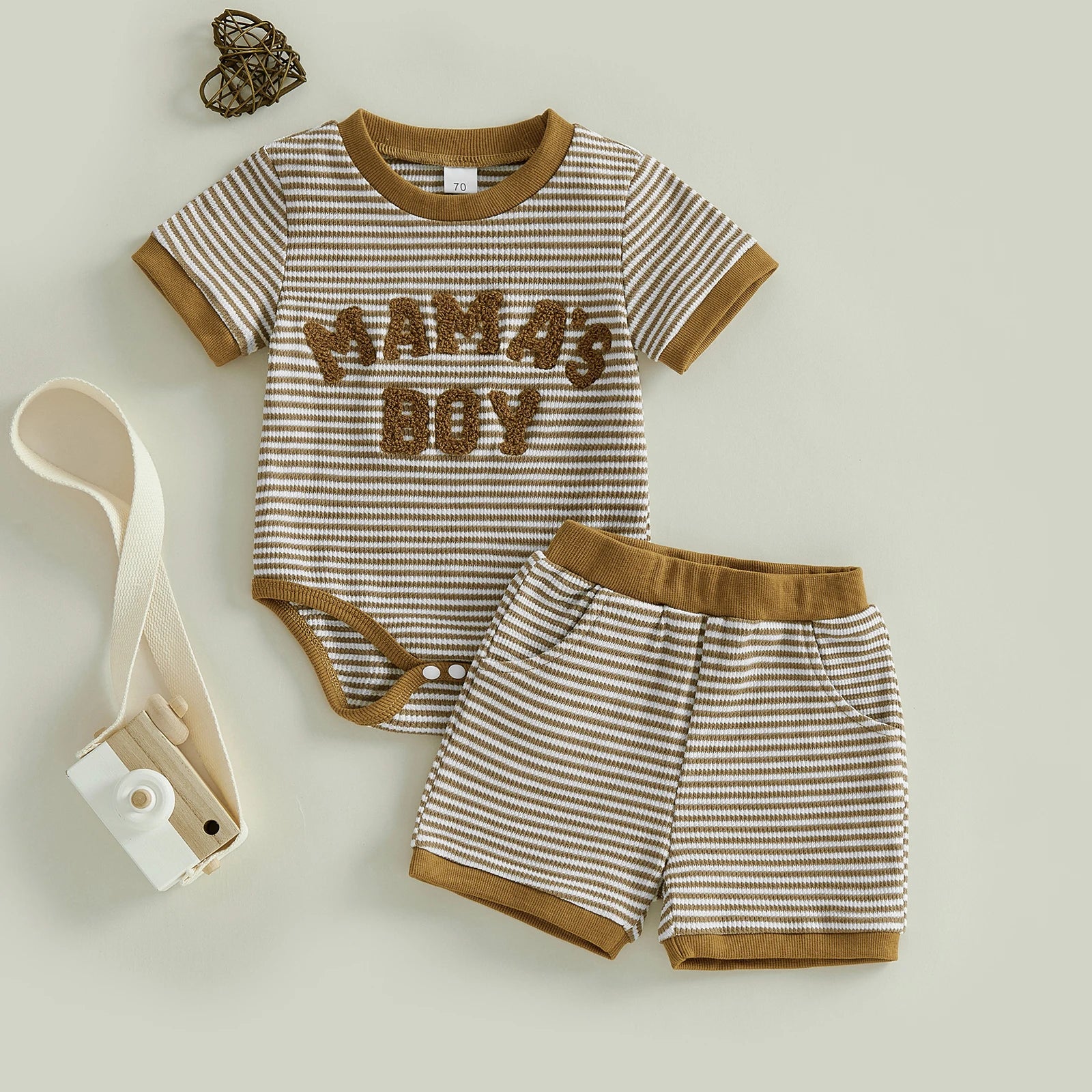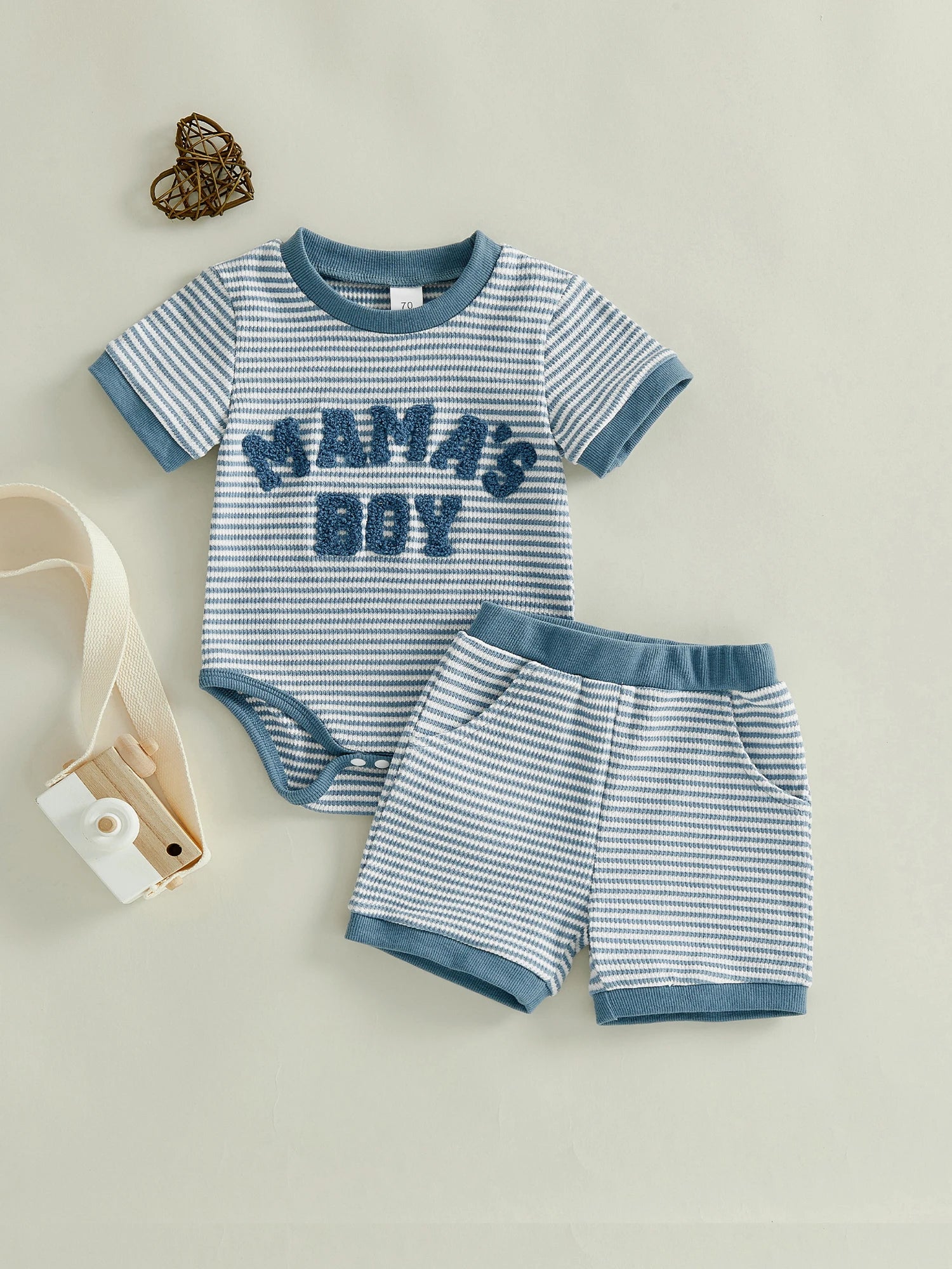 Baby Boys 2Pcs Mama's Boy Summer Set Striped Letter Embroidery Short Sleeve Romper and Shorts 2 Piece Outfit