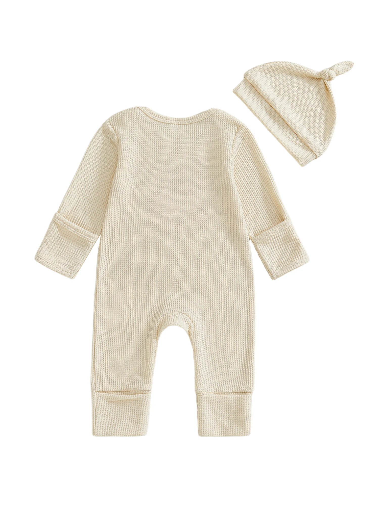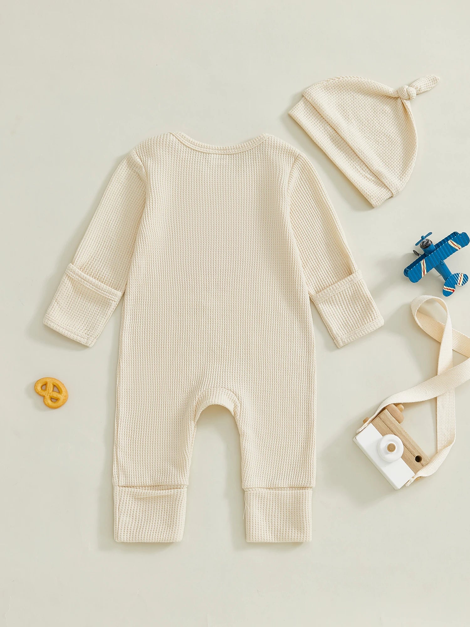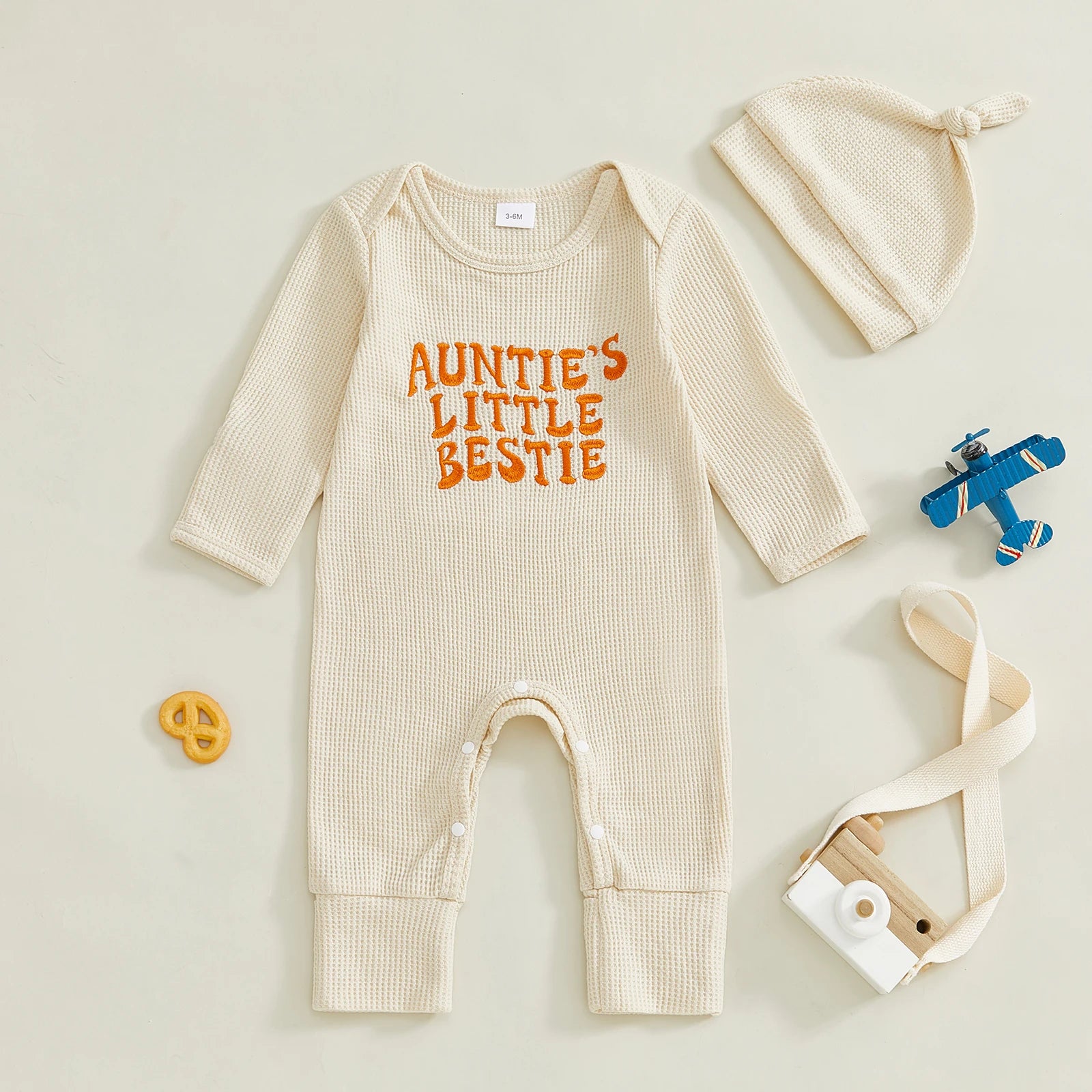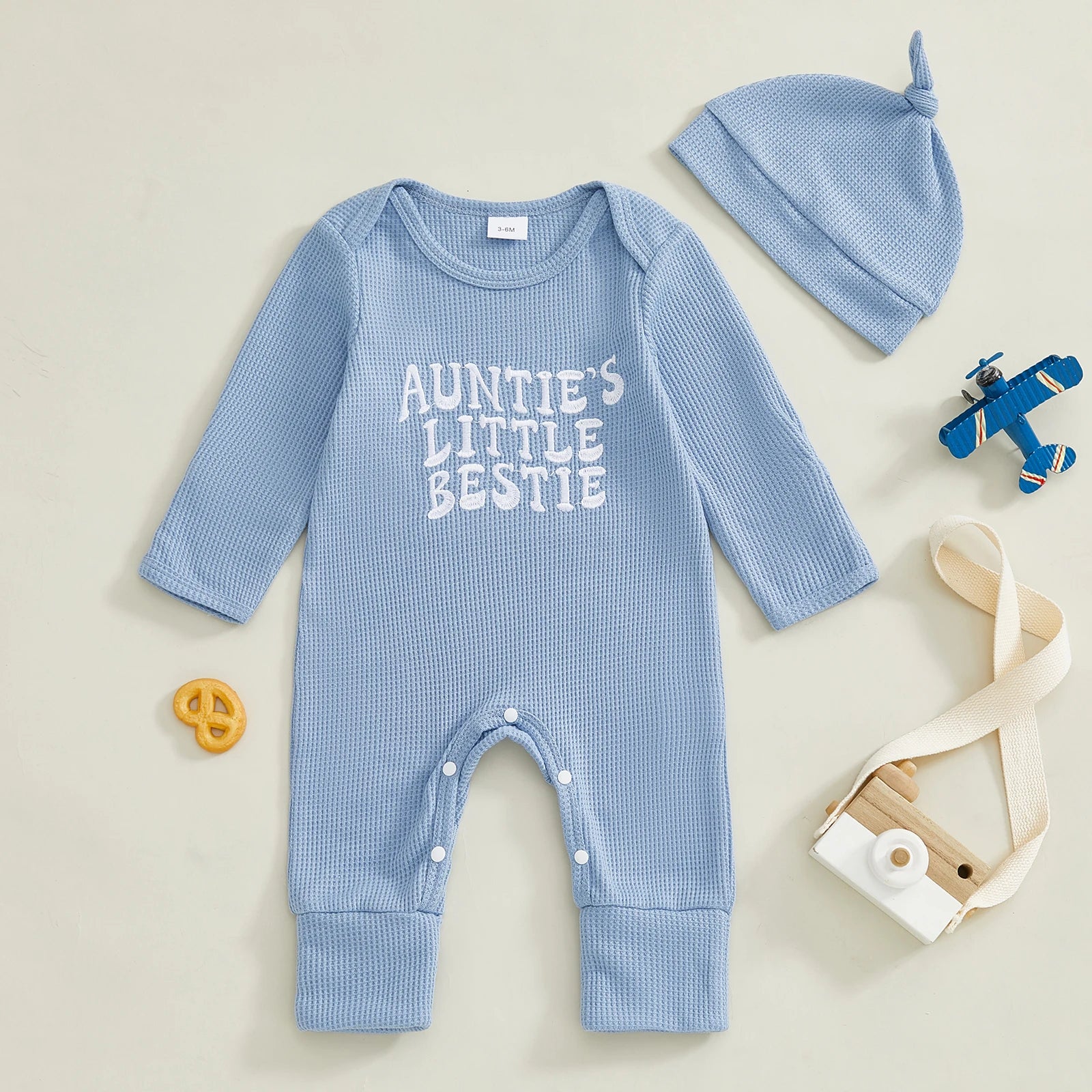 Baby Boys Girls 2Pcs Auntie's Little Bestie Fall Outfits Long Sleeve Letter Embroidery Jumpsuit with Hat Set Clothes