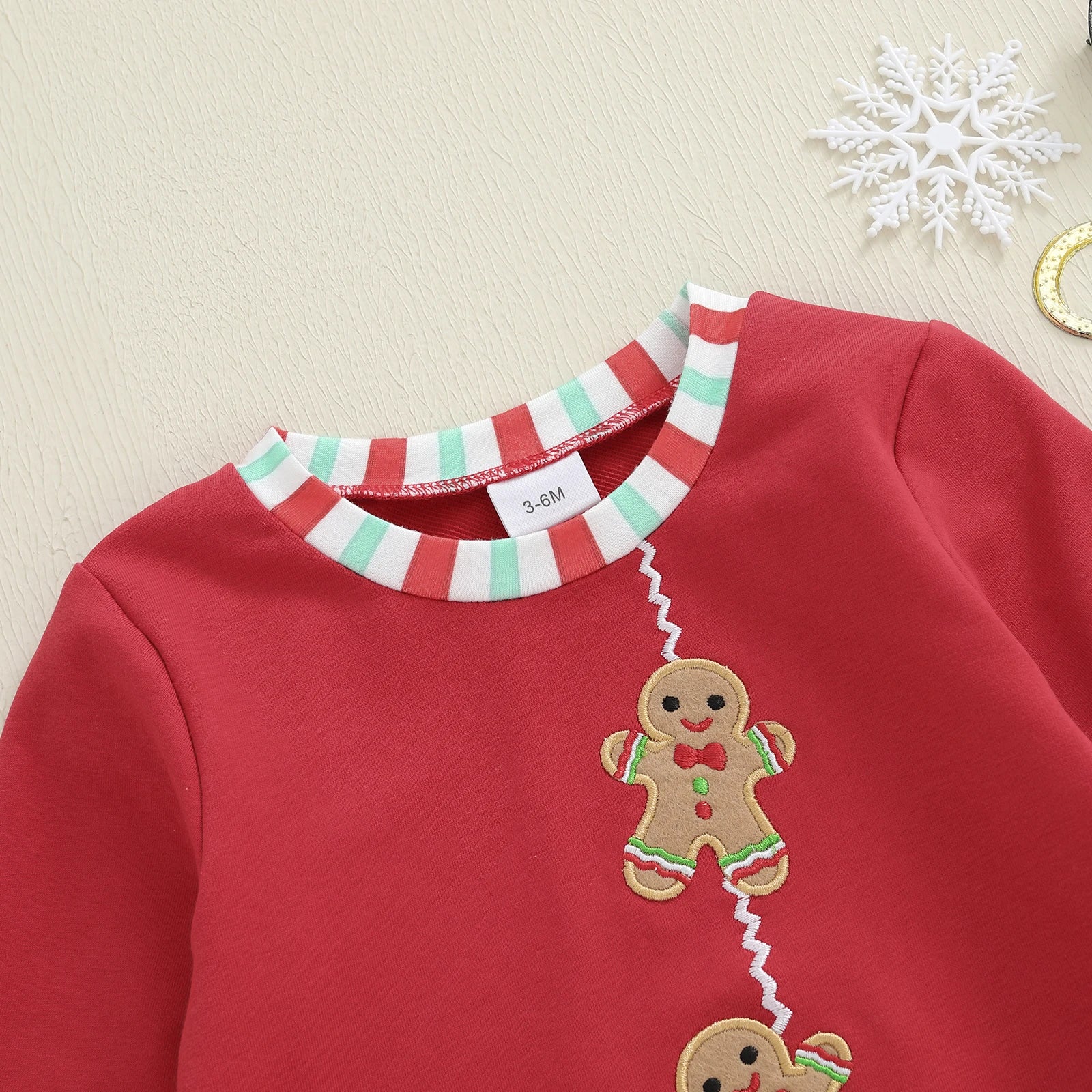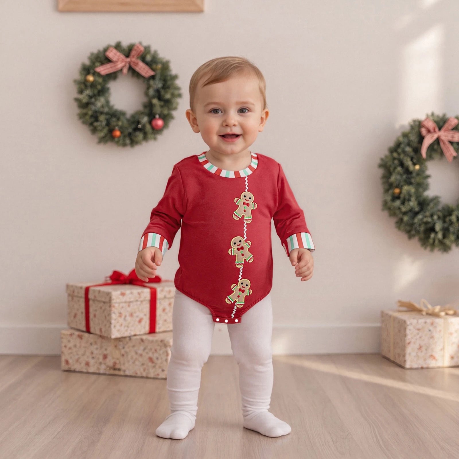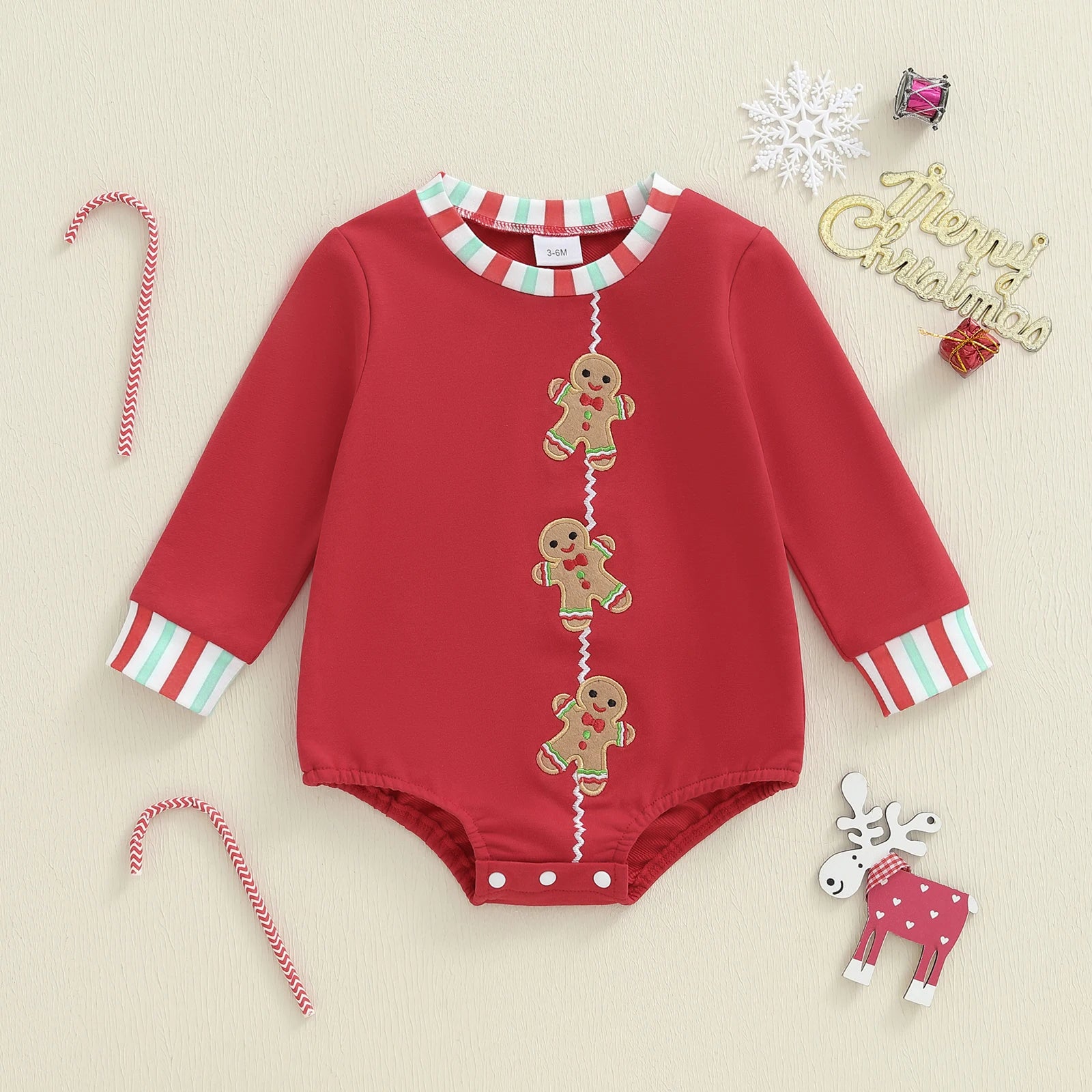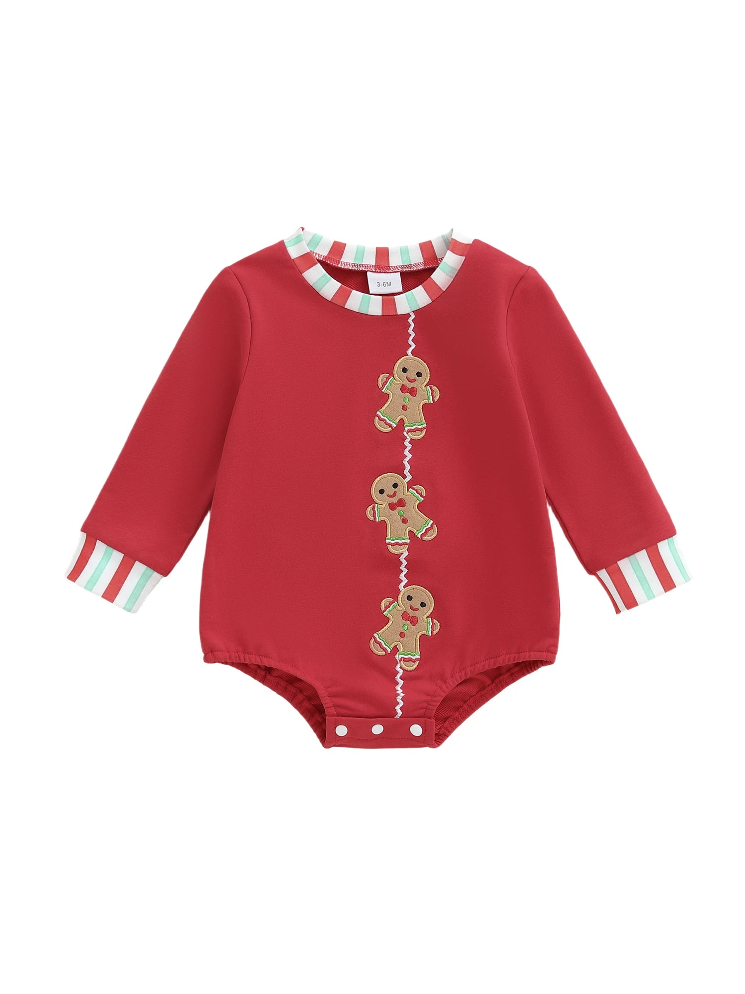 Baby Boys Girls Christmas Gingerbread Embroidery Romper Long Sleeve Crew Neck Bubble Infant Jumpsuit