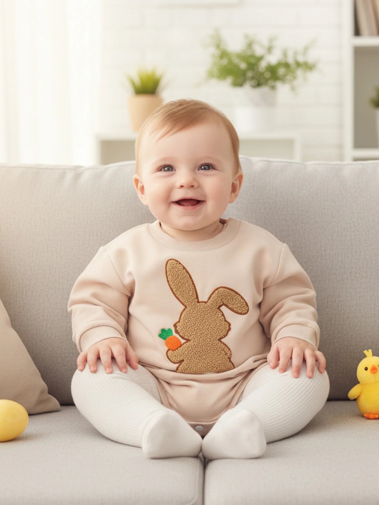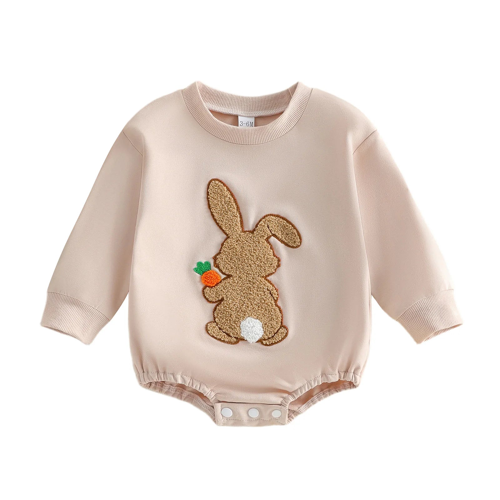 Baby Boys Girls Easter Romper Fashionable Cute Bunny Embroidery Long Sleeve Jumpsuit