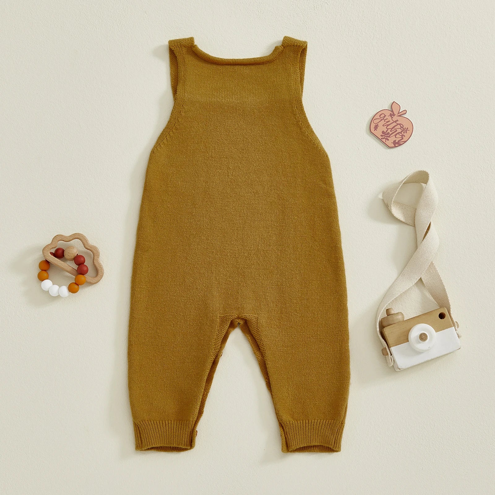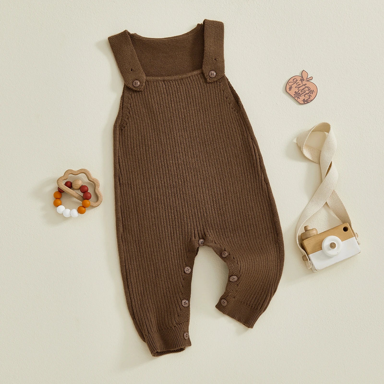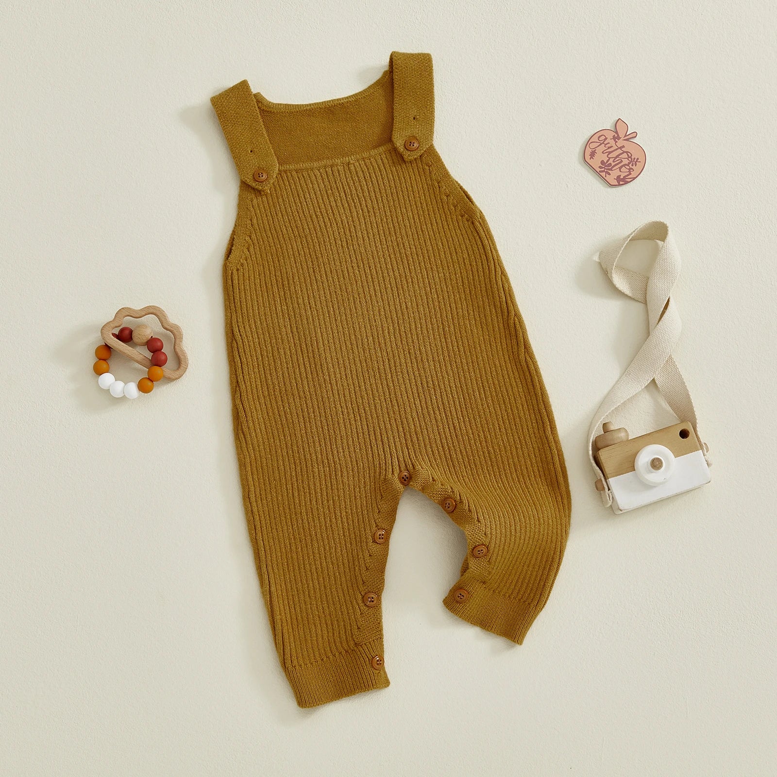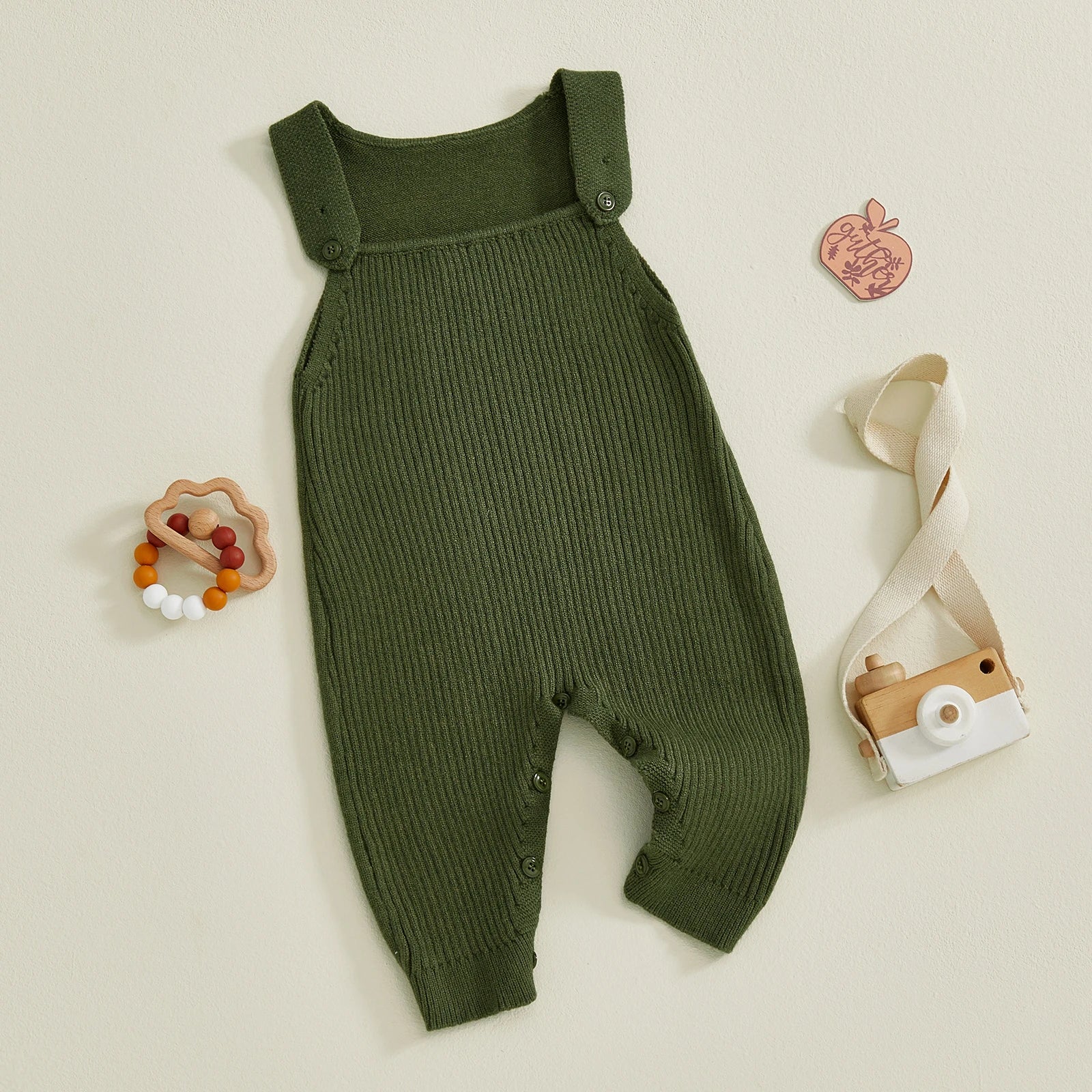 Baby Boys Girls Knit Jumpsuit Sleeveless Square Neck Solid Color Rompers Overalls