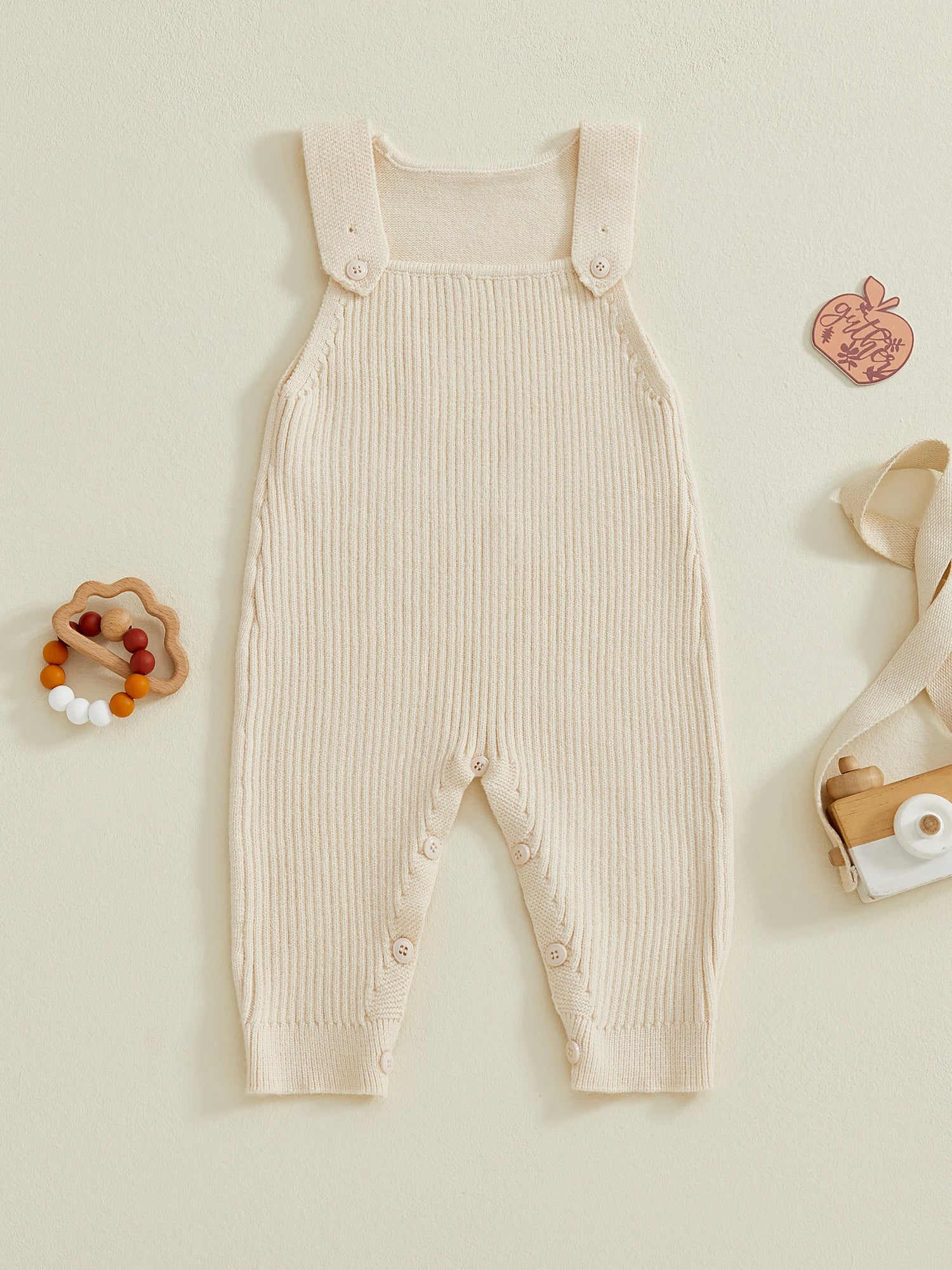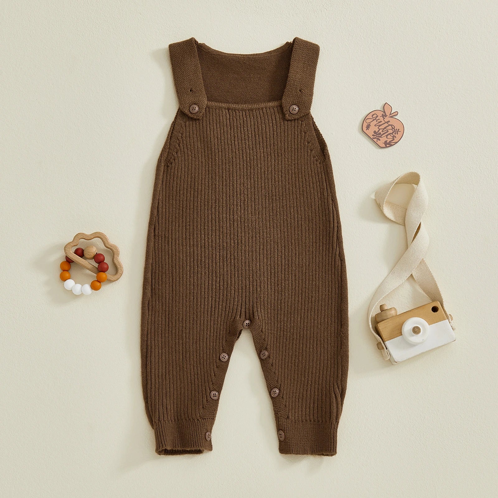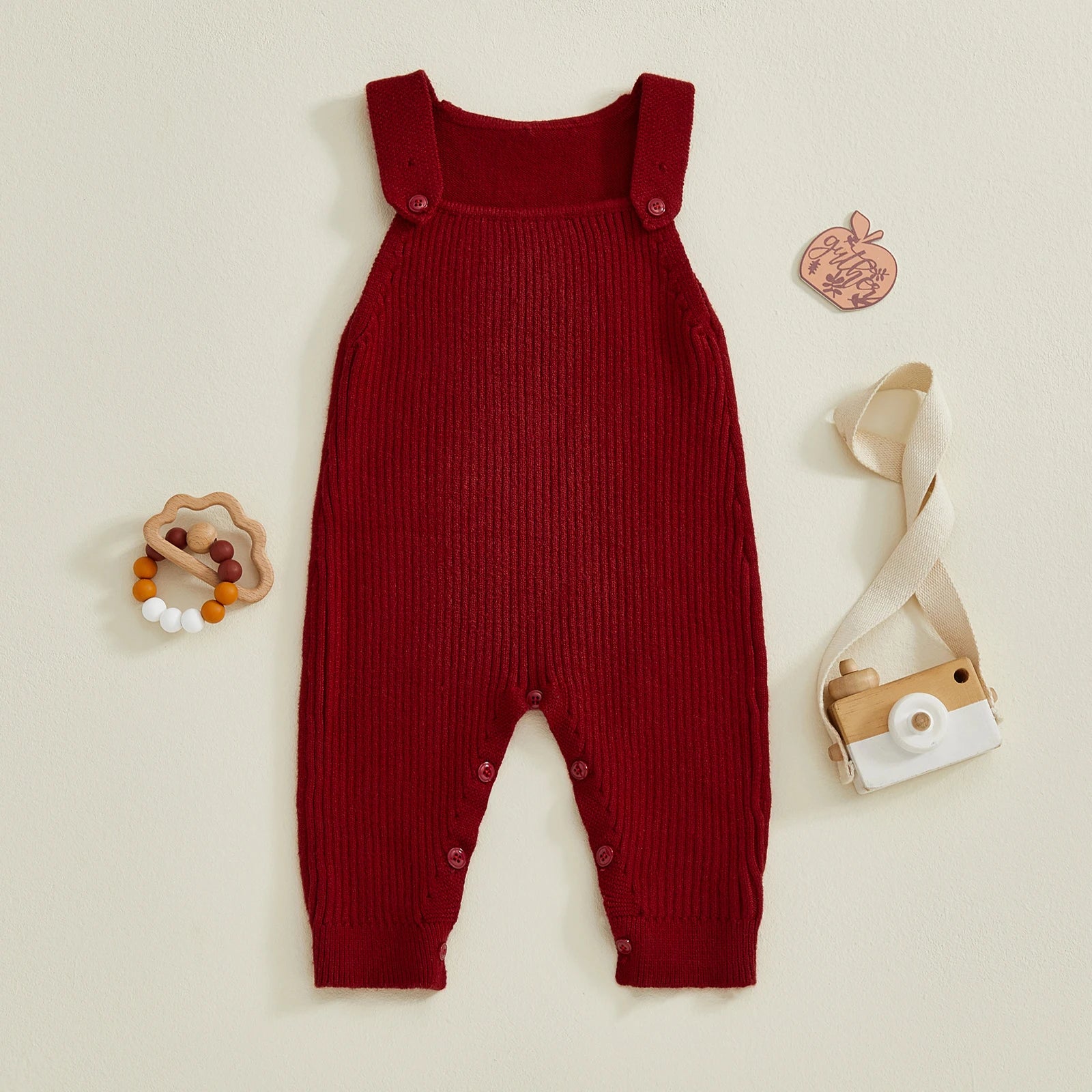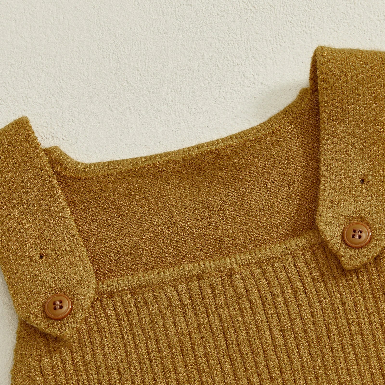 Baby Boys Girls Knit Jumpsuit Sleeveless Square Neck Solid Color Rompers Overalls