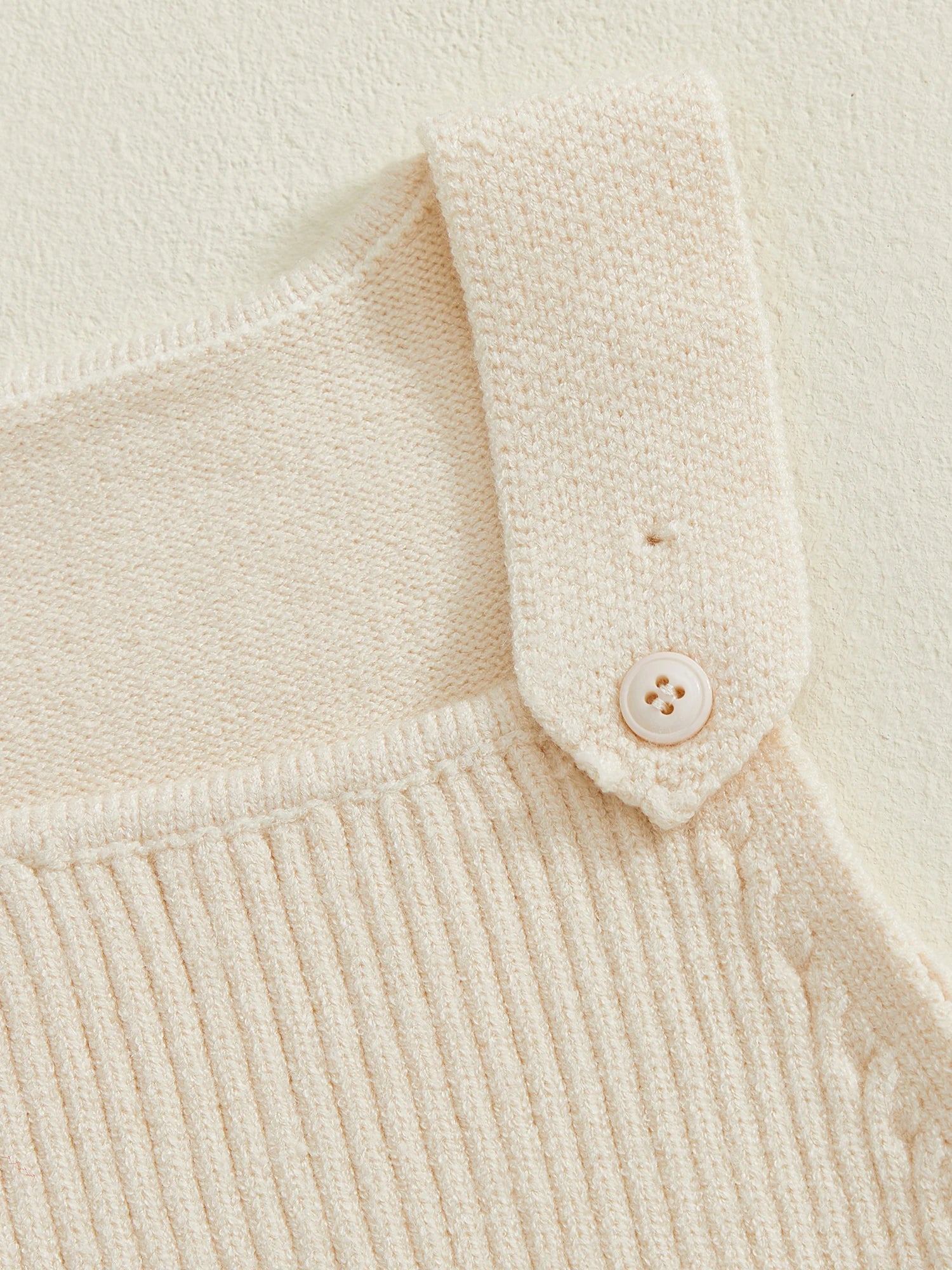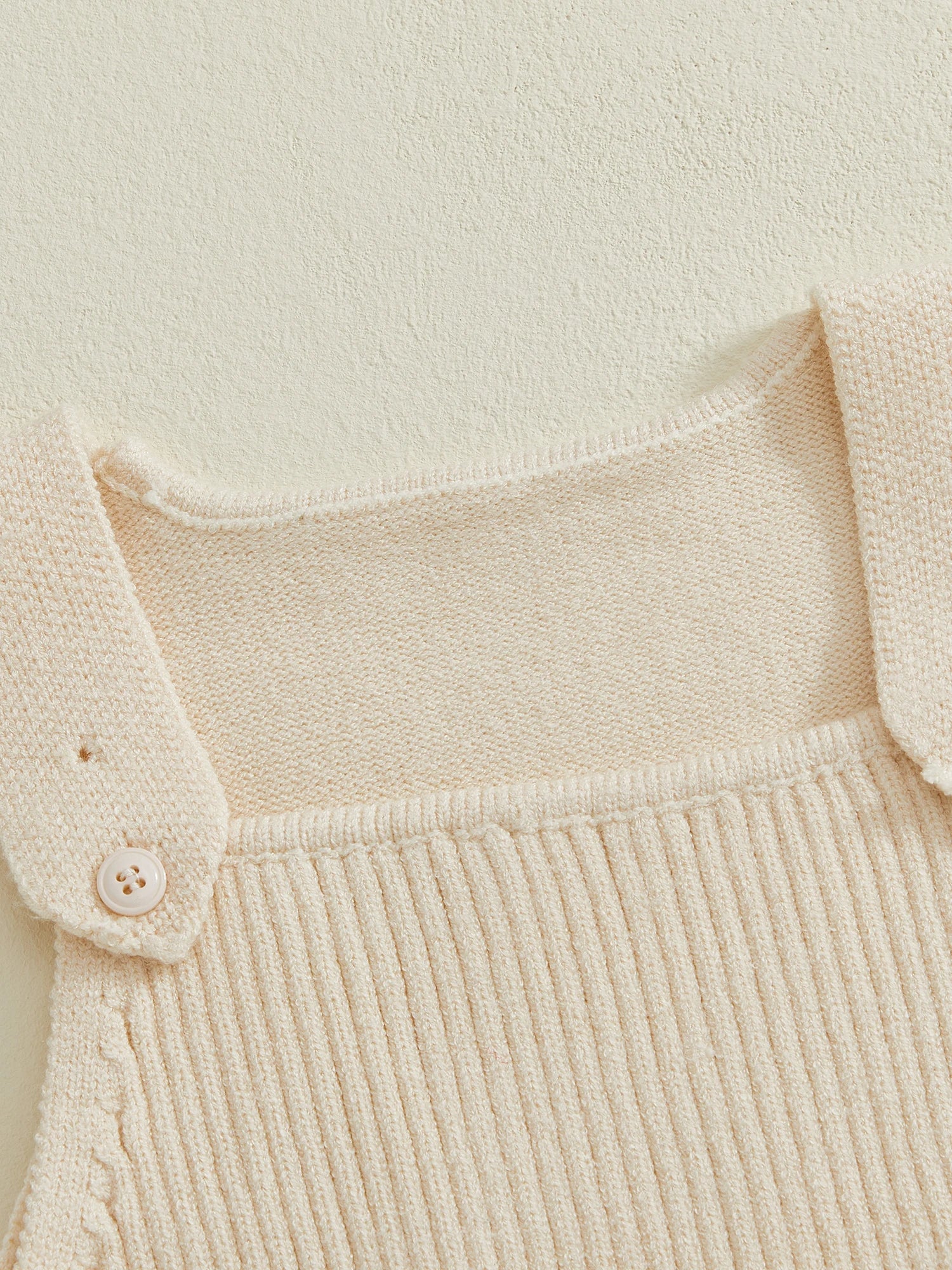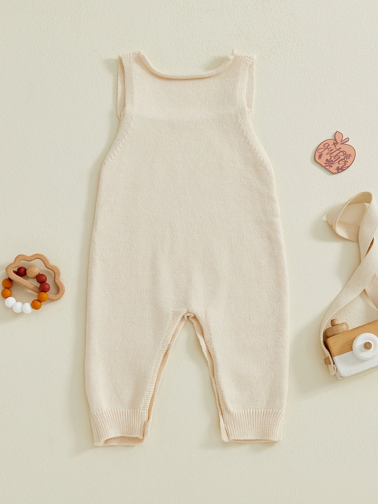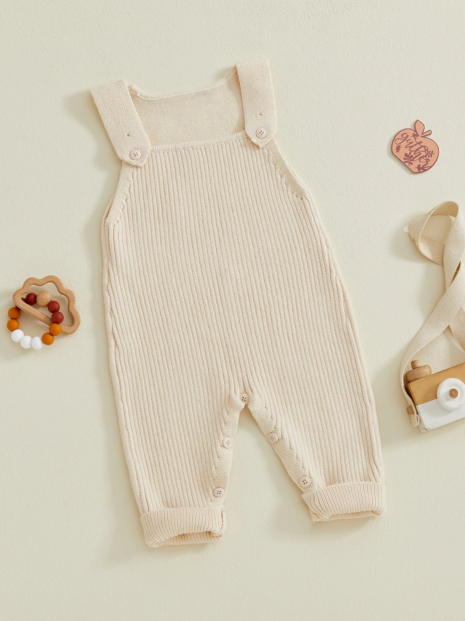 Baby Boys Girls Knit Jumpsuit Sleeveless Square Neck Solid Color Rompers Overalls