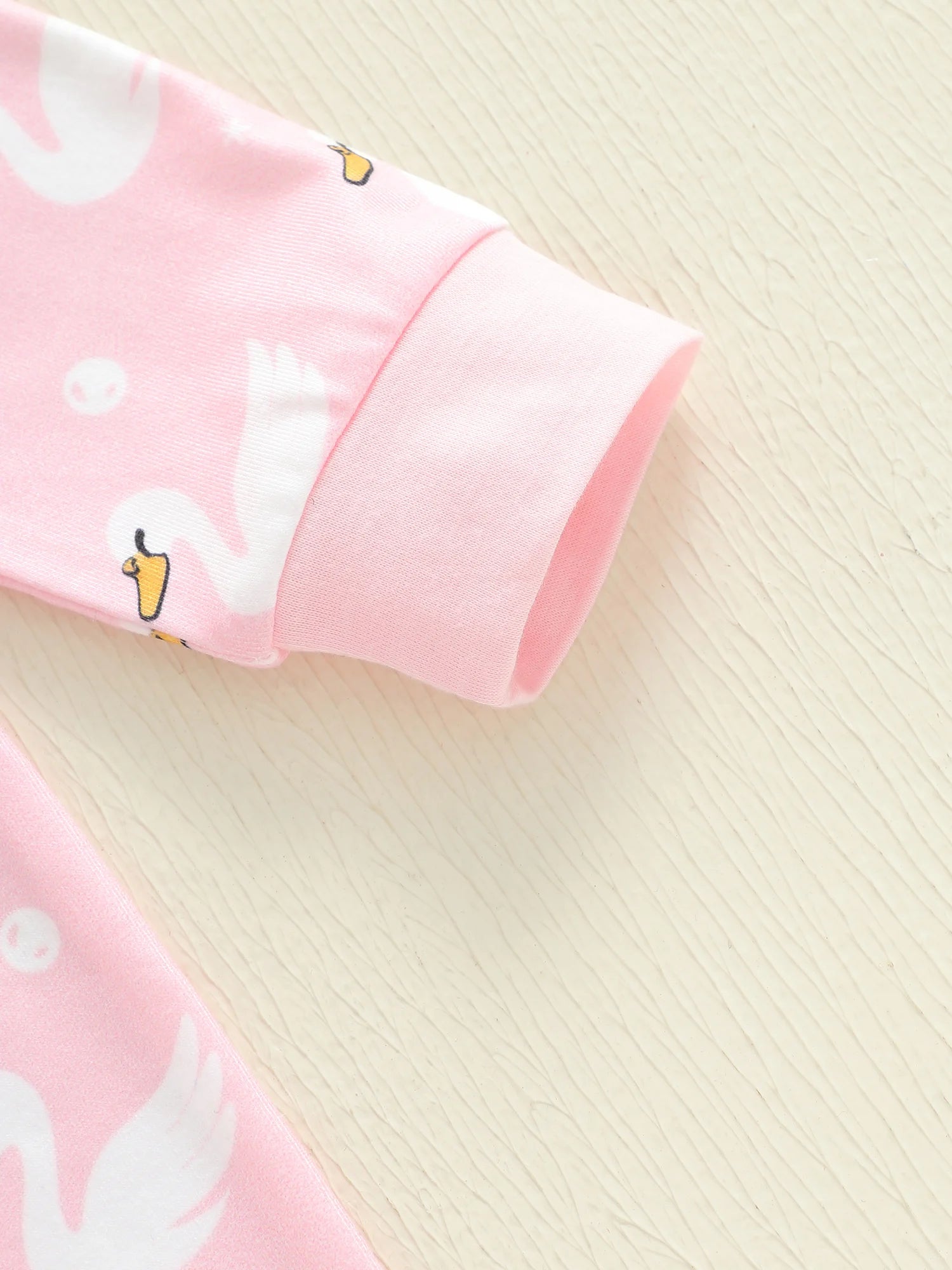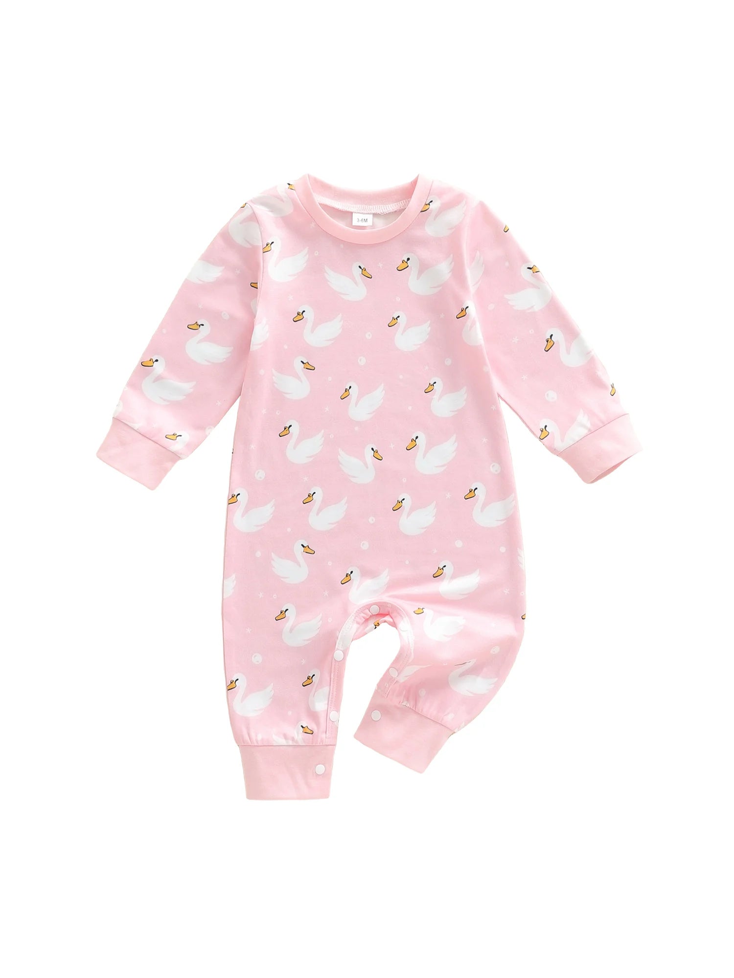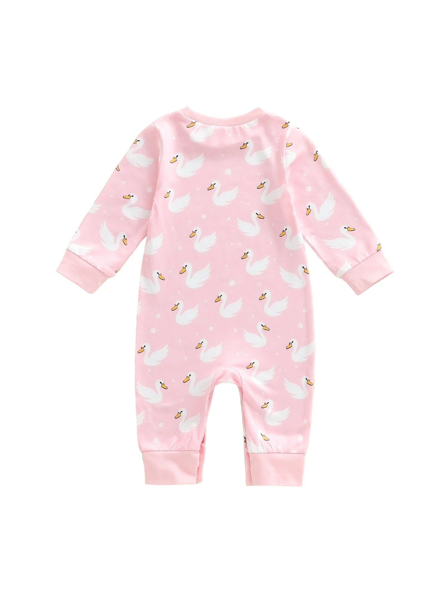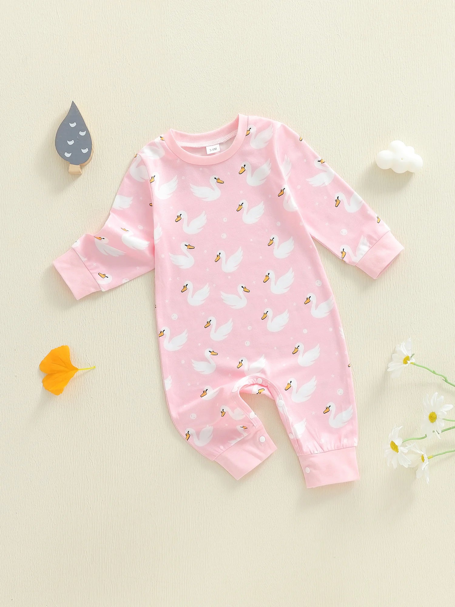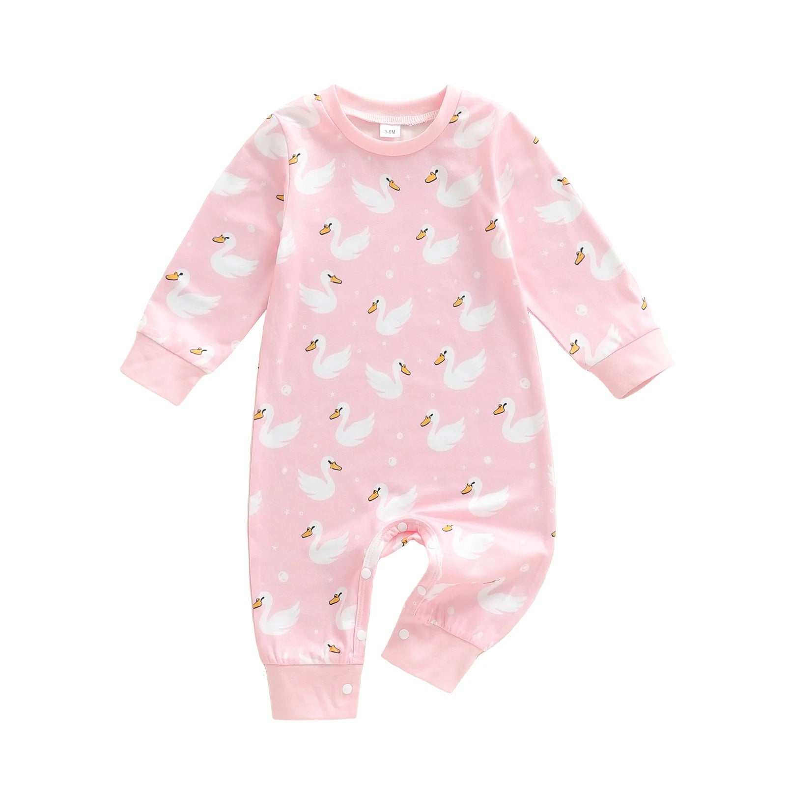 Baby Boys Girls Romper Comfortable Geese Print Crew Neck Long Sleeve Full Length Jumpsuit