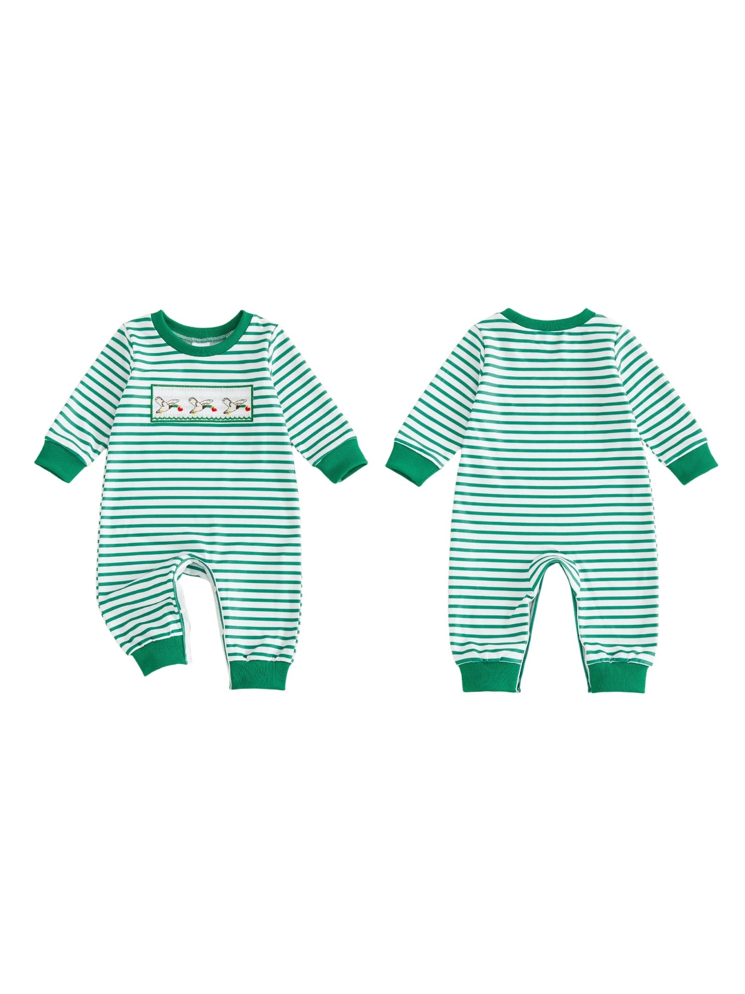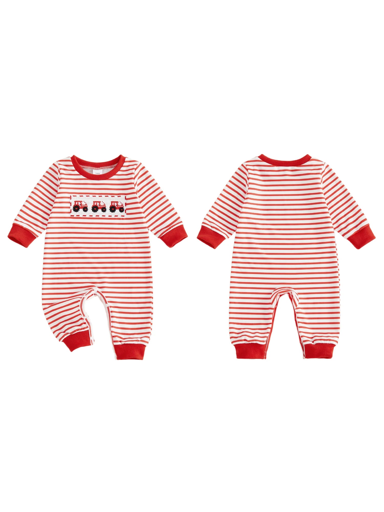 Baby Boys Striped Jumpsuit Long Sleeve Crewneck Heart Tarctor Embroidery Loose Fit Romper