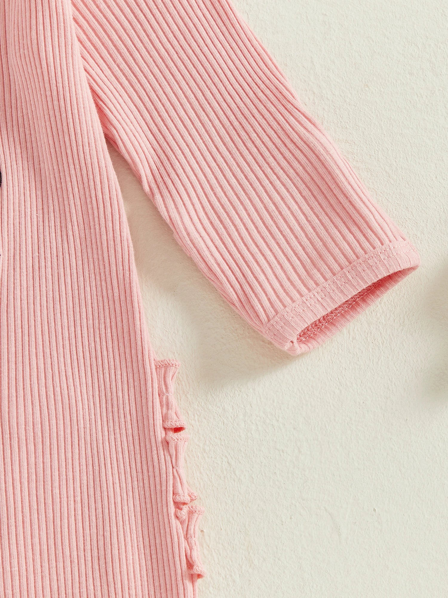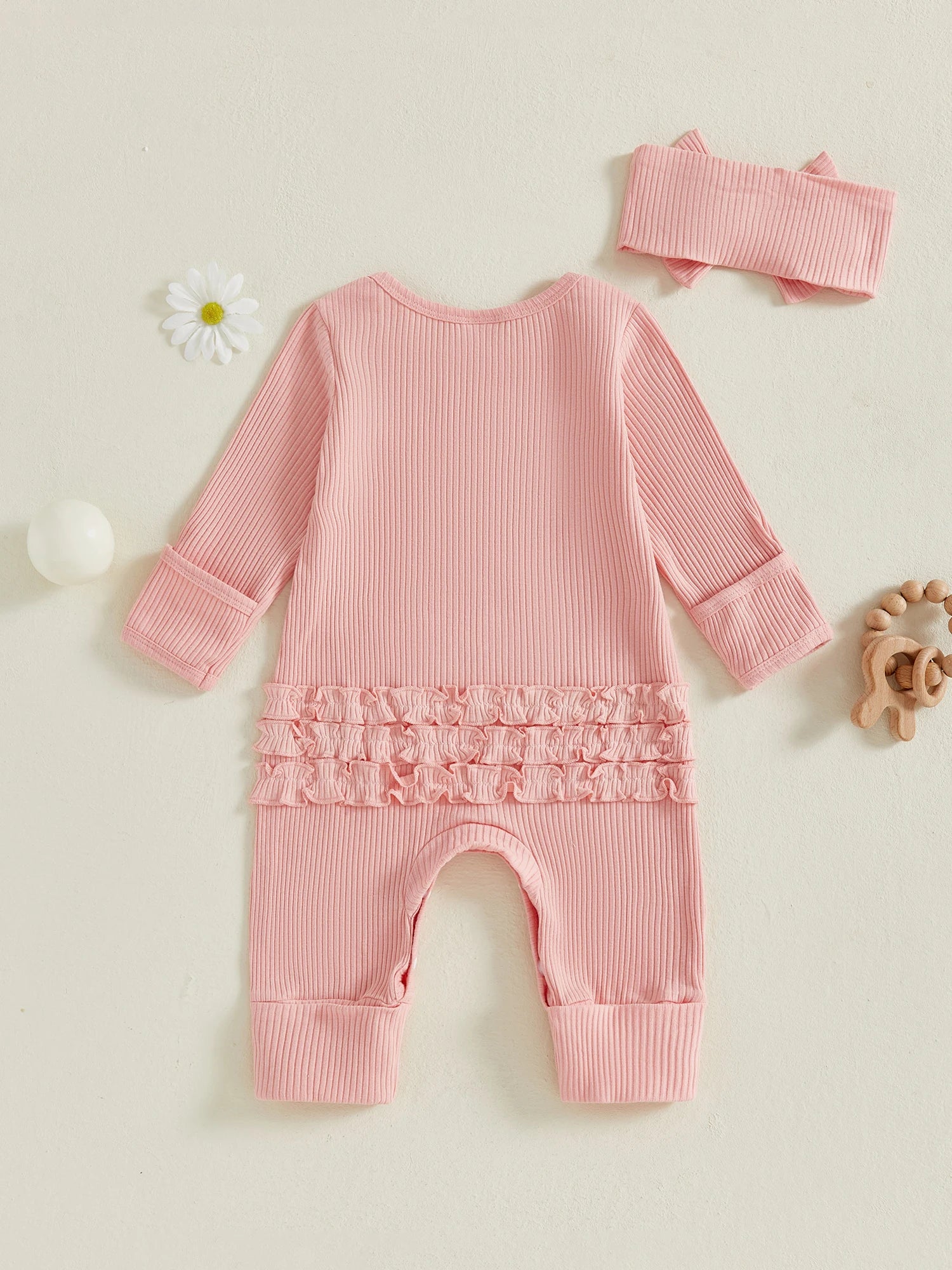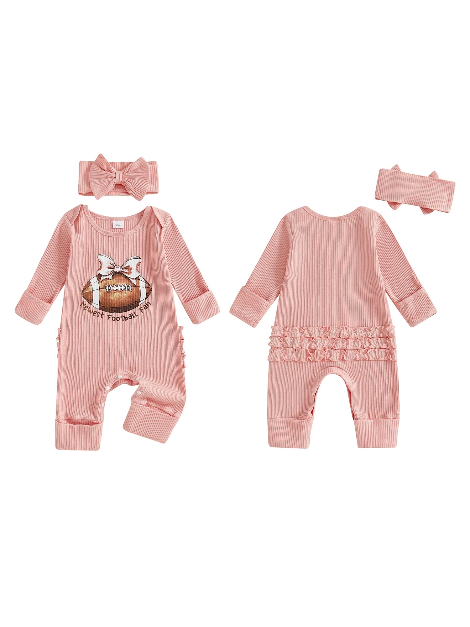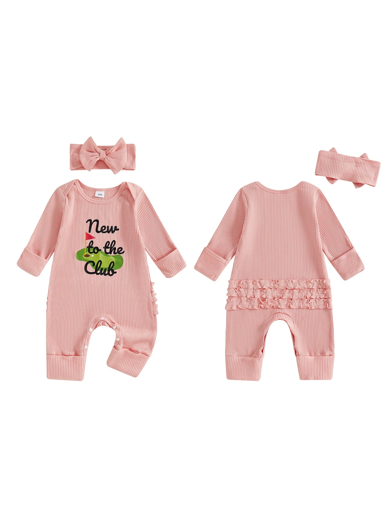 Baby Girl 2Pcs Fall Outfit Golf Goose Bee Print New to the Hive / Club Long Sleeve Ribbed Romper with Bow Headband 2Piece Set