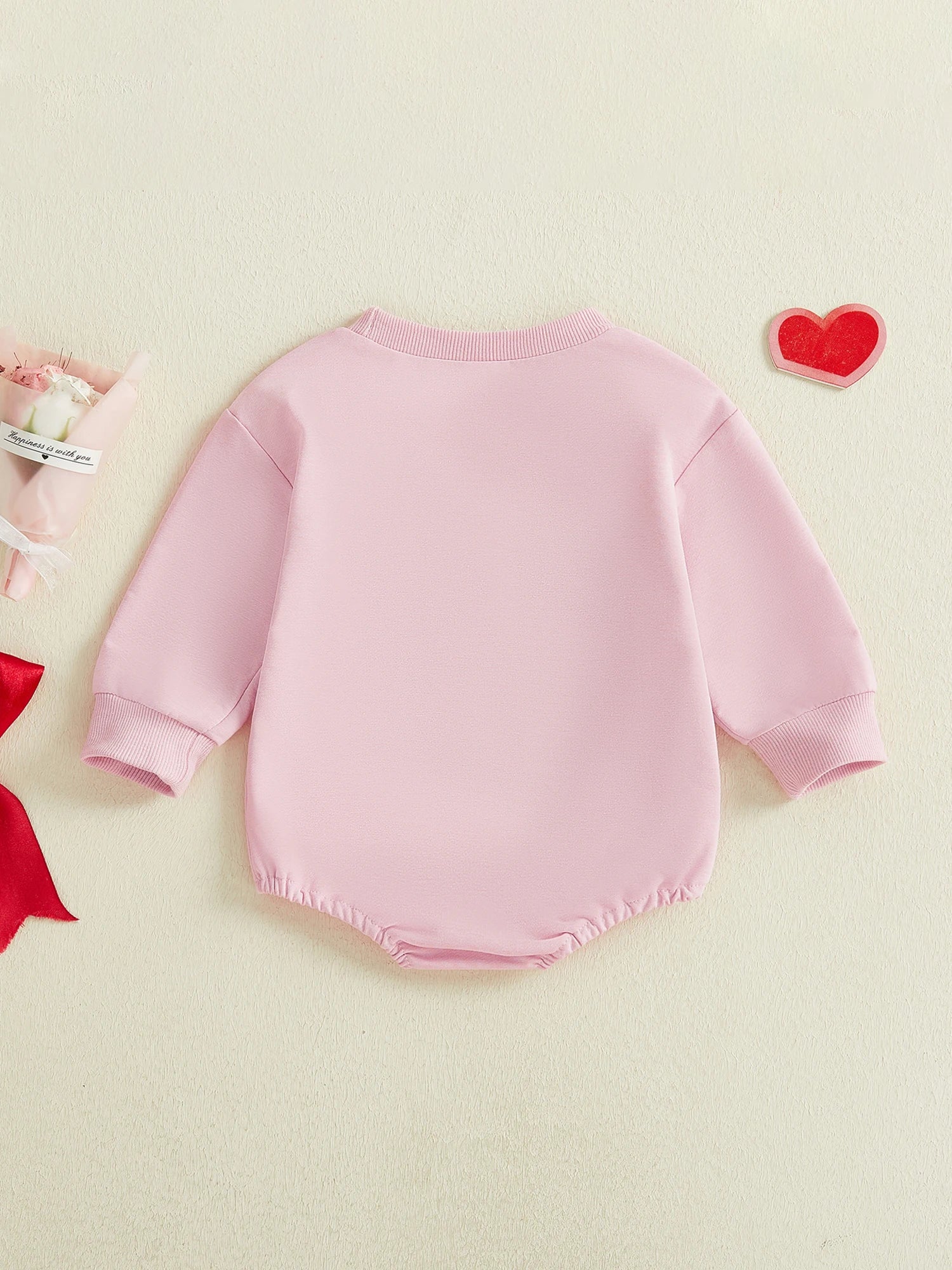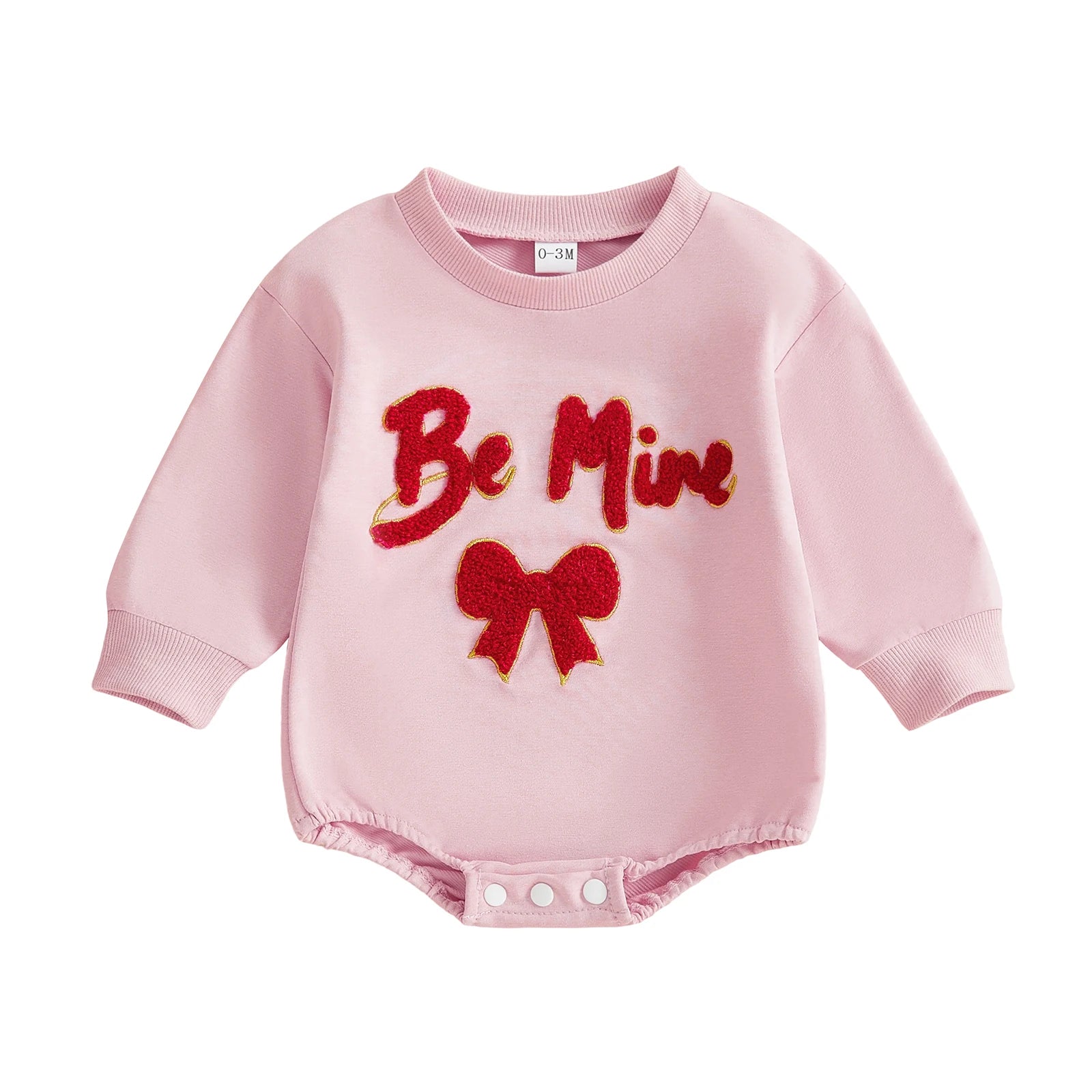 Baby Girl Be Mine Valentine's Day Romper Long Sleeve Round Neck Letter Embroidery Bodysuit