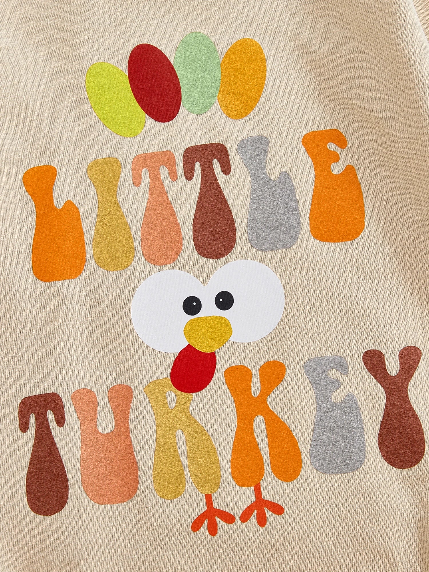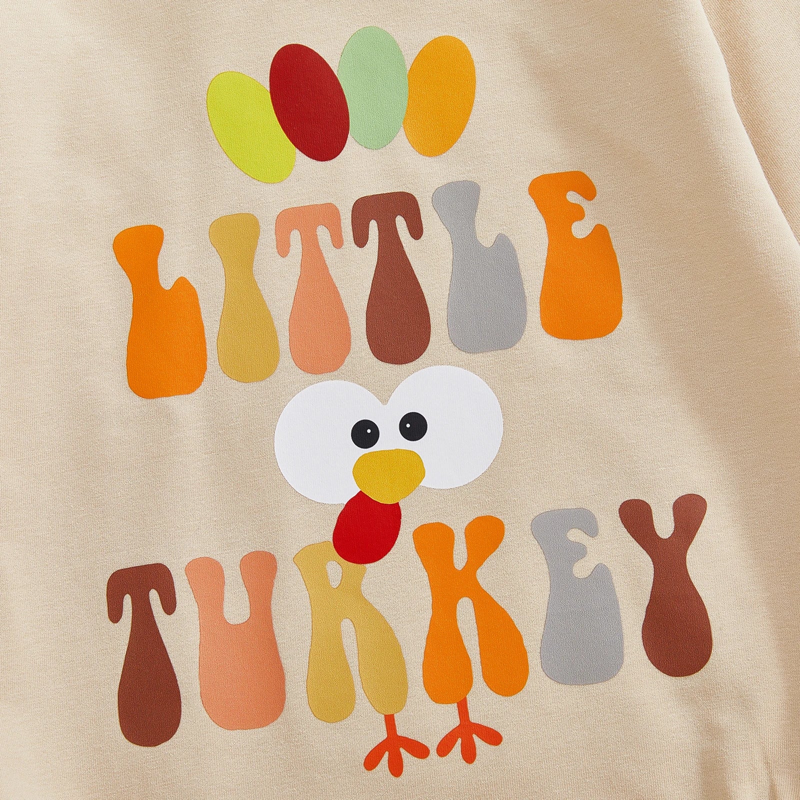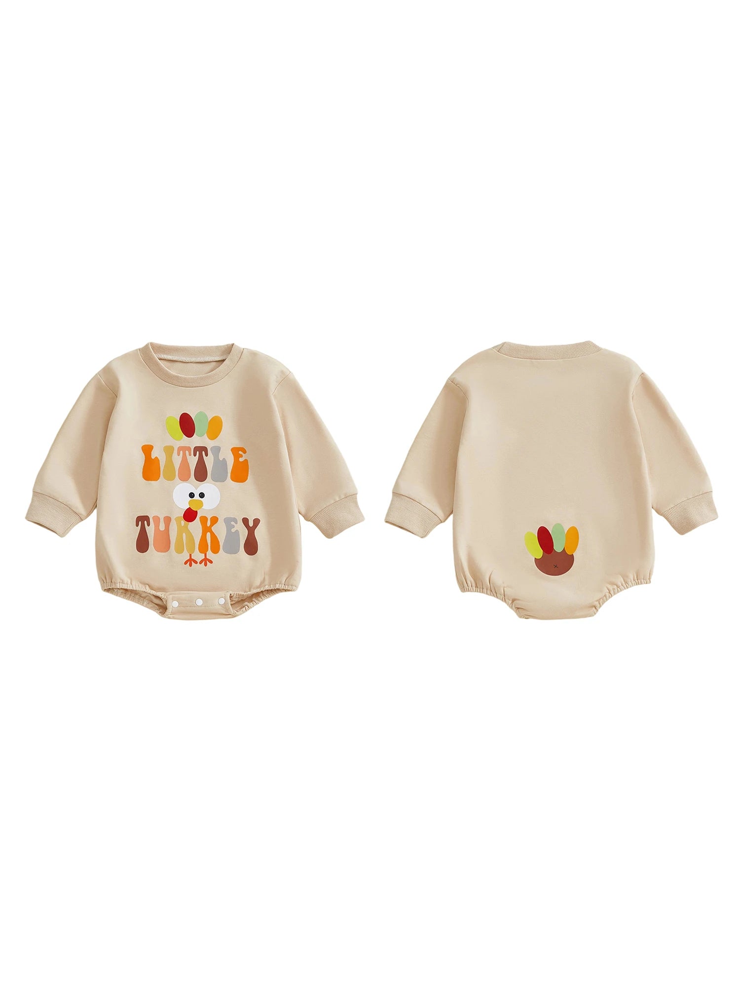 Baby Girl Boy Little Turkey Thanksgiving Day Romper Long Sleeve O Neck Turkey Letter Print Jumpsuit