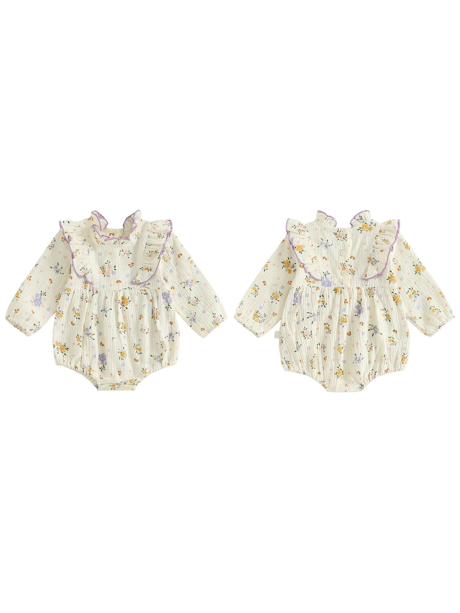 Baby Girl Fall Bubble Romper Floral Print Long Sleeve Frill Mock Neck Ruffled Jumpsuit