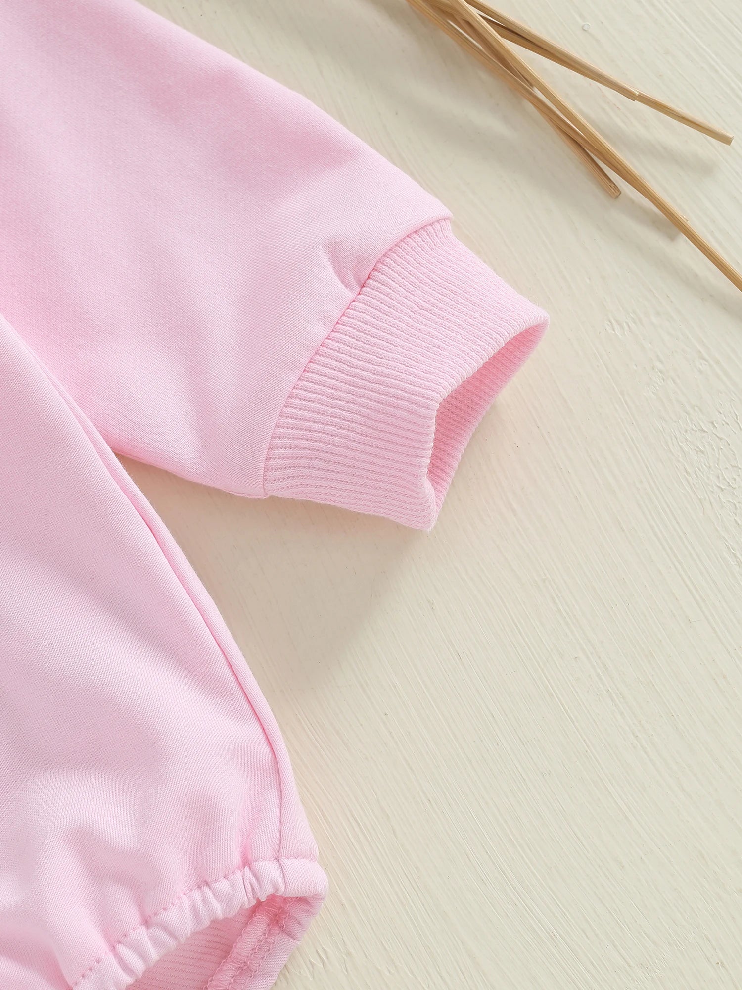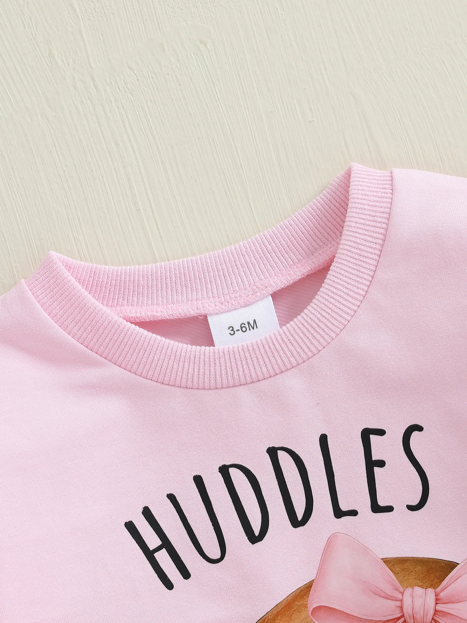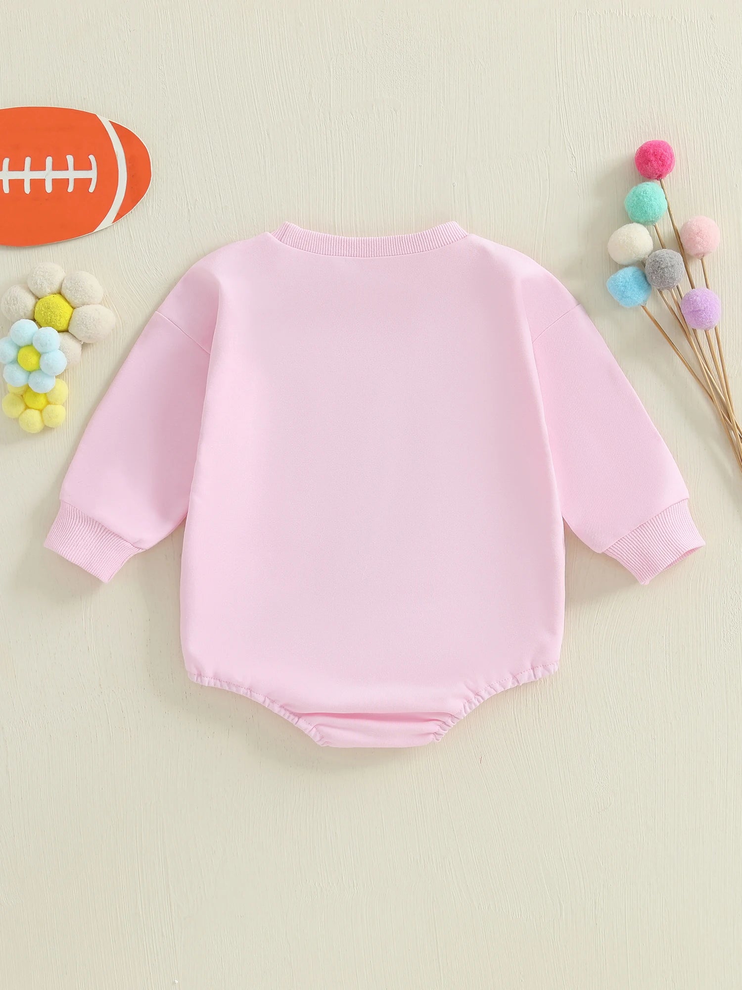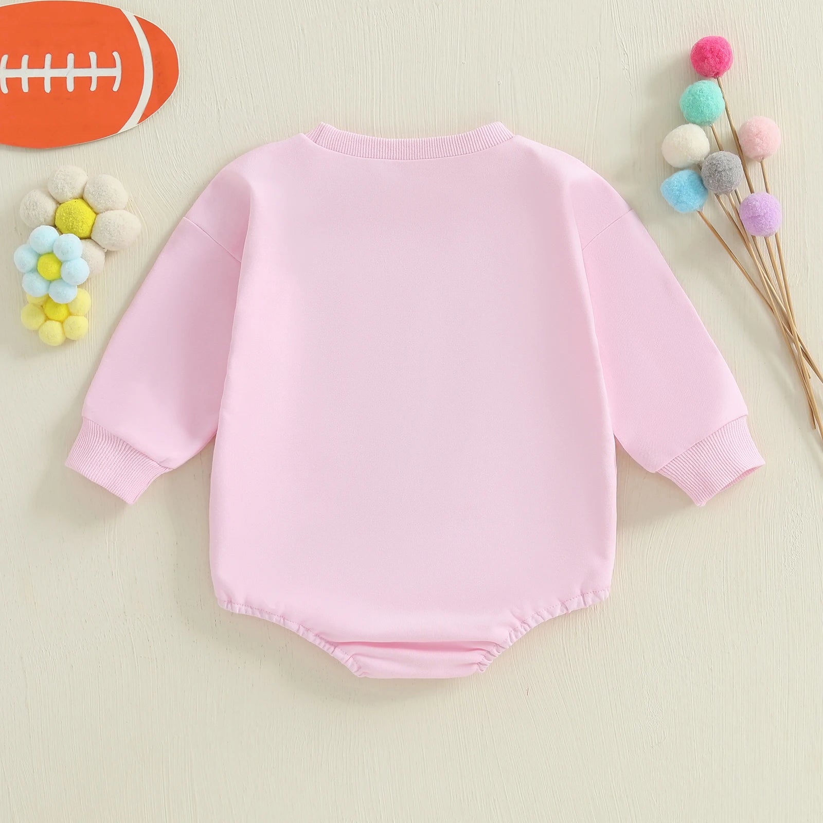 Baby Girl Huddles and Cuddles Bubble Romper Long Sleeve Crew Neck Bow Football Print Bodysuit Clothes