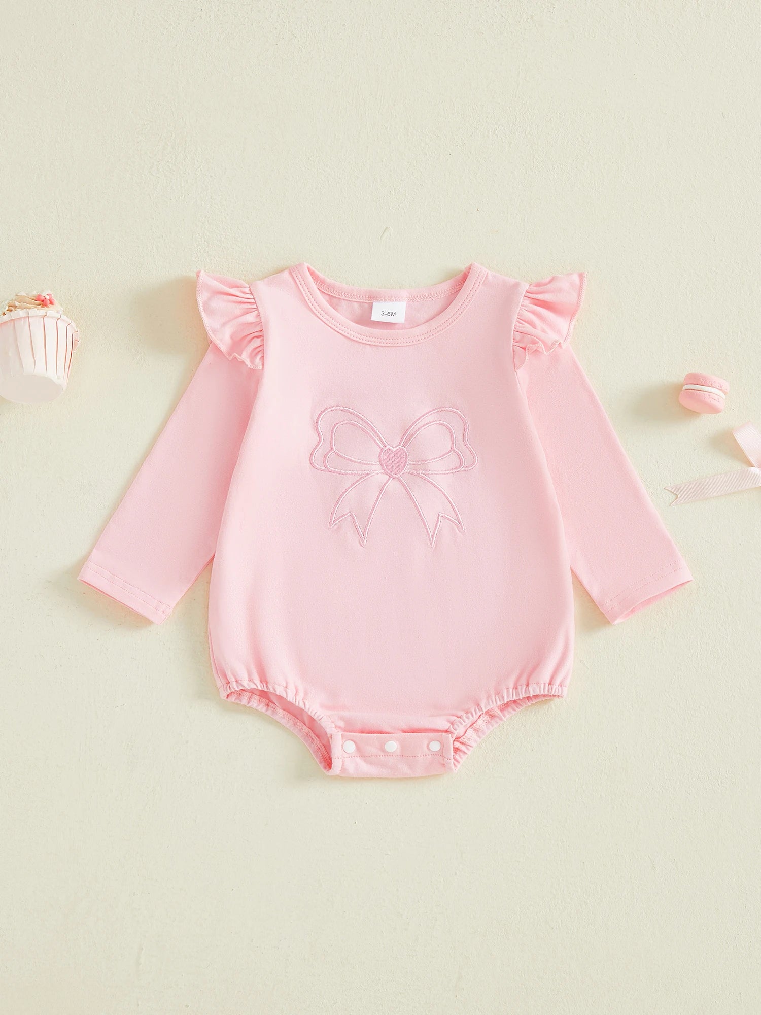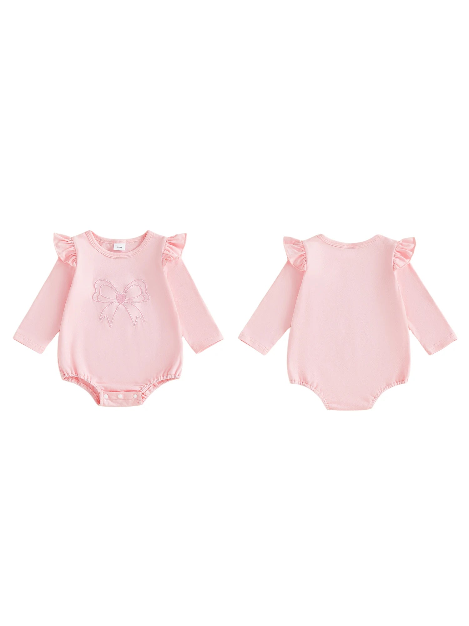 Baby Girl Romper Long Sleeve Crew Neck Bow Embroidery Ruffle Bodysuit Spring
