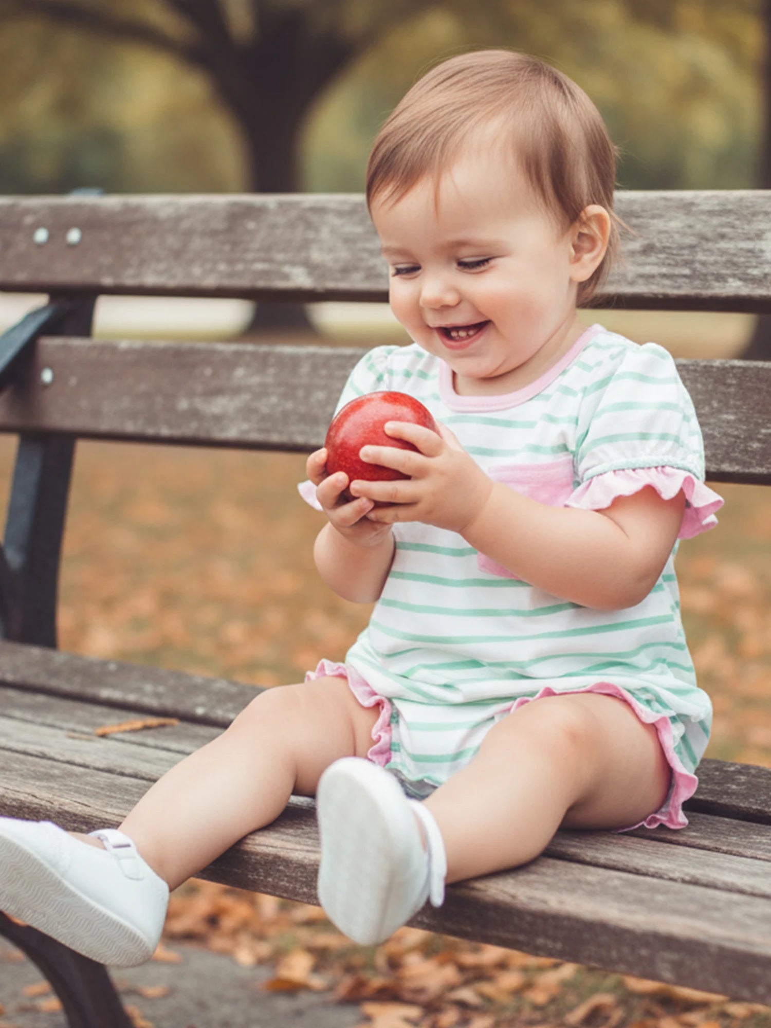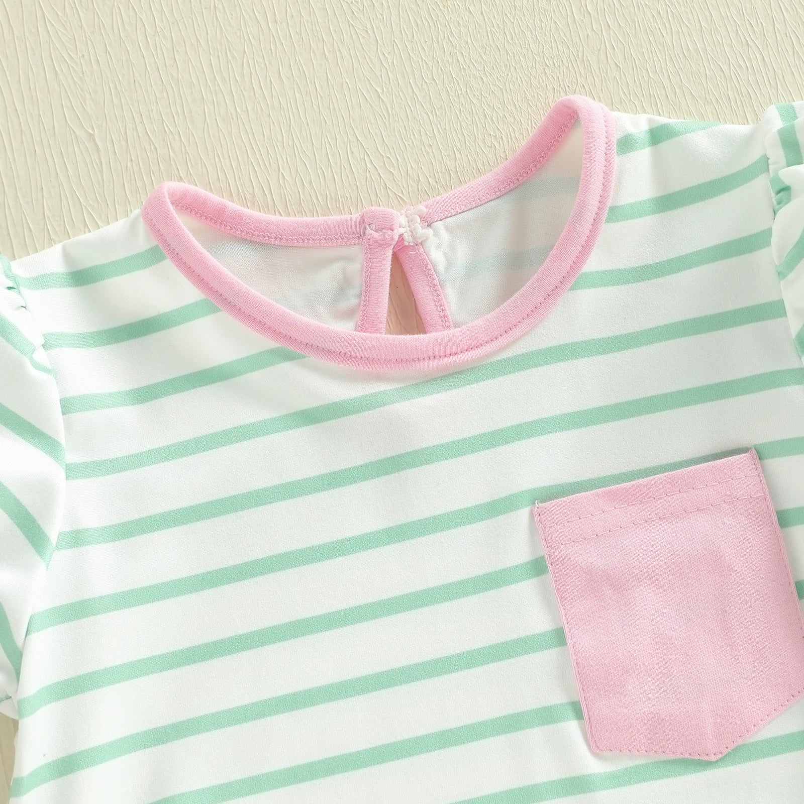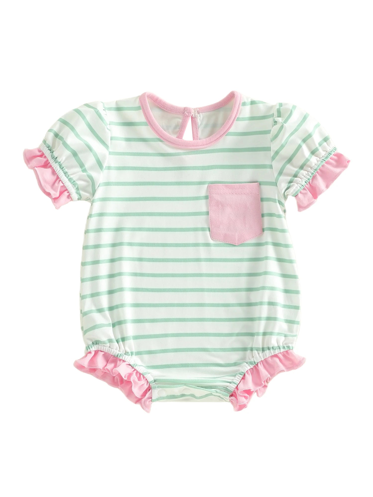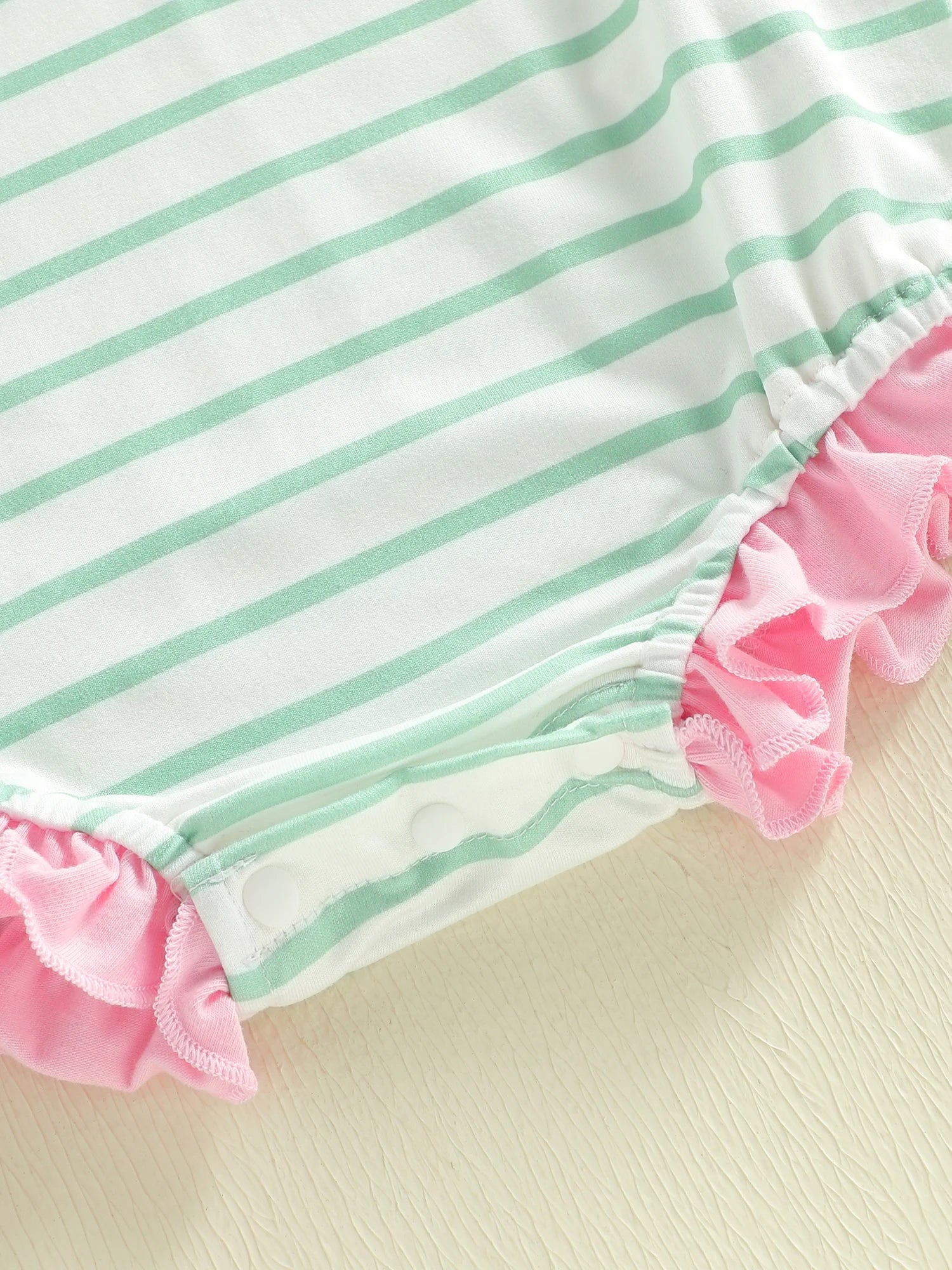 Baby Girl Striped Romper Ruffle Trim Short Sleeve Crewneck Jumpsuit Casual Summer Spring Clothes