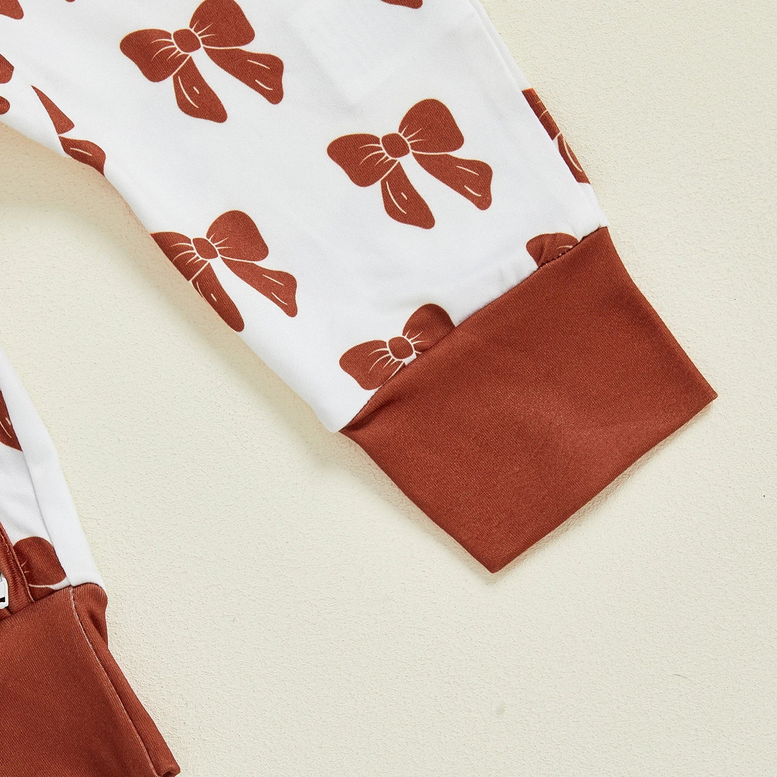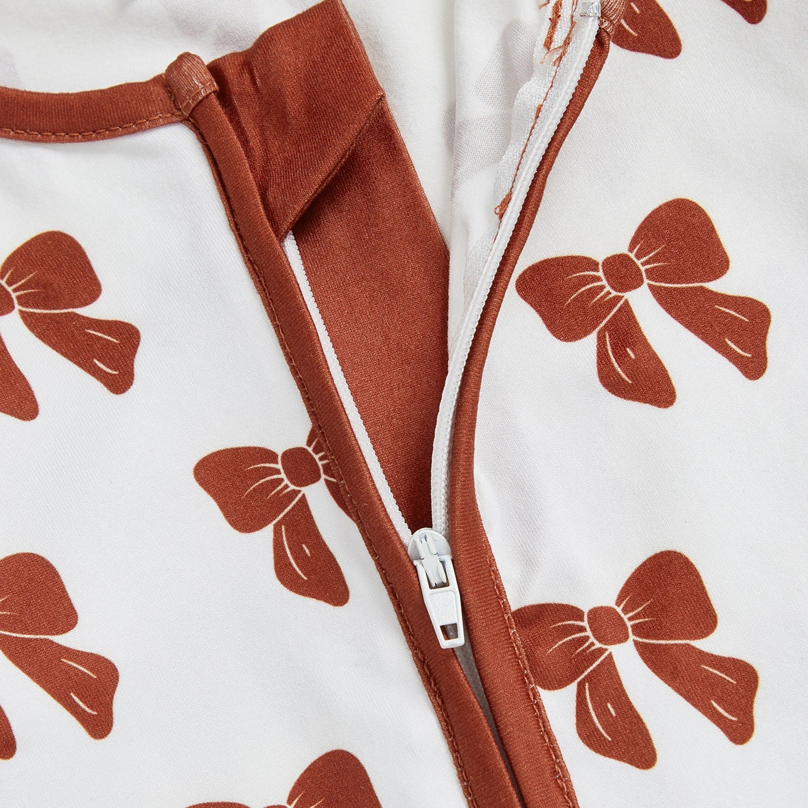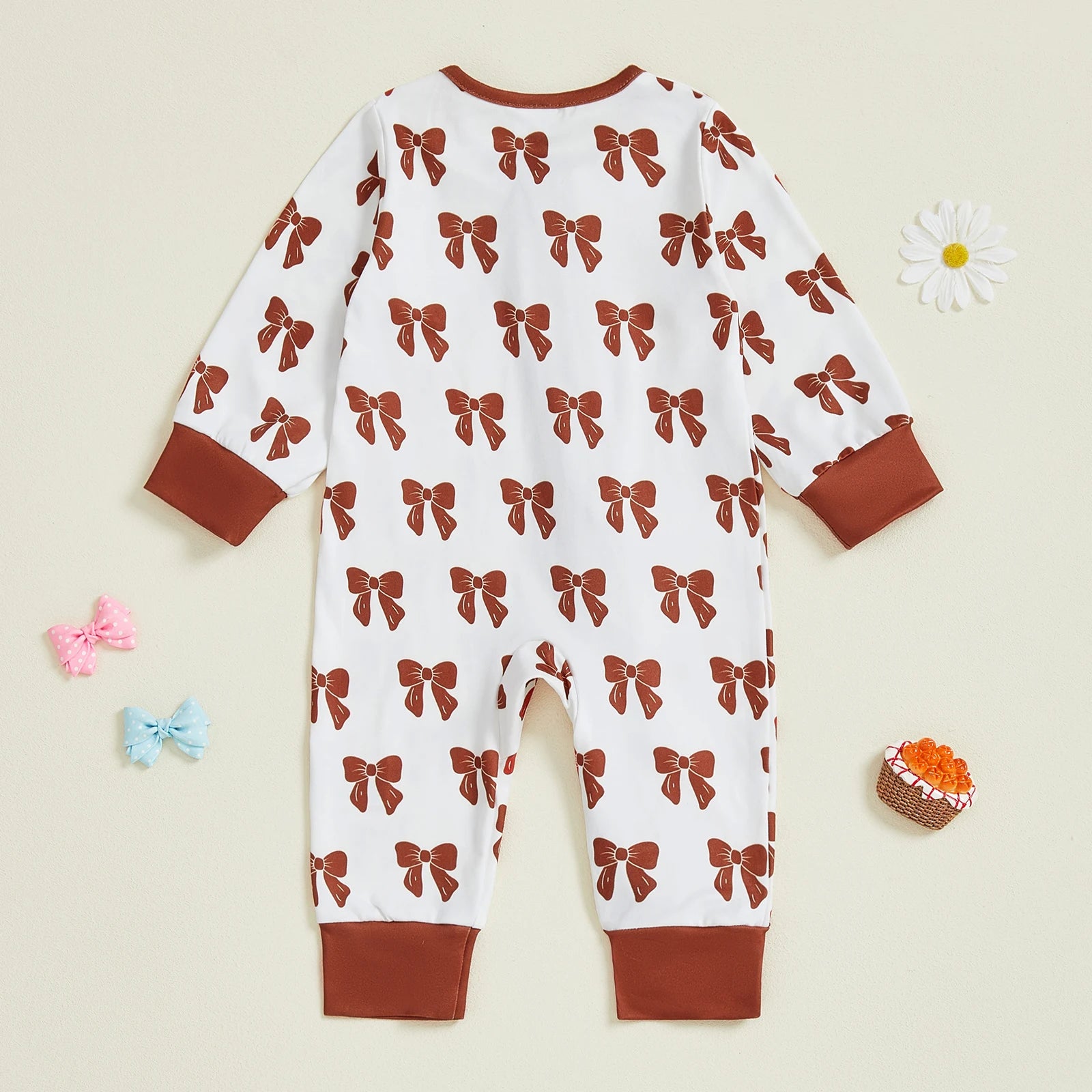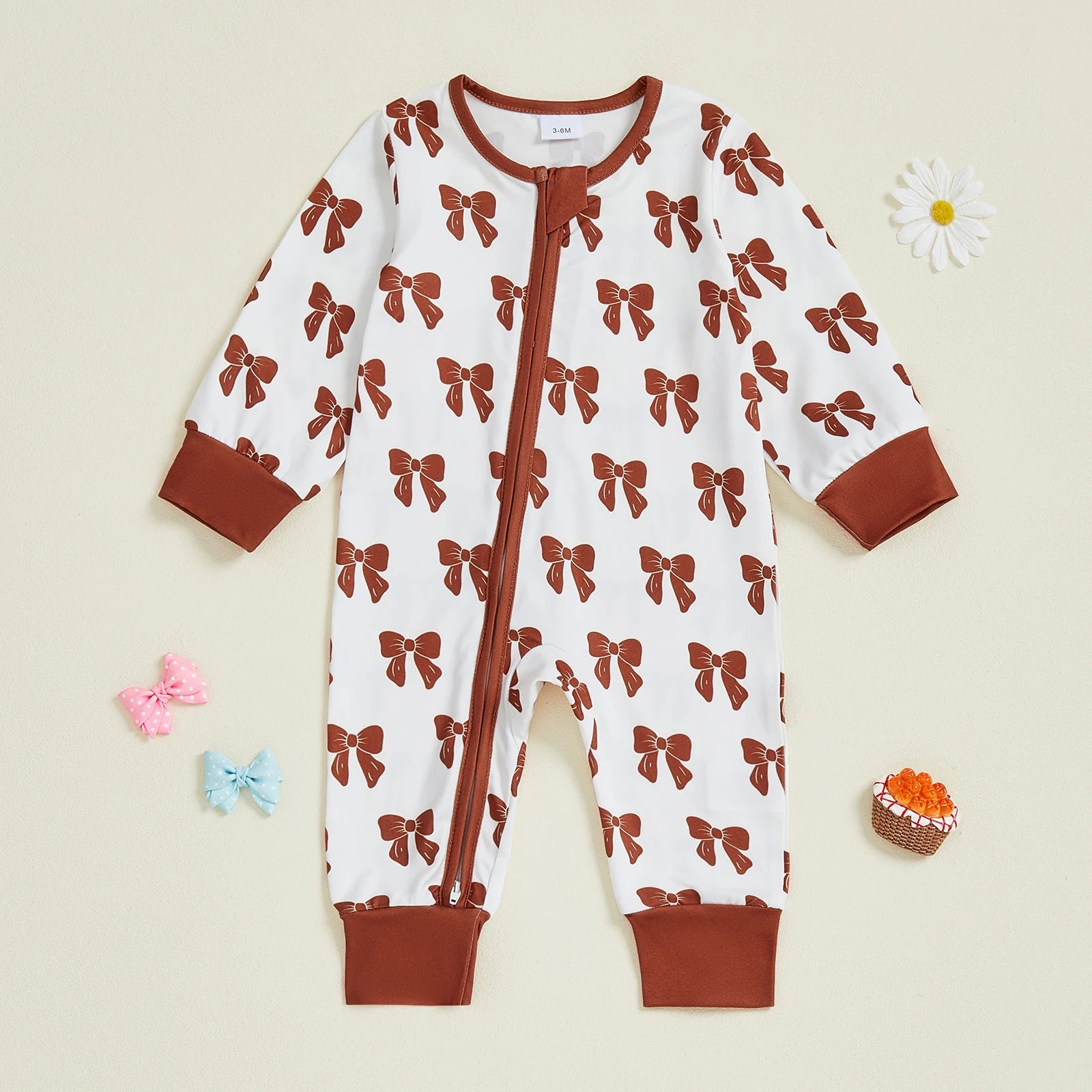 Baby Girl Zipper Romper Long Sleeve Round Neck Bow Print Jumpsuit
