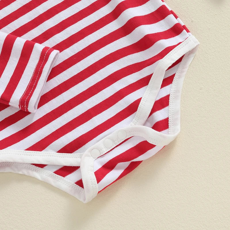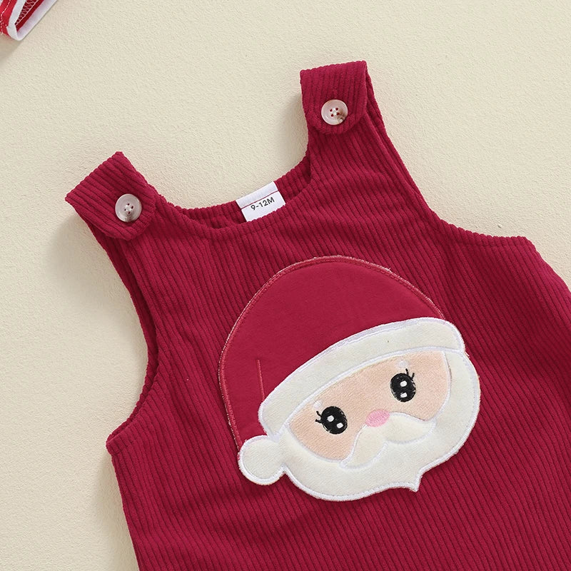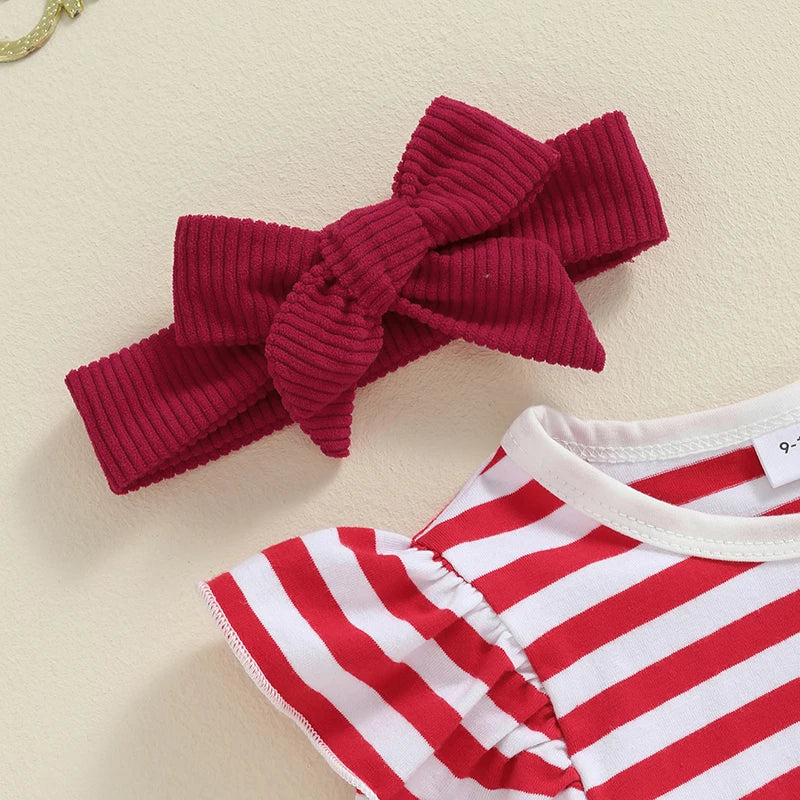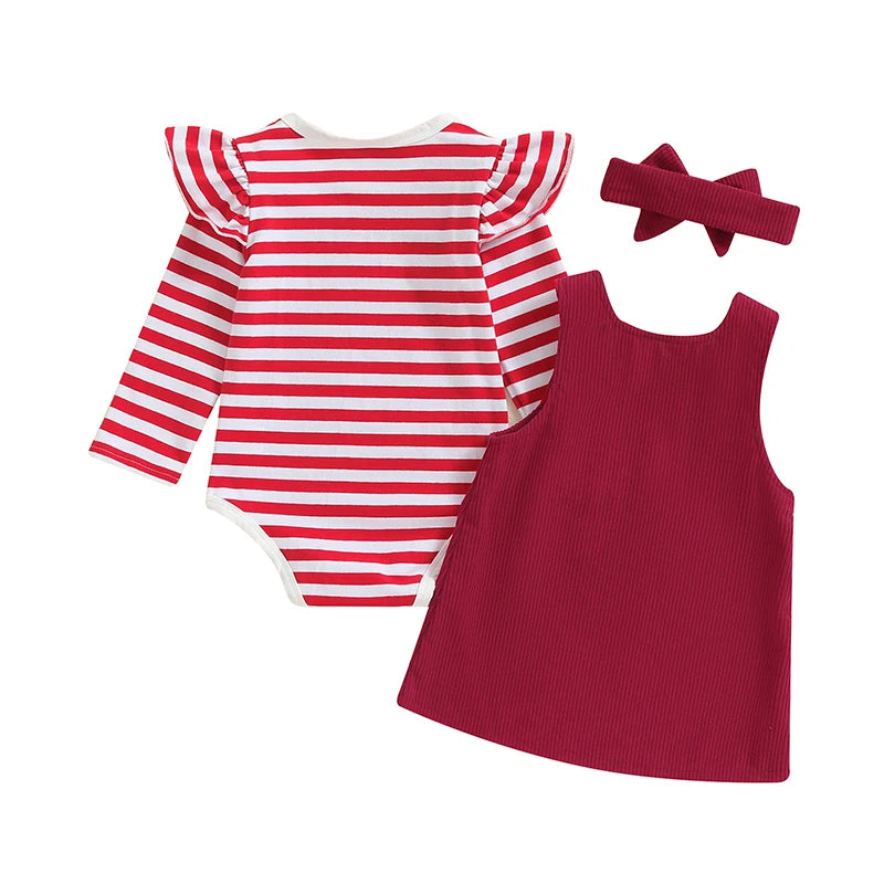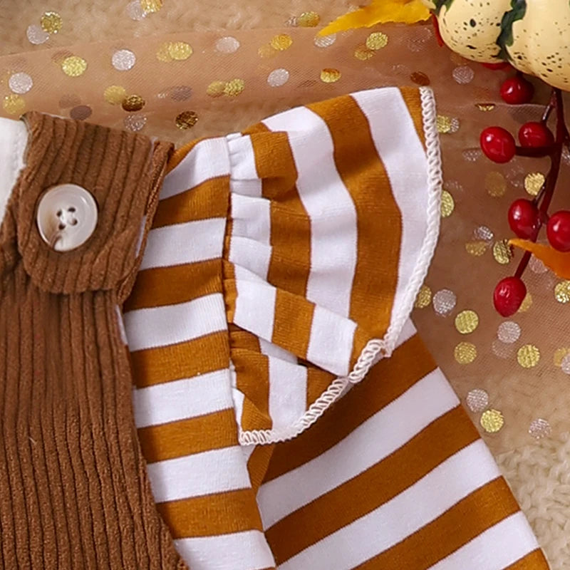 Baby Girls 2Pcs Thanksgiving Christmas Outfits Stripe Long Sleeve Romper Turkey / Santa Embroidery Overalls Dress Headband Set