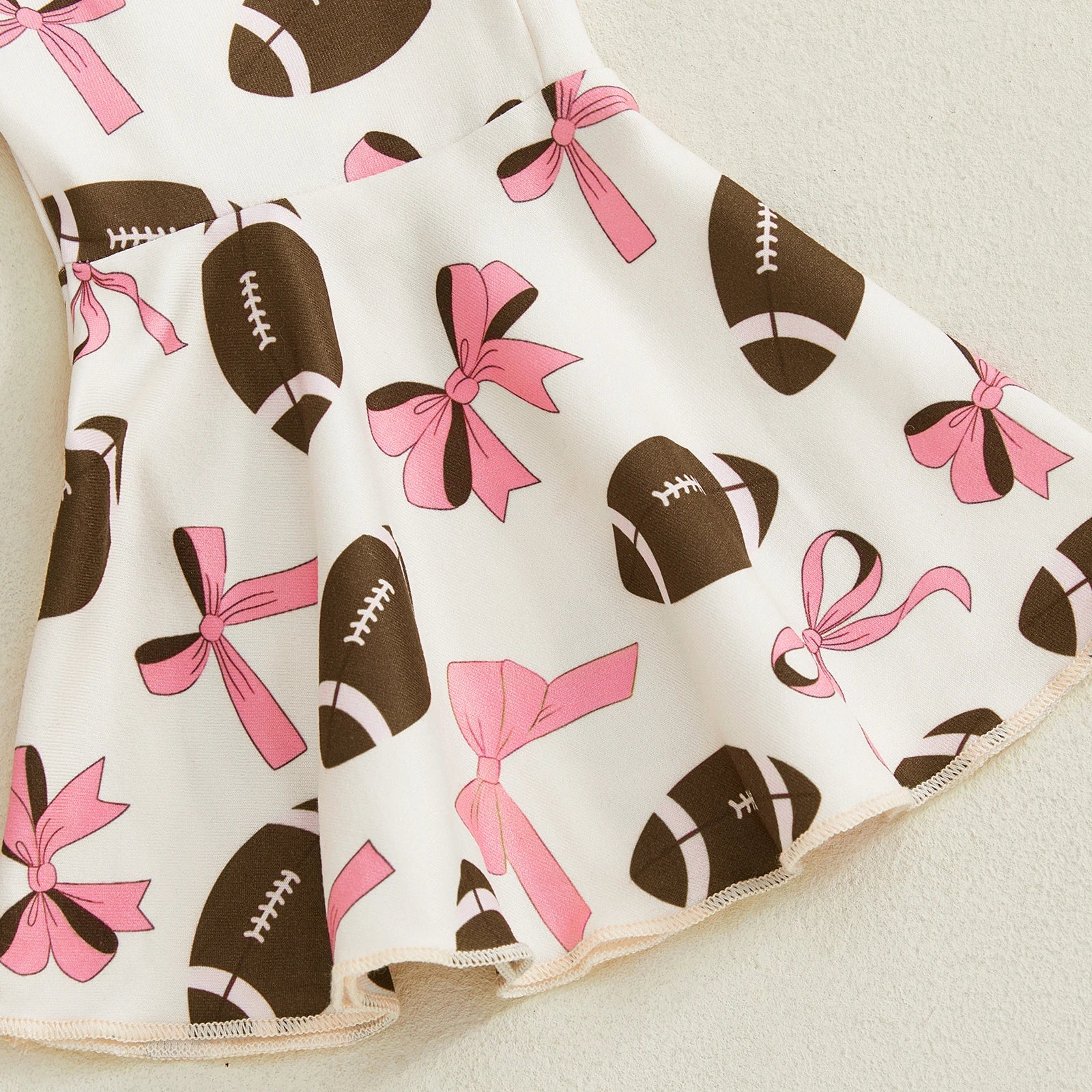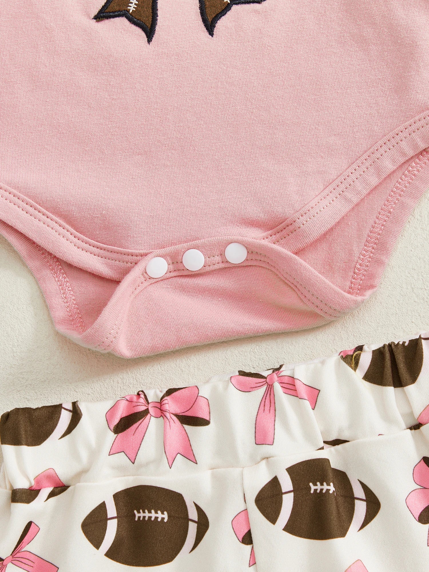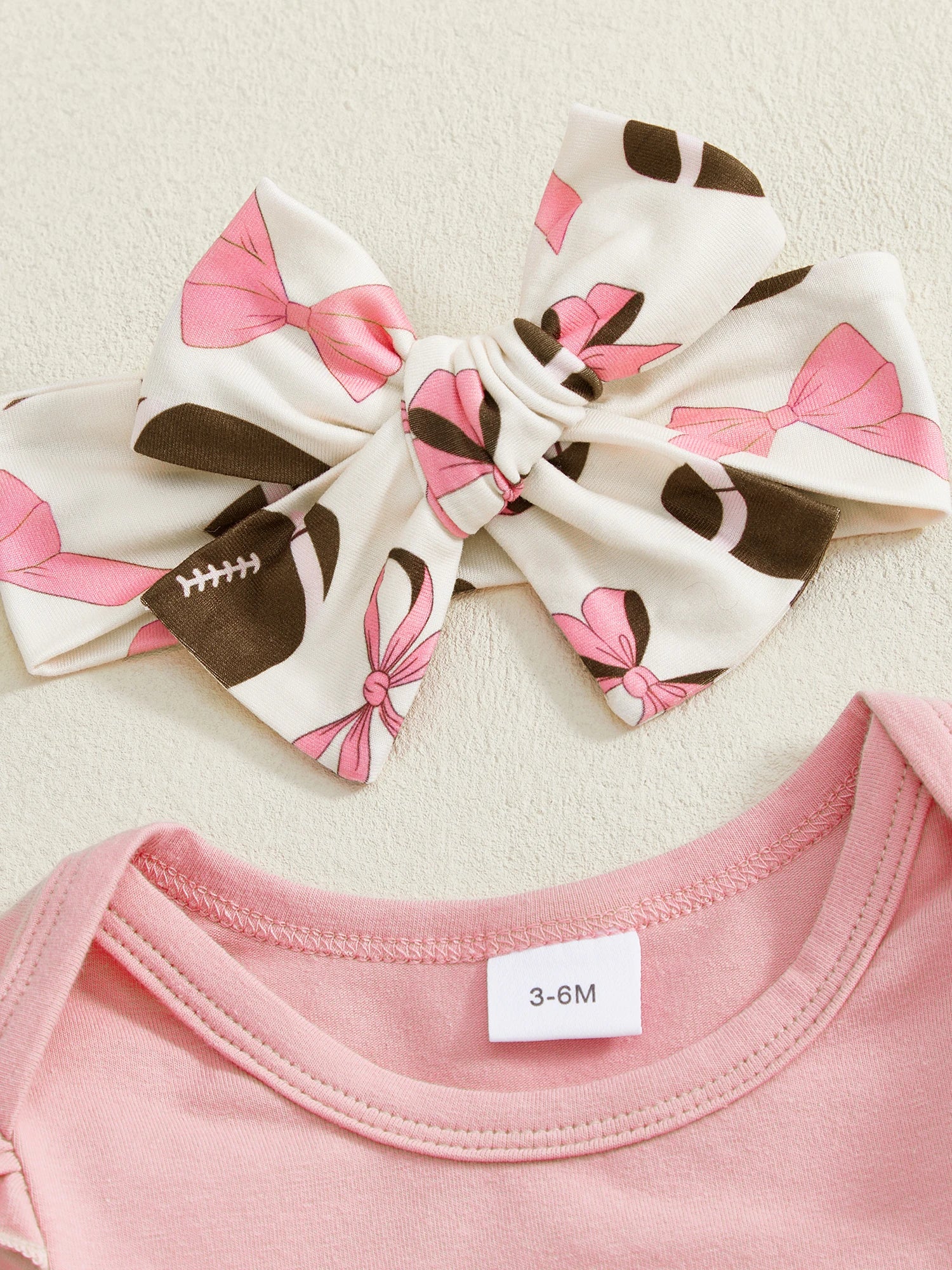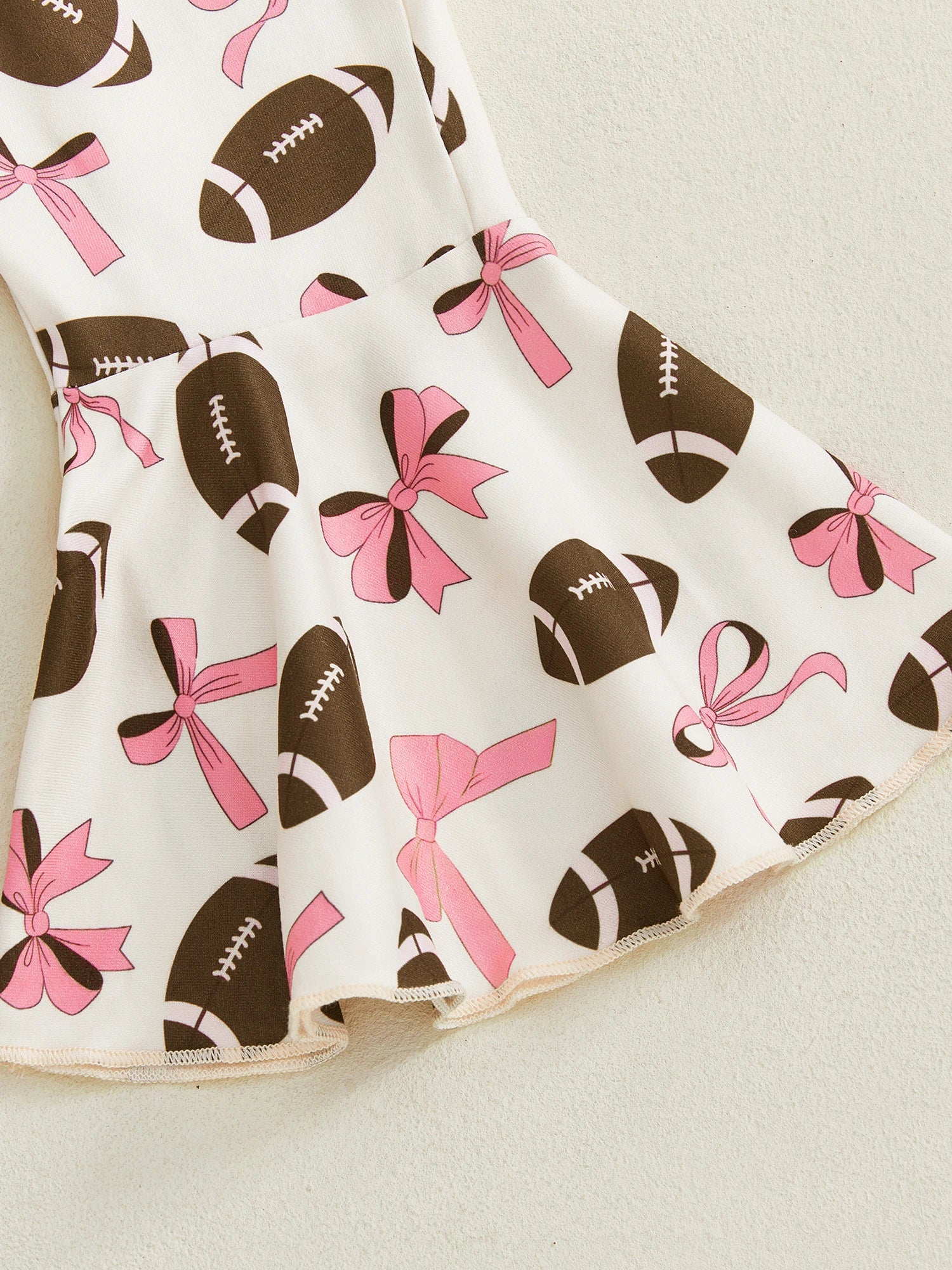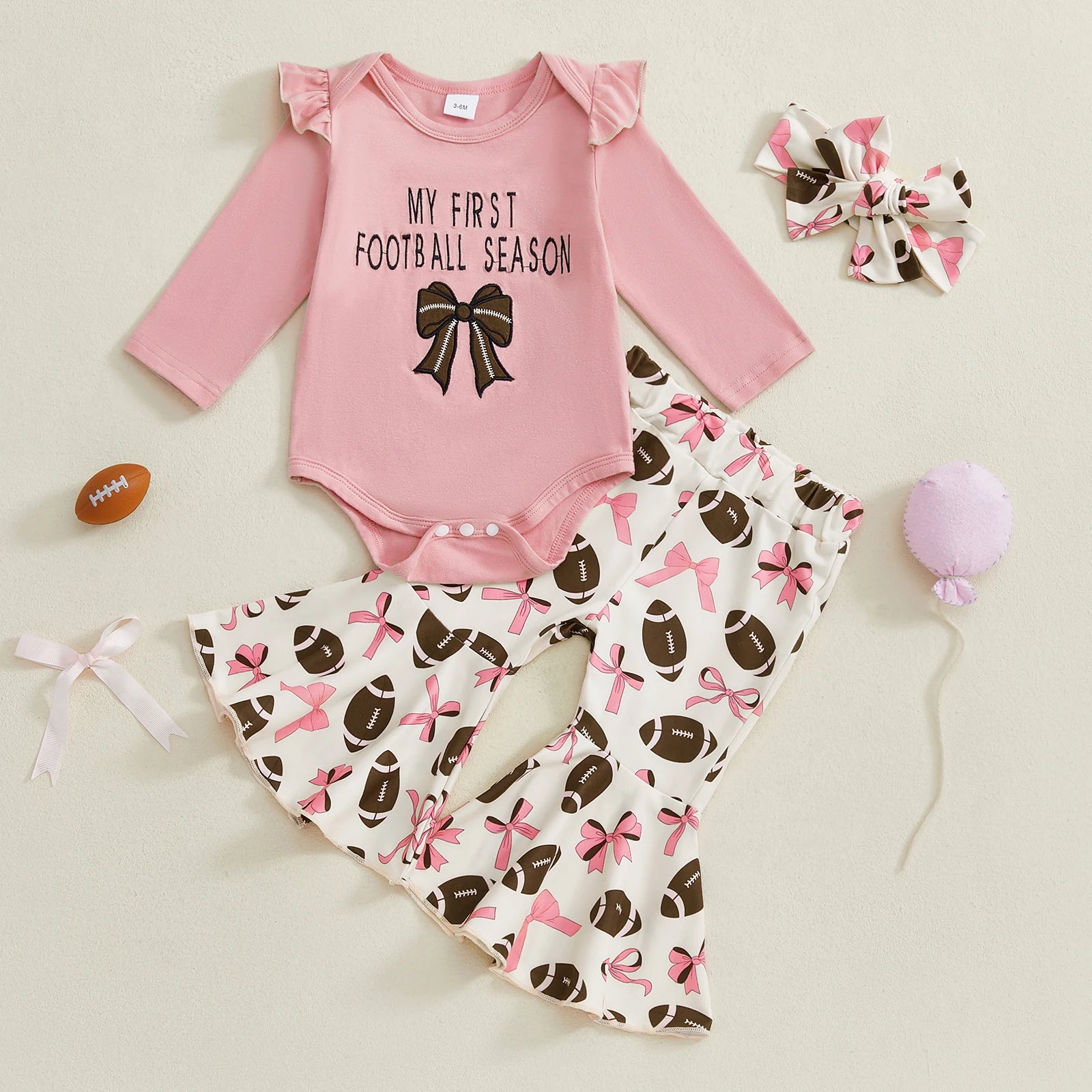 Baby Girls 3Pcs Game Day Fall Outfit Football Print Long Sleeves Romper and Elastic Flared Pants Headband Set Cute Clothes