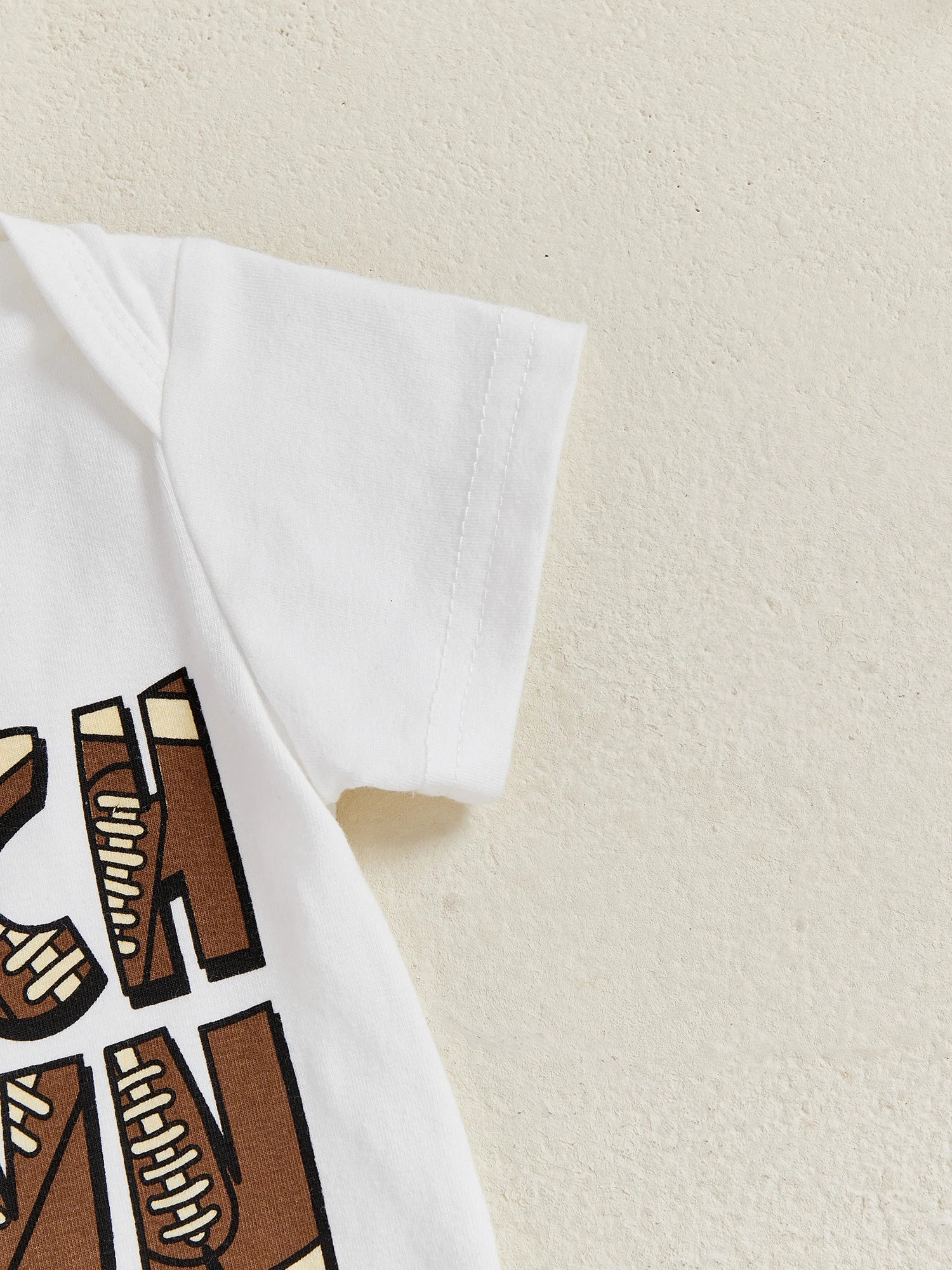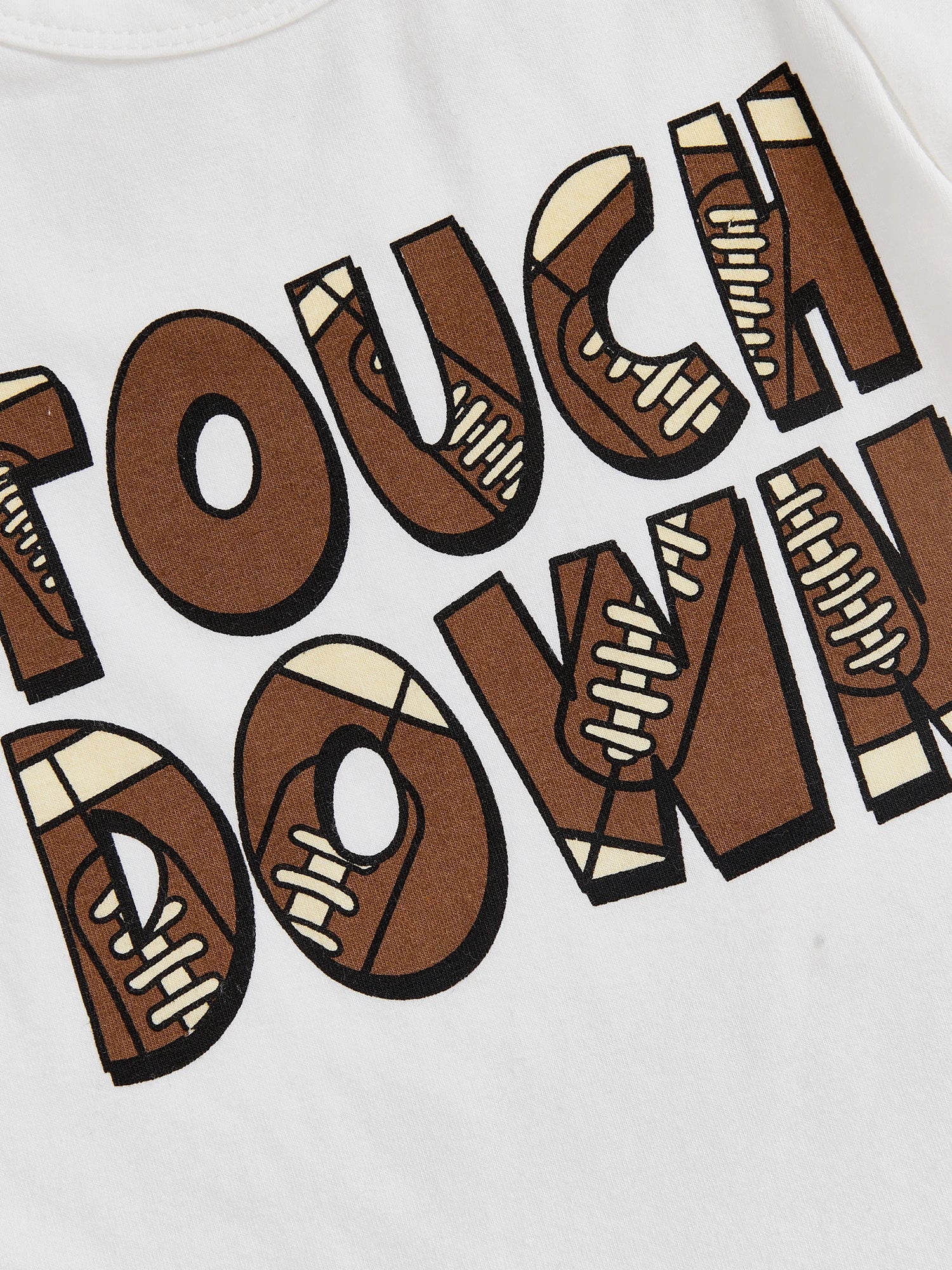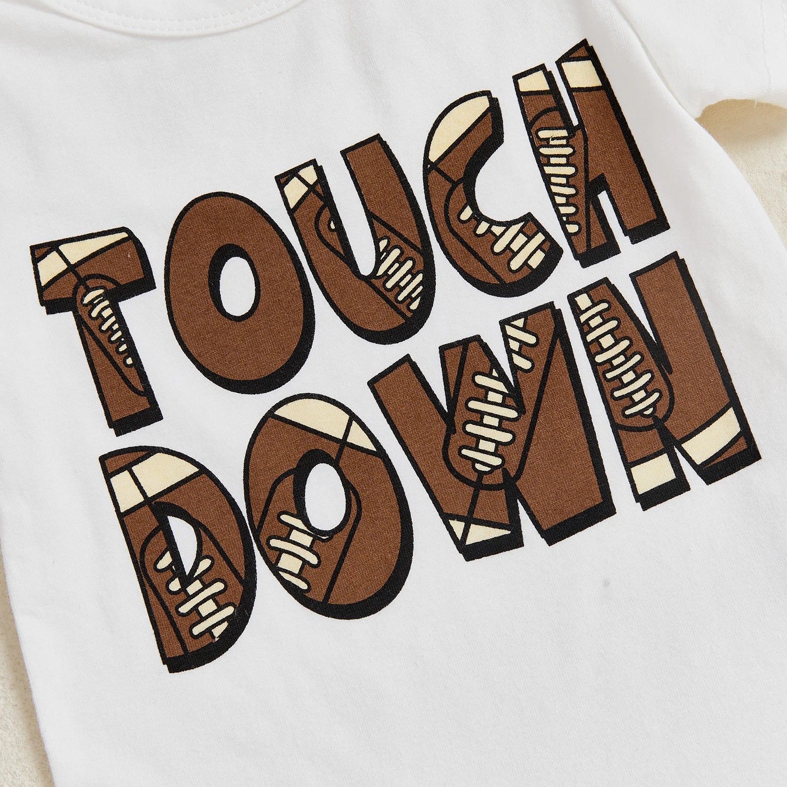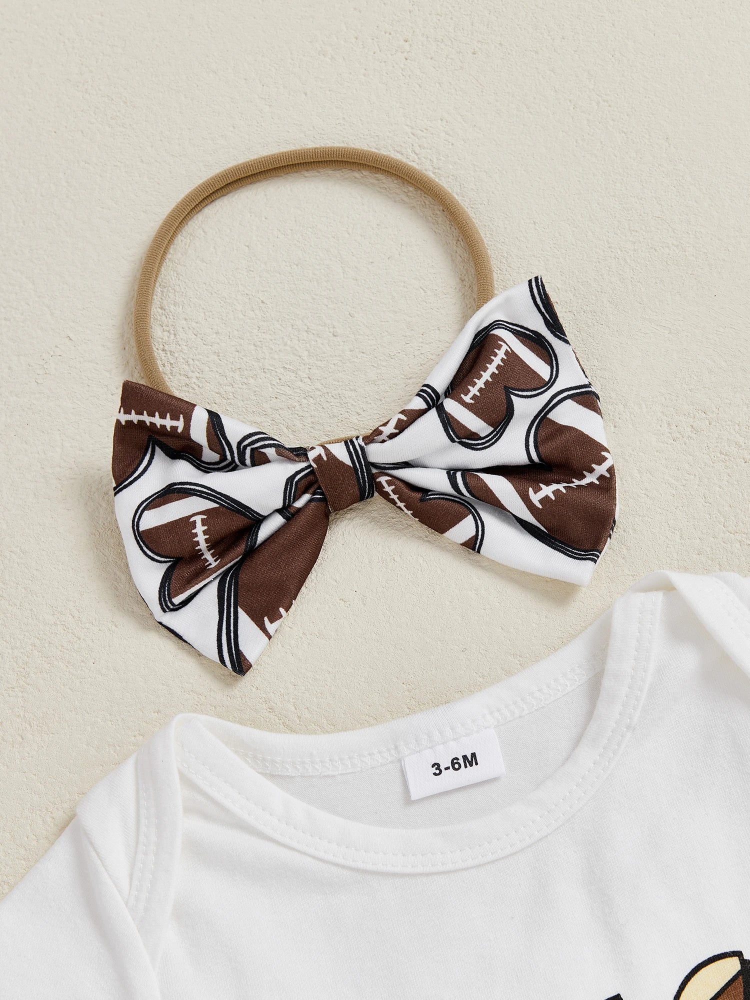 Baby Girls 3Pcs Touch Down Outfit Football Letter Print Romper Skirted Shorts Skort and Headband Bow Set