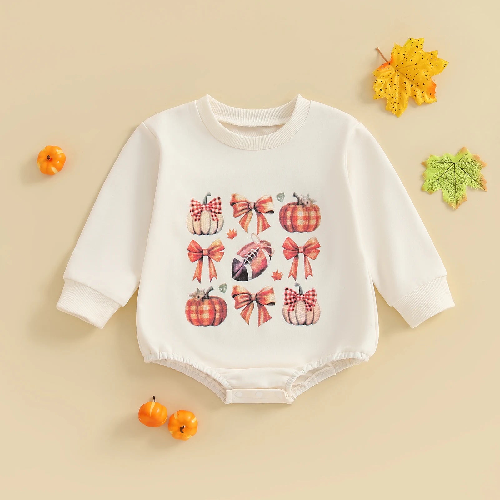 Baby Girls Boys Bubble Romper Halloween Clothes Pumpkin Print Long Sleeve Fall Bodysuit Jumpsuit