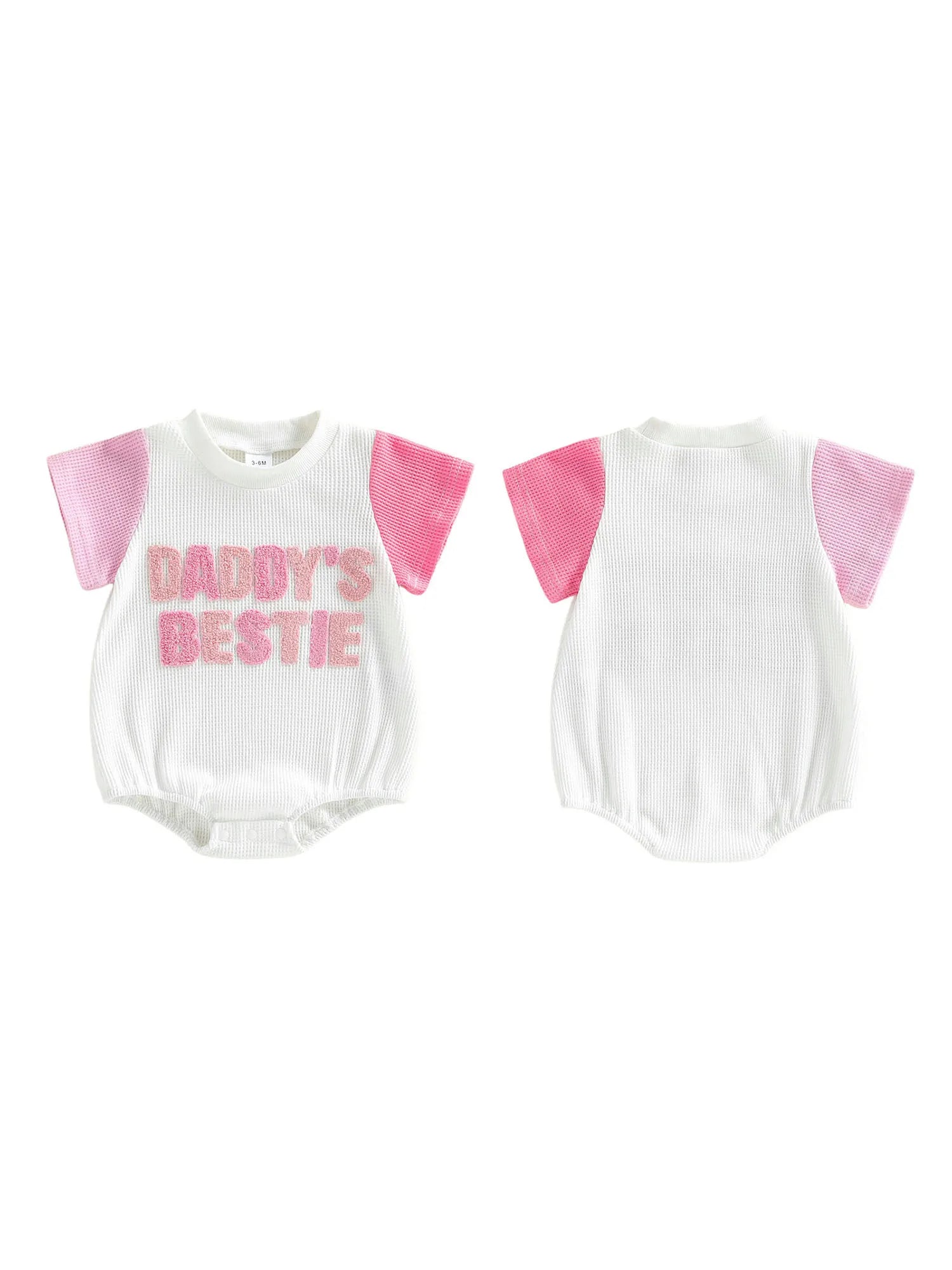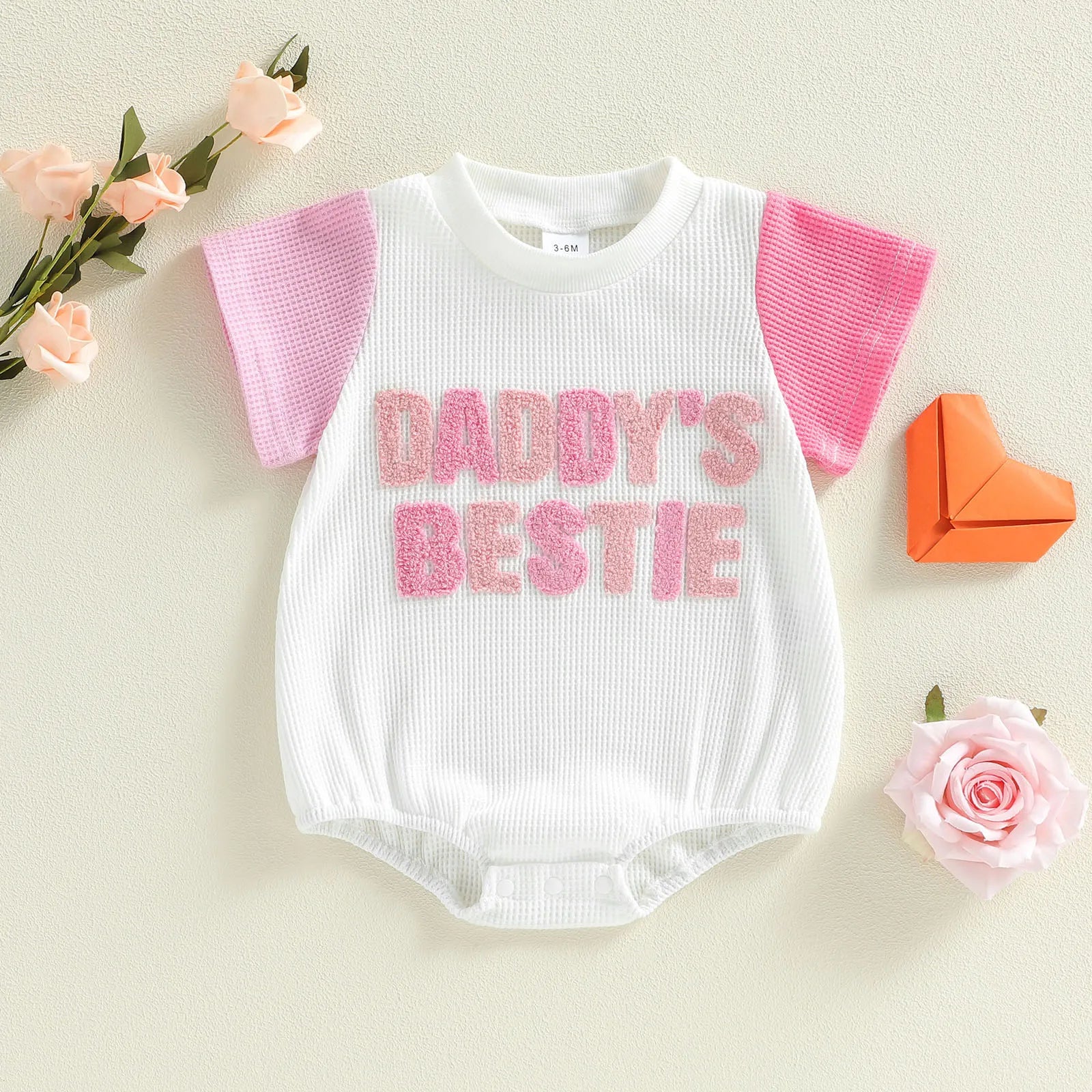 Baby Girls Daddy's Bestie Summer Romper Fashionable Letters Embroidery Short Sleeve Round Neck Jumpsuit