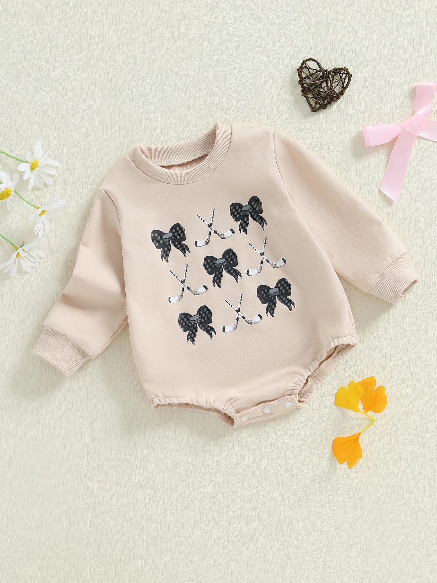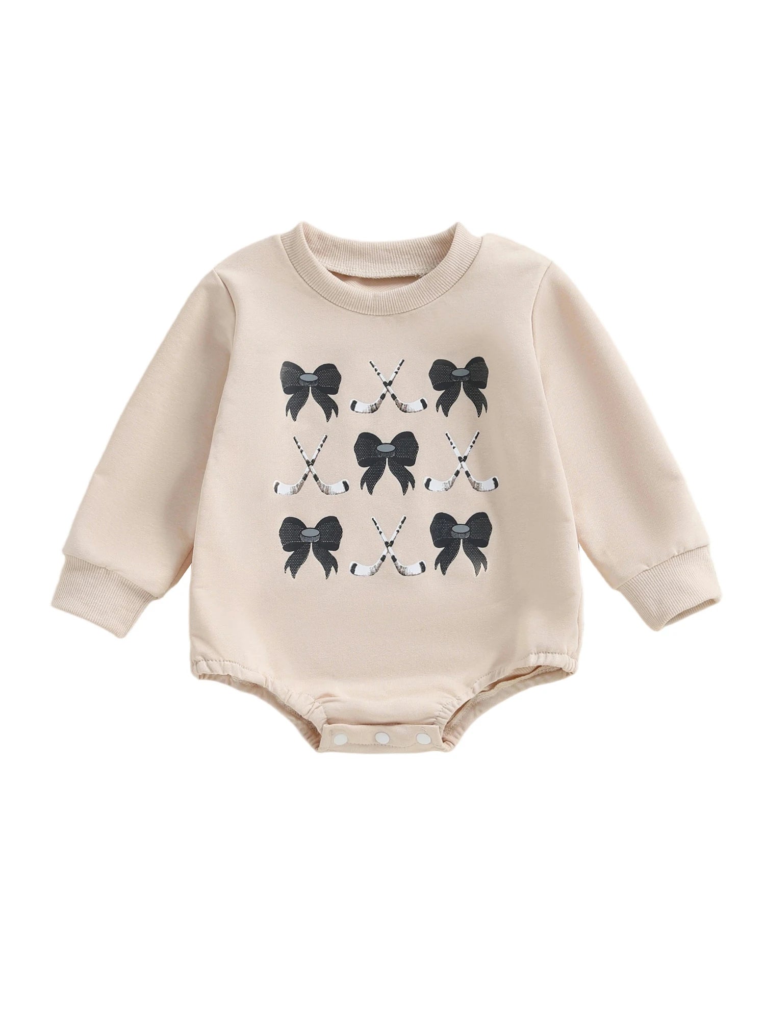Baby Girls Fall Romper Bow Hockey / Game Day Letter Print Long Sleeve Round Neck Bubble Jumpsuit