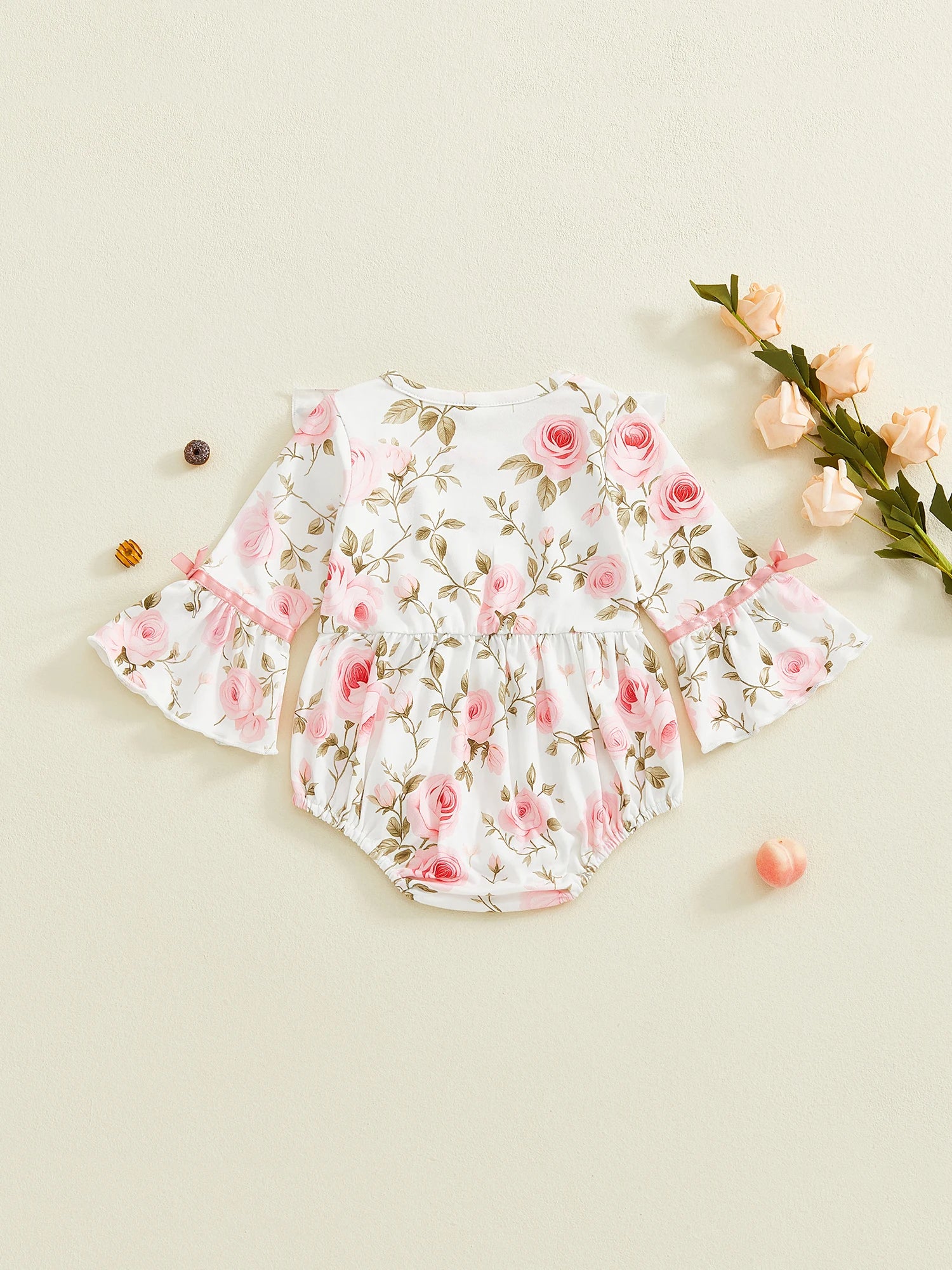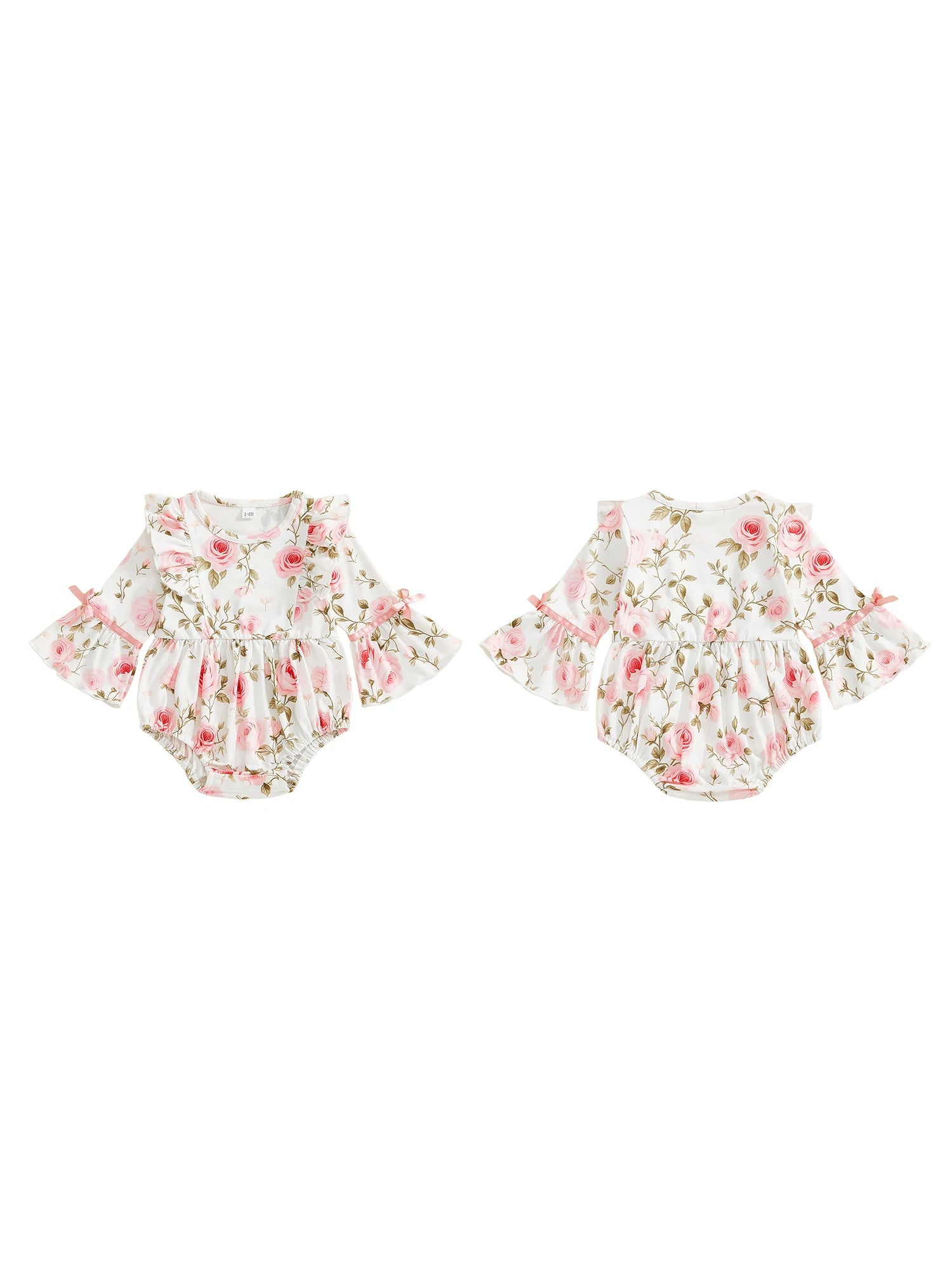 Baby Girls Floral Romper Comfortable Long Sleeve Round Neck Flower Print Jumpsuit