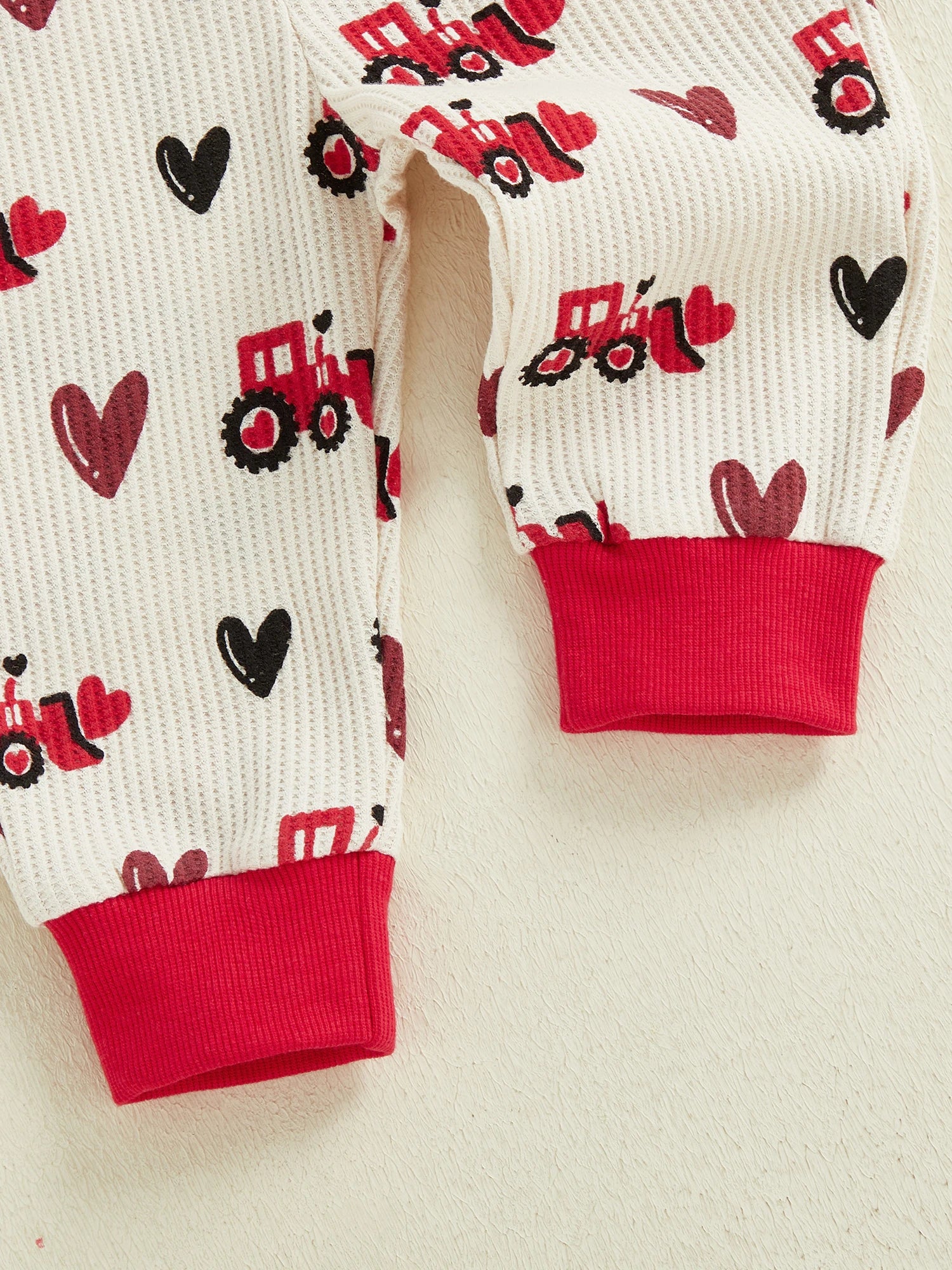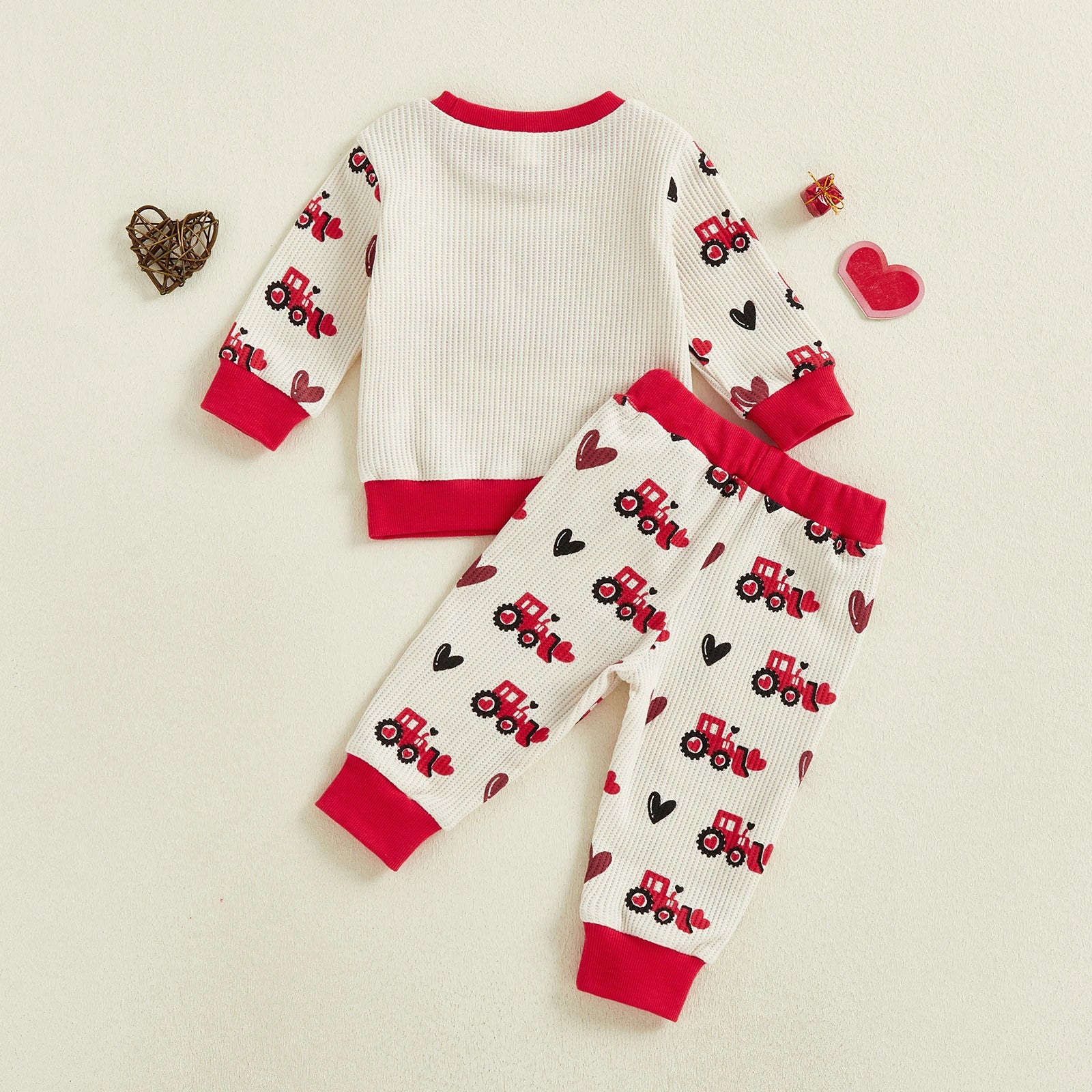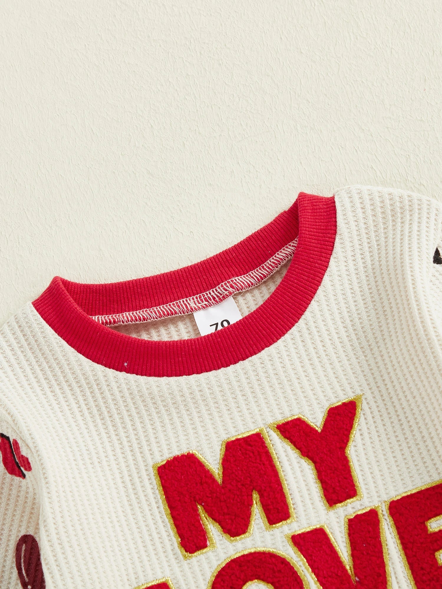 Baby Toddler Boy 2Pcs MY LOVE Valentine's Outfit Letter Embroidery Long Sleeve Crew Neck Pullover Top and Joggers Pants Set