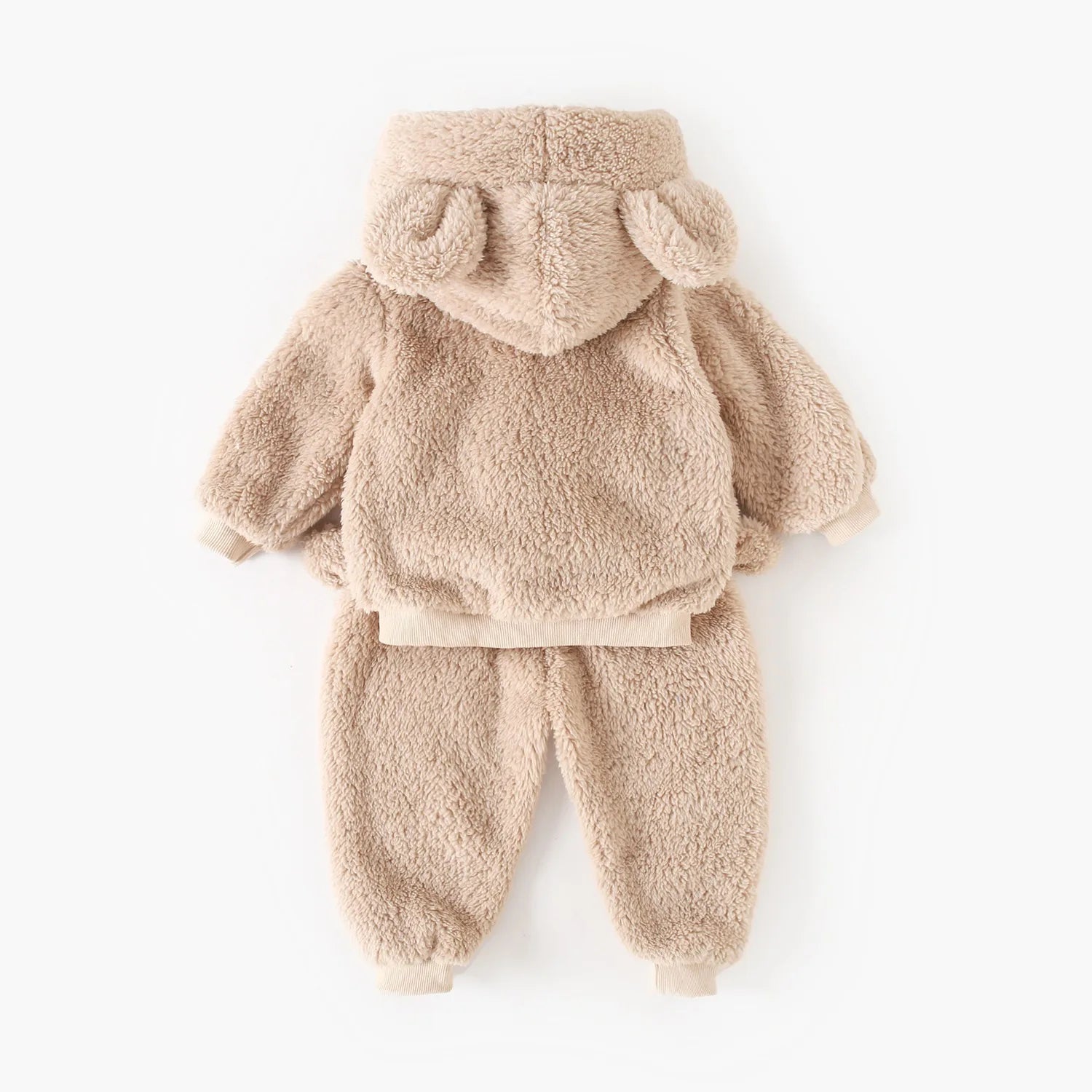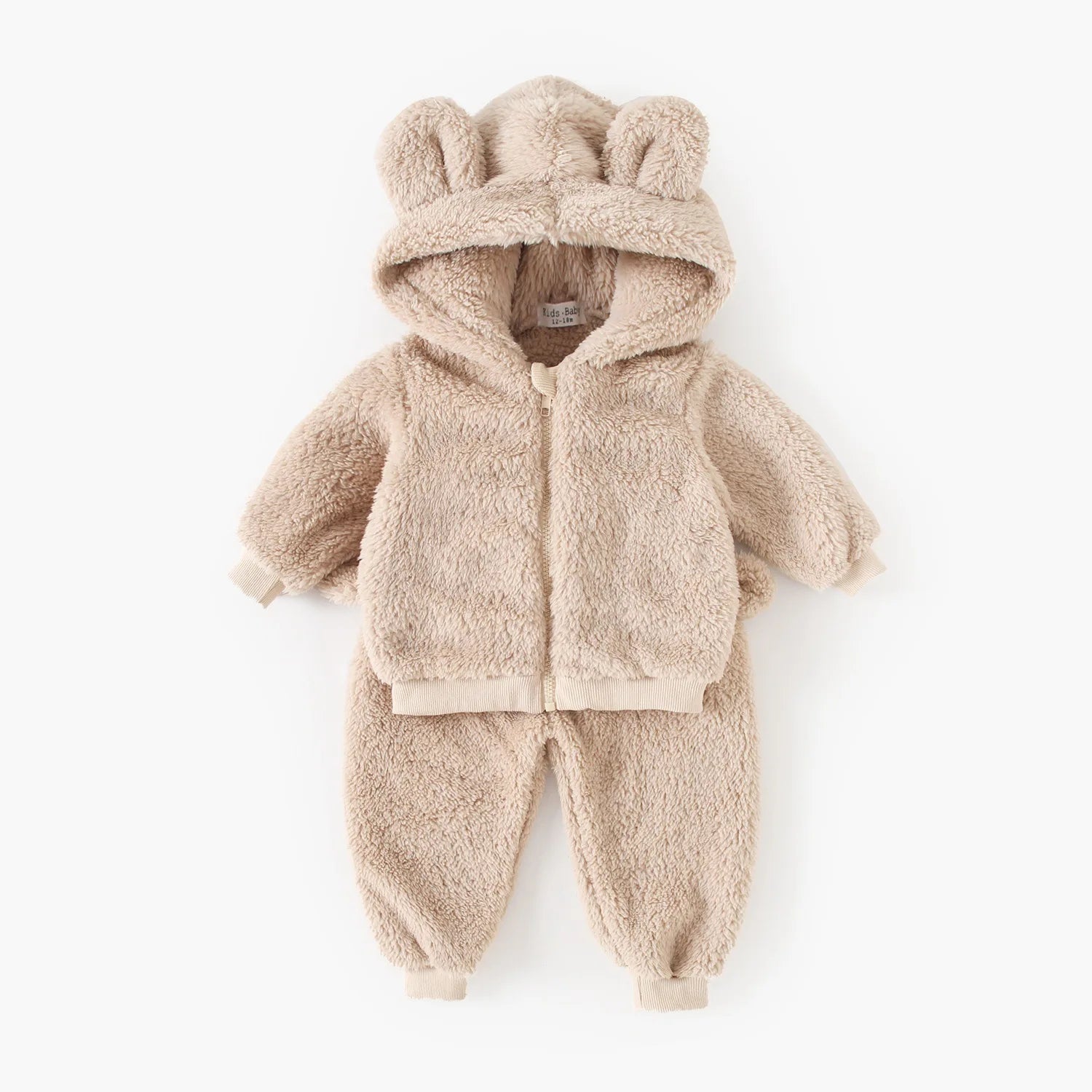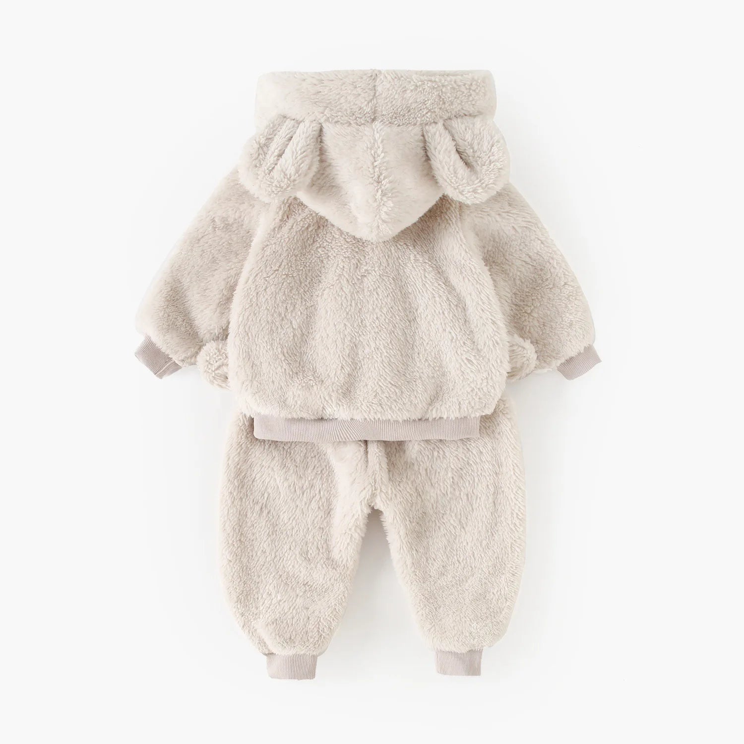 Baby Toddler Boy Girl 2Pcs Bear Winter Clothes Set Zipper Hooded Top with Ears Pant Suit Thick Warm Fleece Two Piece Jogger Set Outfit