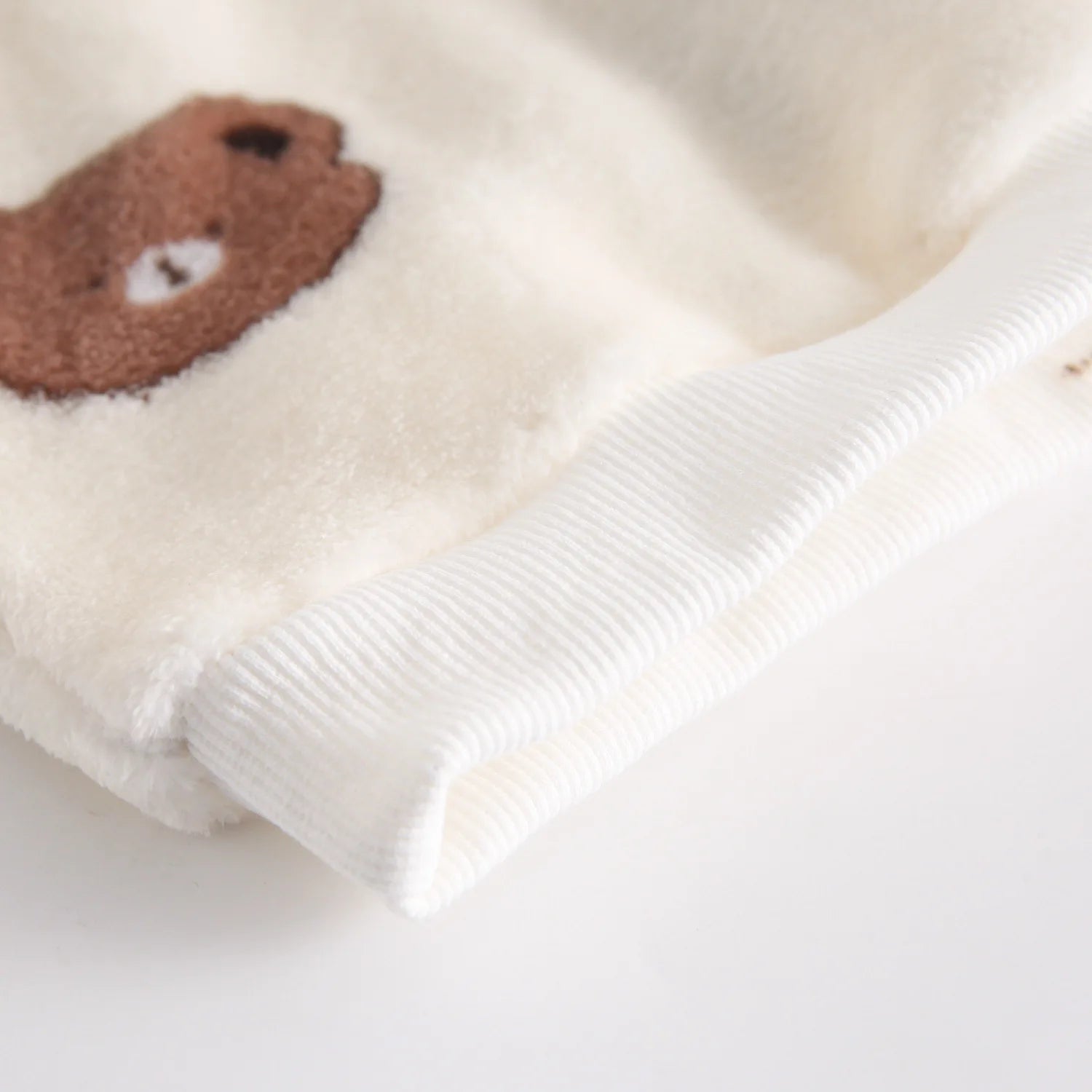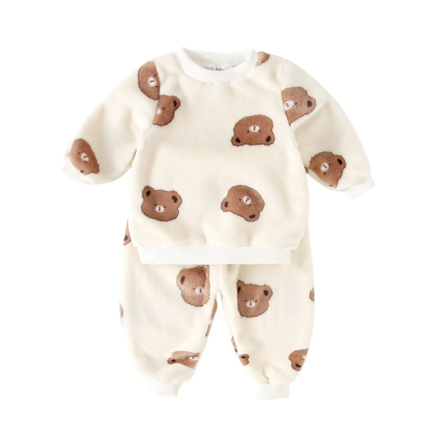 Baby Toddler Boy Girl 2Pcs Winter Clothes Set Thick Warm Pullover Top Pant Suit Bear Print Fleece Two Piece Jogger Set Outfit