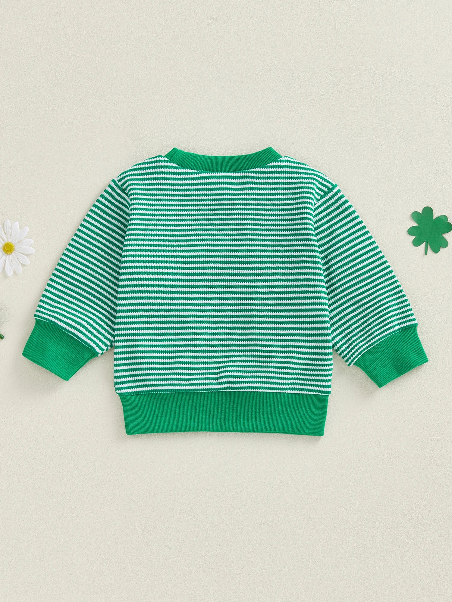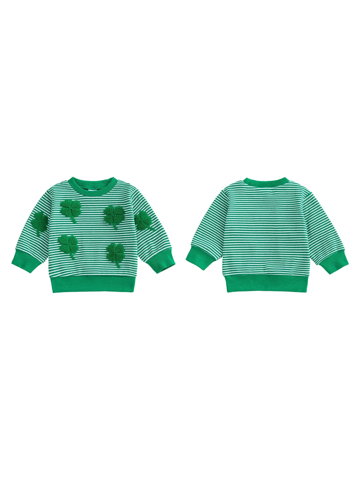 Baby Toddler Boy Girl Shamrock Embroidery Striped Pullover Crew Neck Long Sleeve Spring Top for St. Patrick's Day