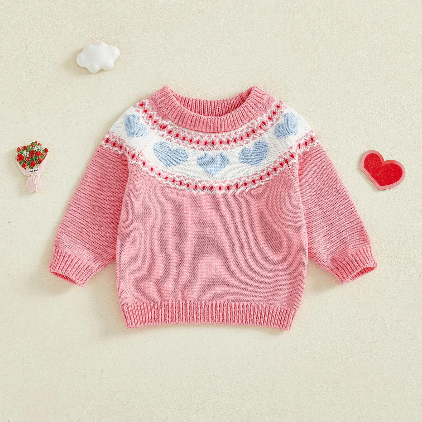 Baby Toddler Boy Girl Valentine's Day Sweater Heart Pattern Crewneck Long Sleeve Pullover Chunky Knit Top