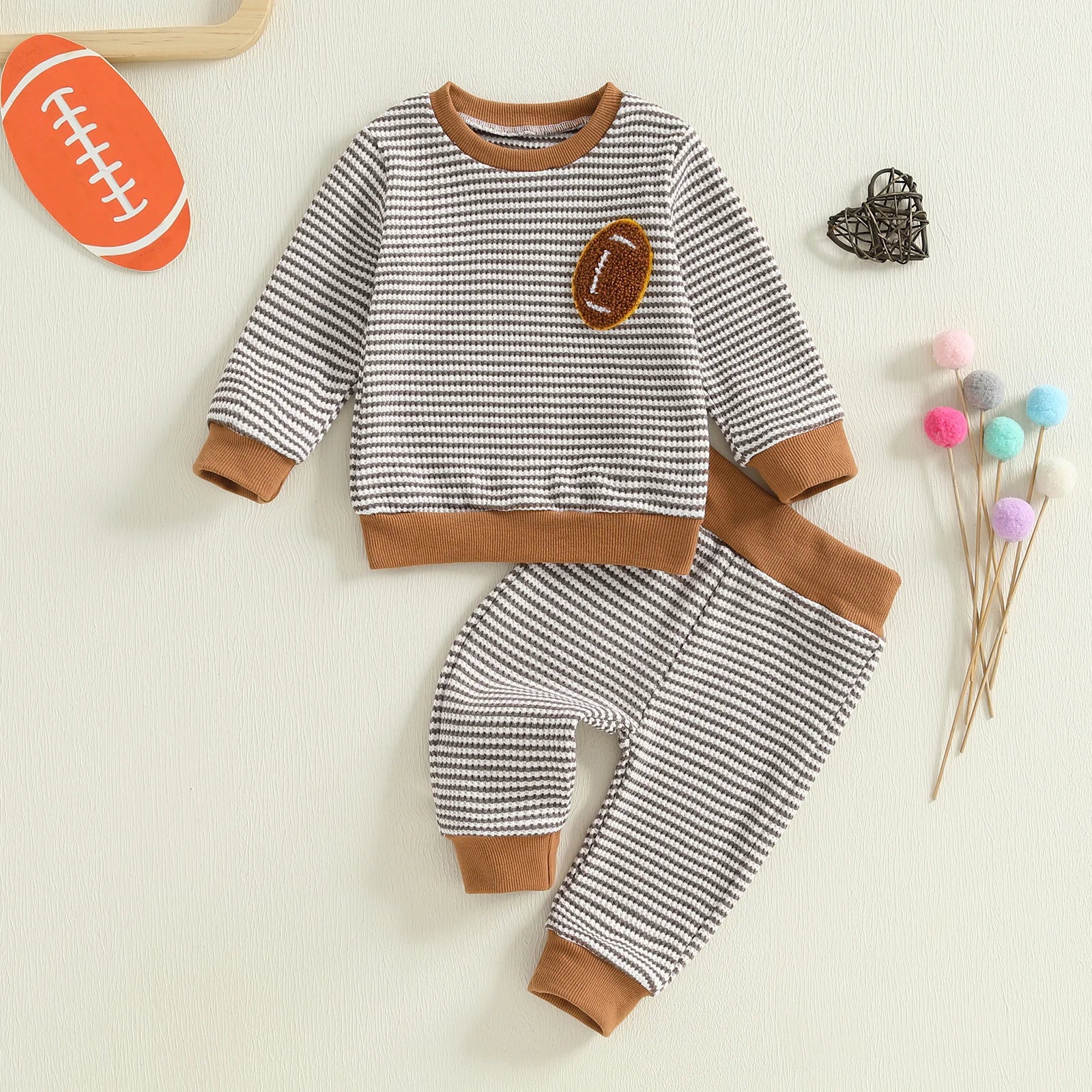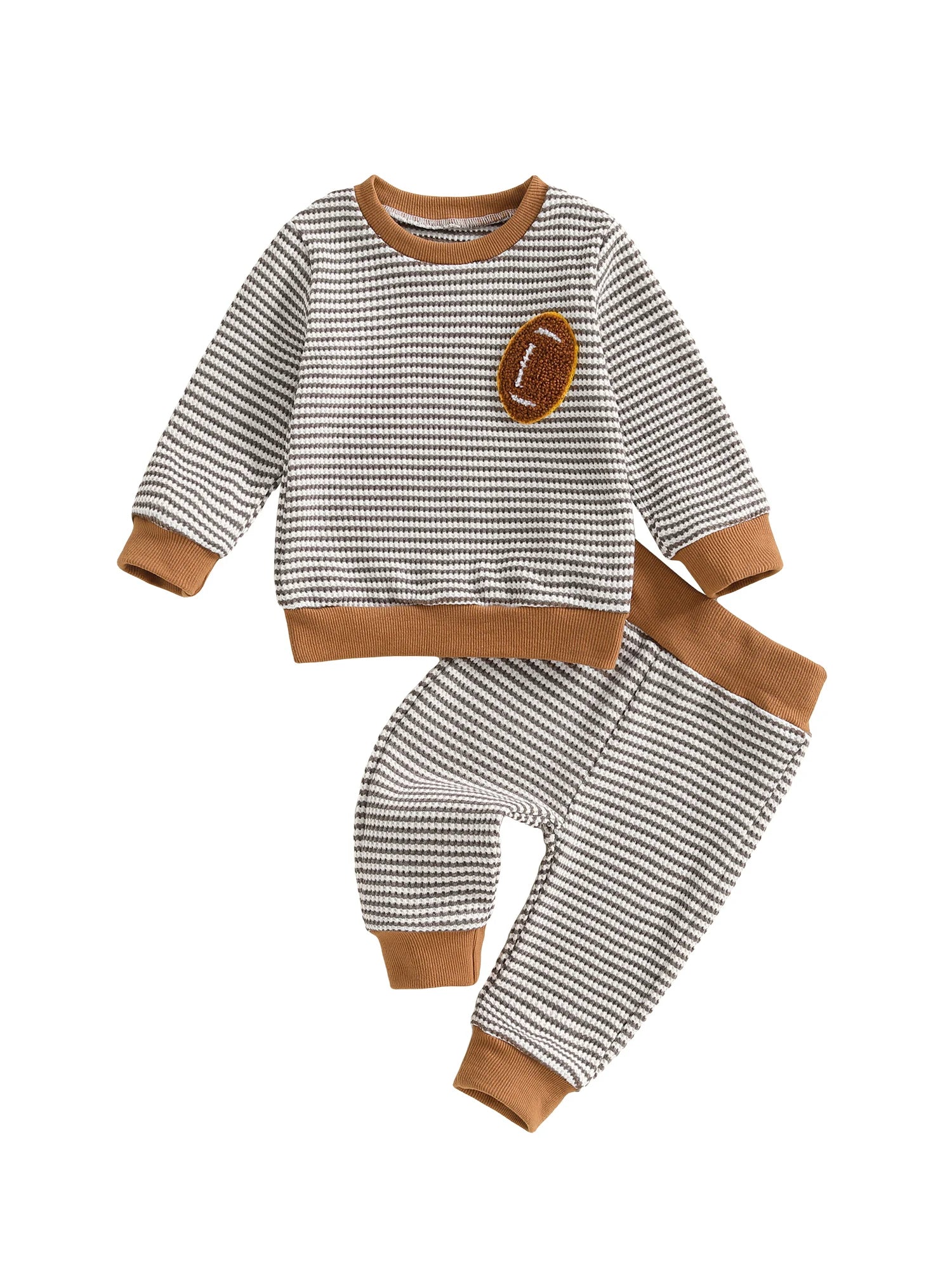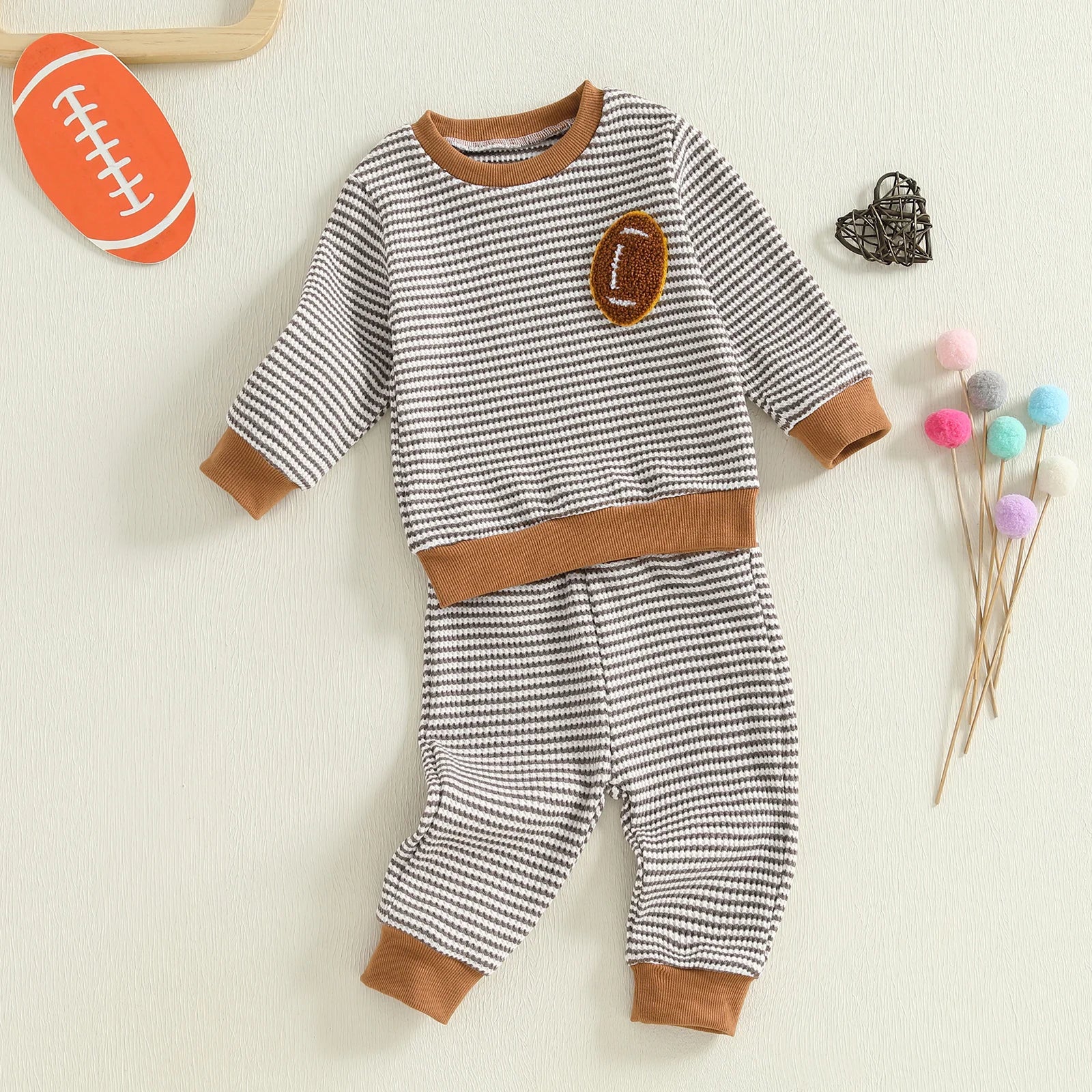 Baby Toddler Boys 2Pcs Autumn Long Sleeve O Neck Football Embroidery Top Striped Pants Jogger Set
