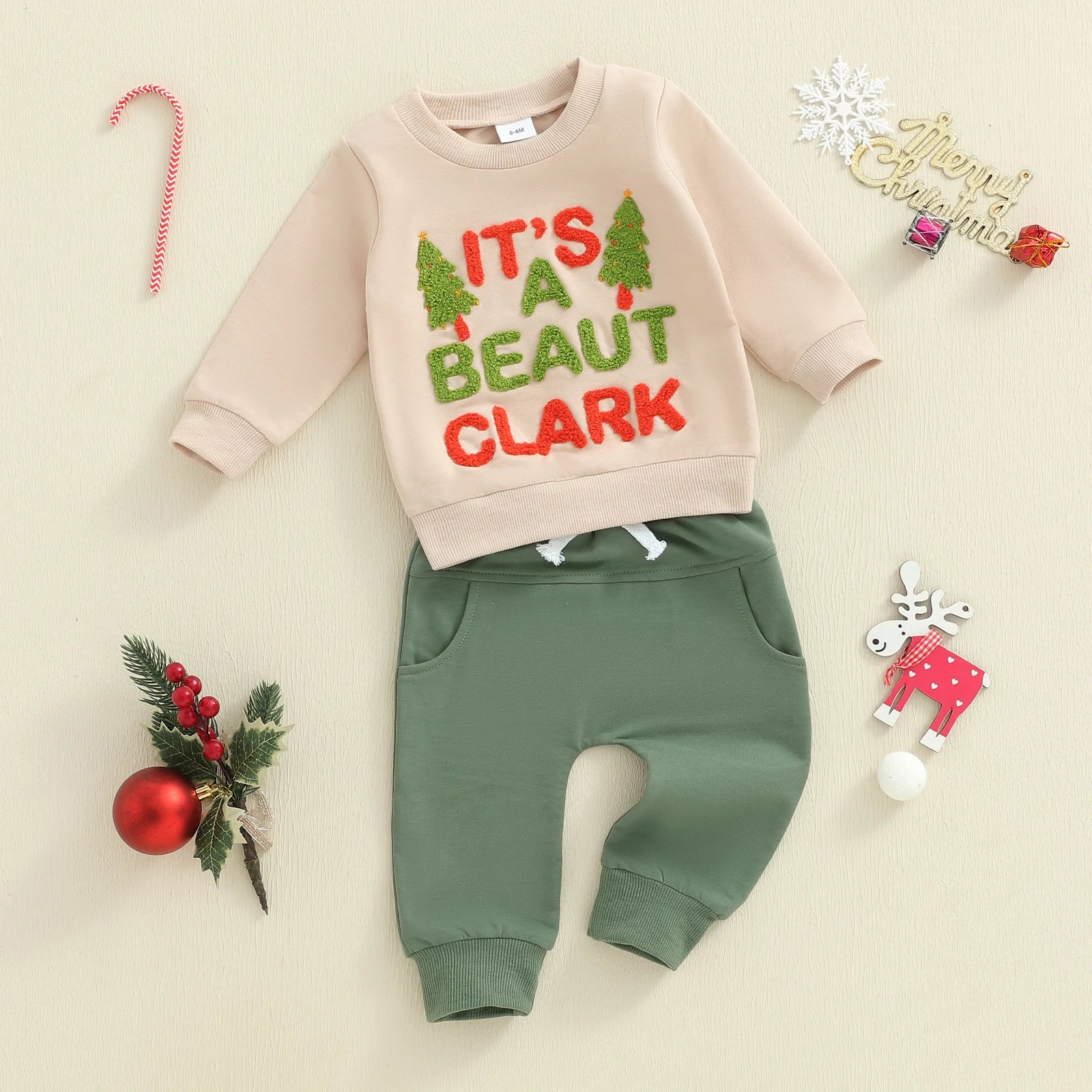 Baby Toddler Boys 2Pcs Christmas It's A Beaut Clark Outfits Long Sleeve Crew Neck Letter Embroidery Top and Elastic Waist Pants Jogger Set