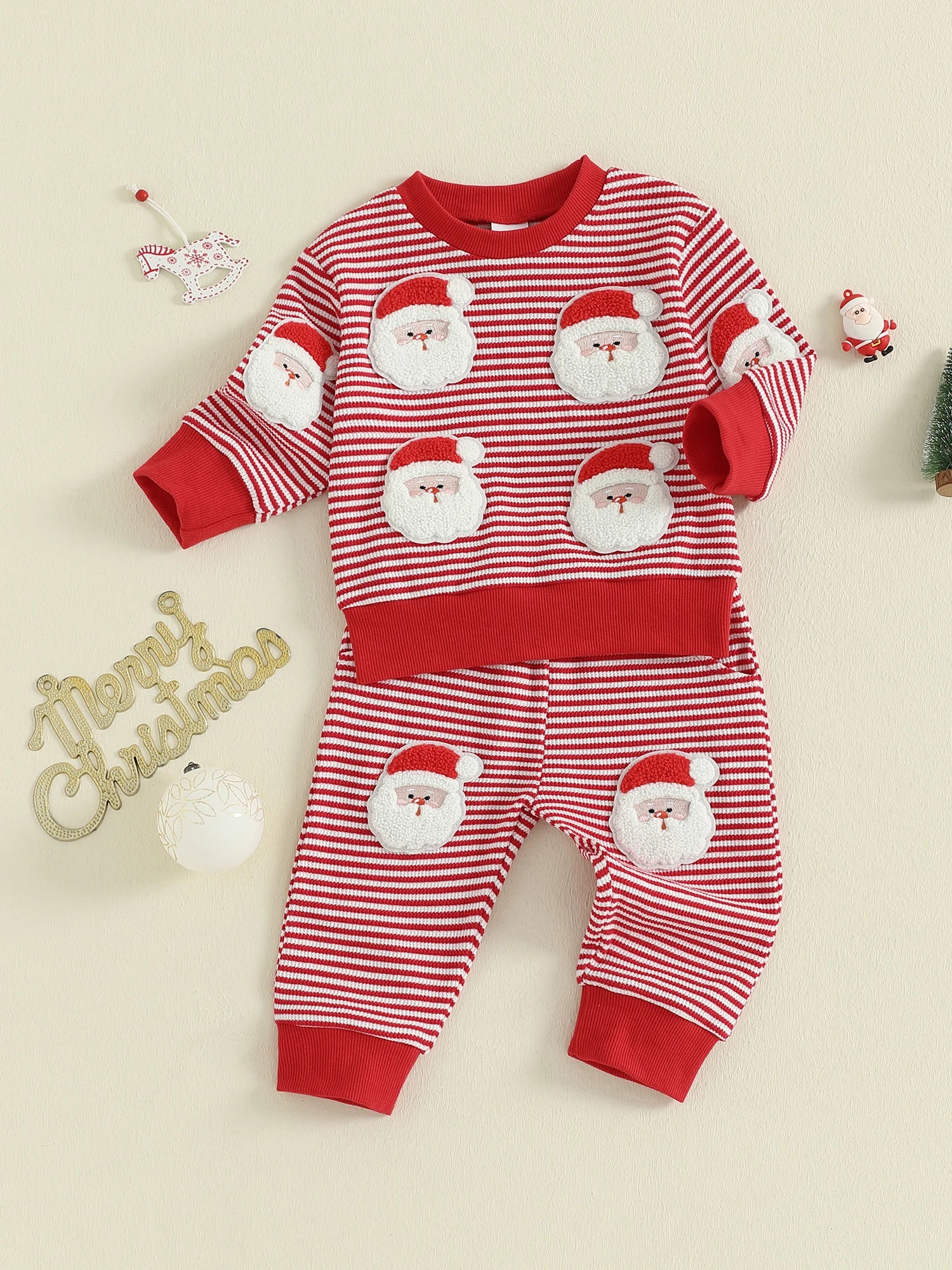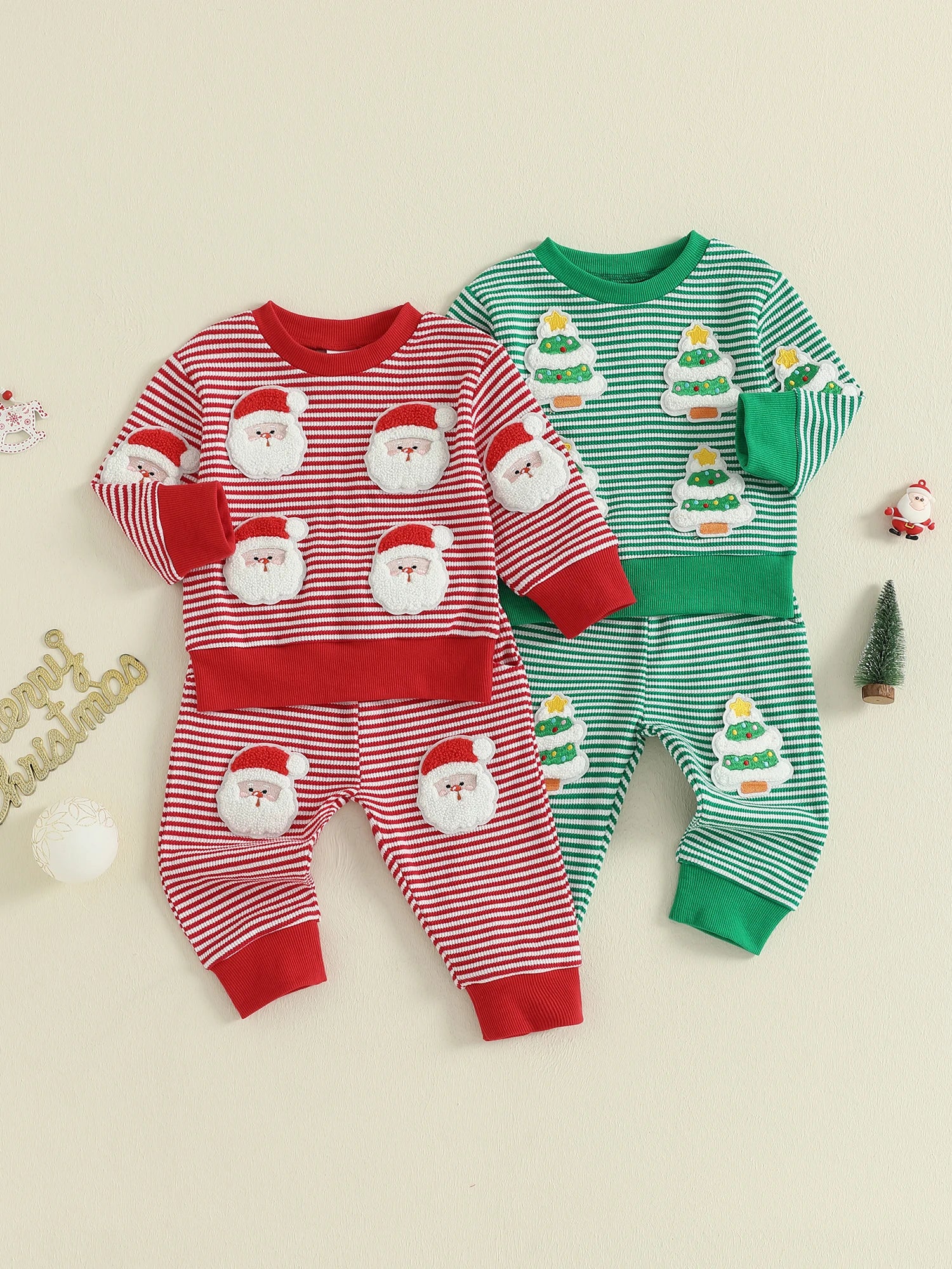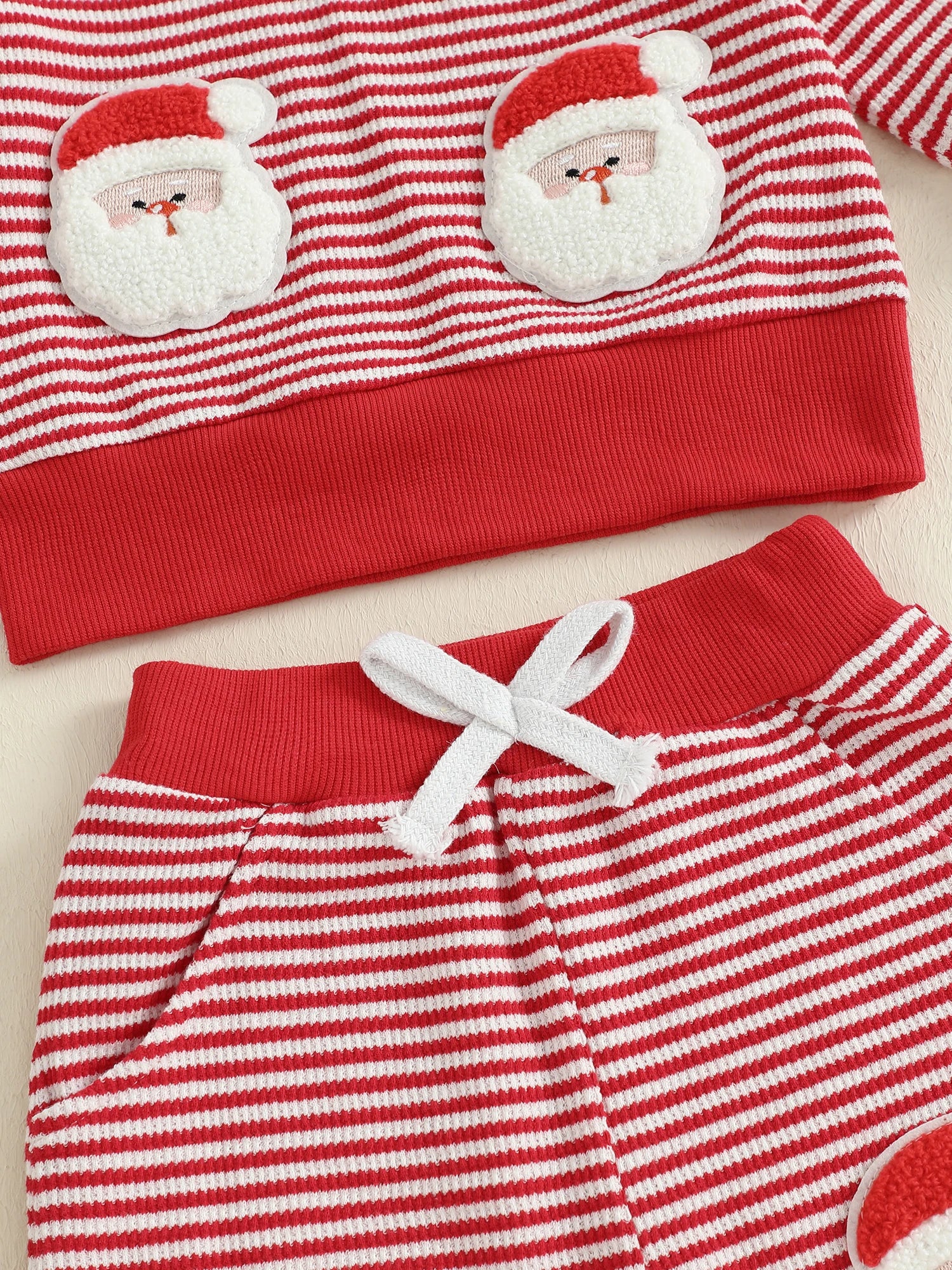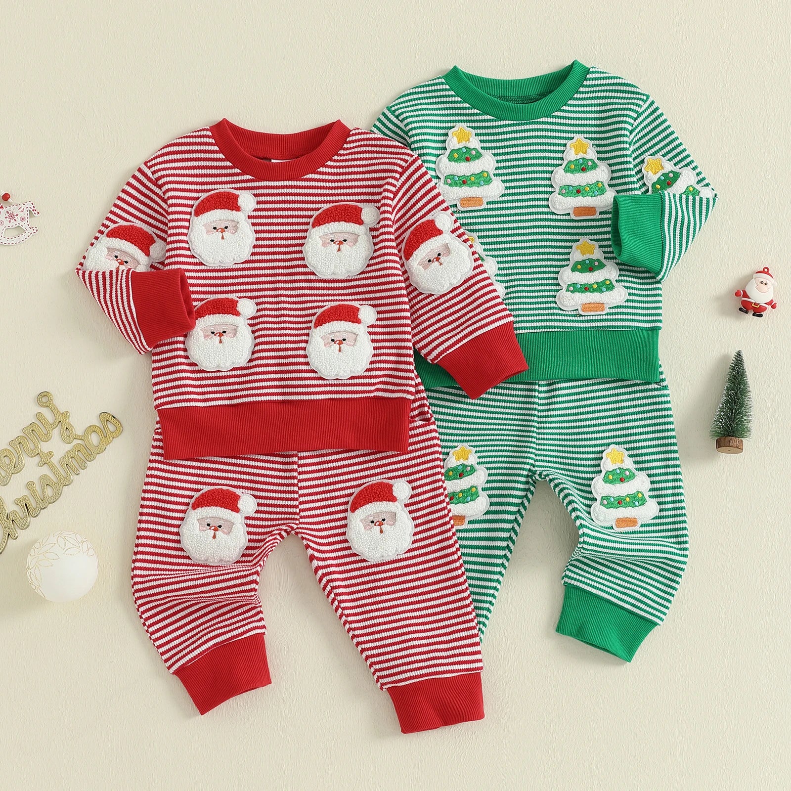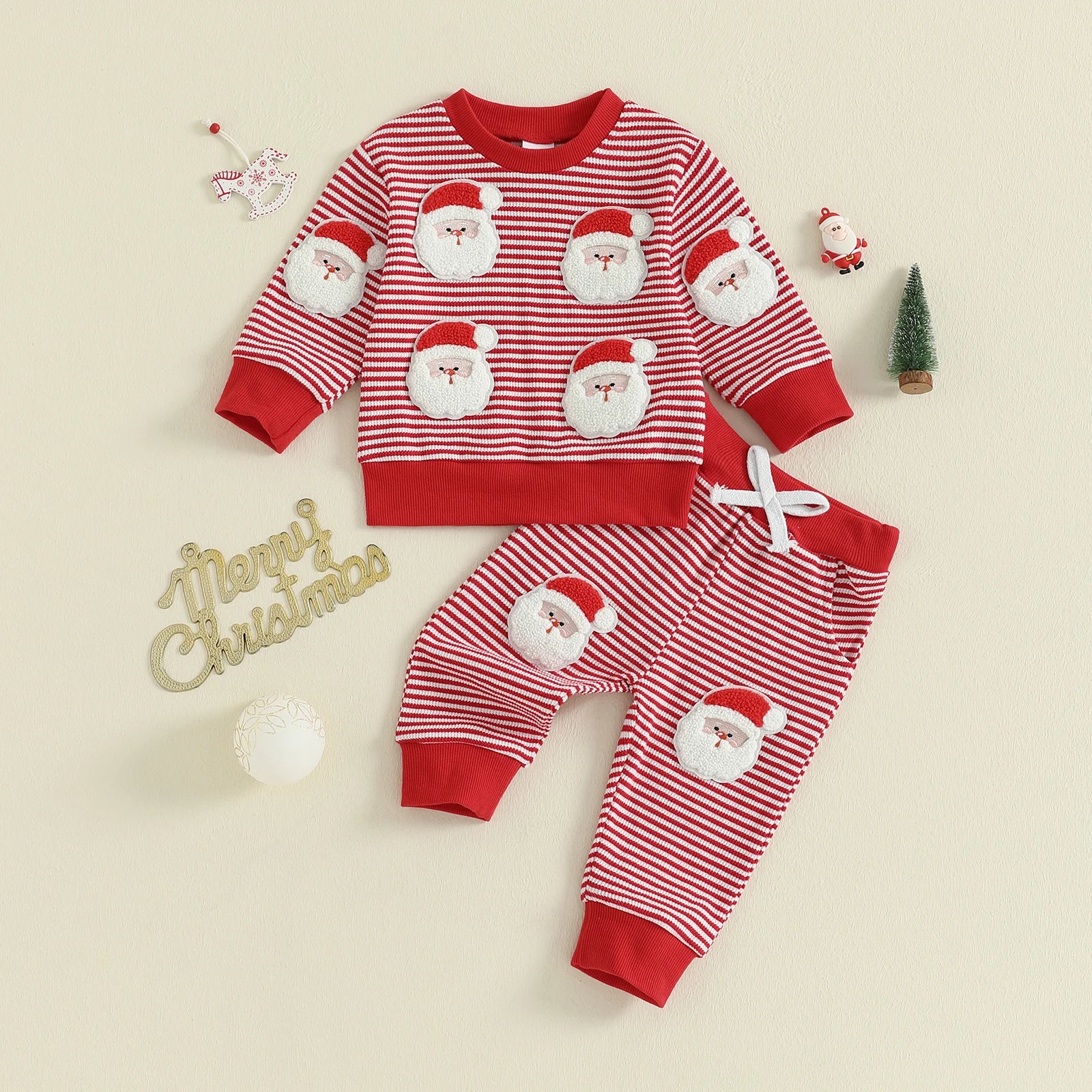 Baby Toddler Boys 2Pcs Christmas Outfits Long Sleeve Stripes Print Top and Pants Jogger Set Winter Clothes