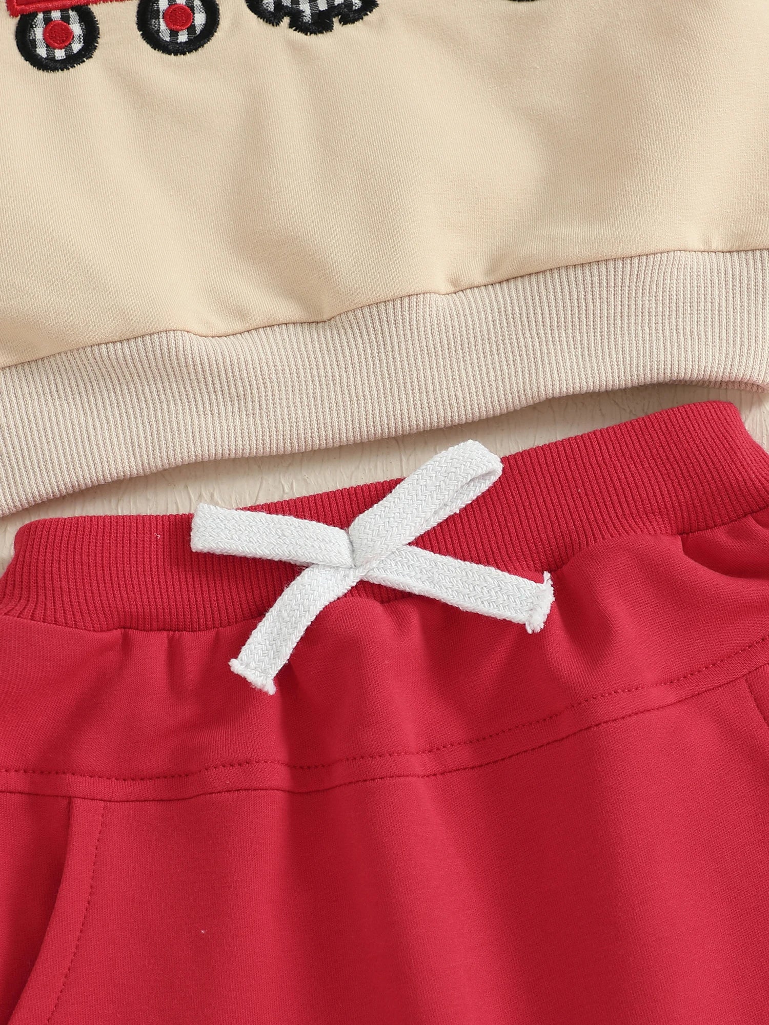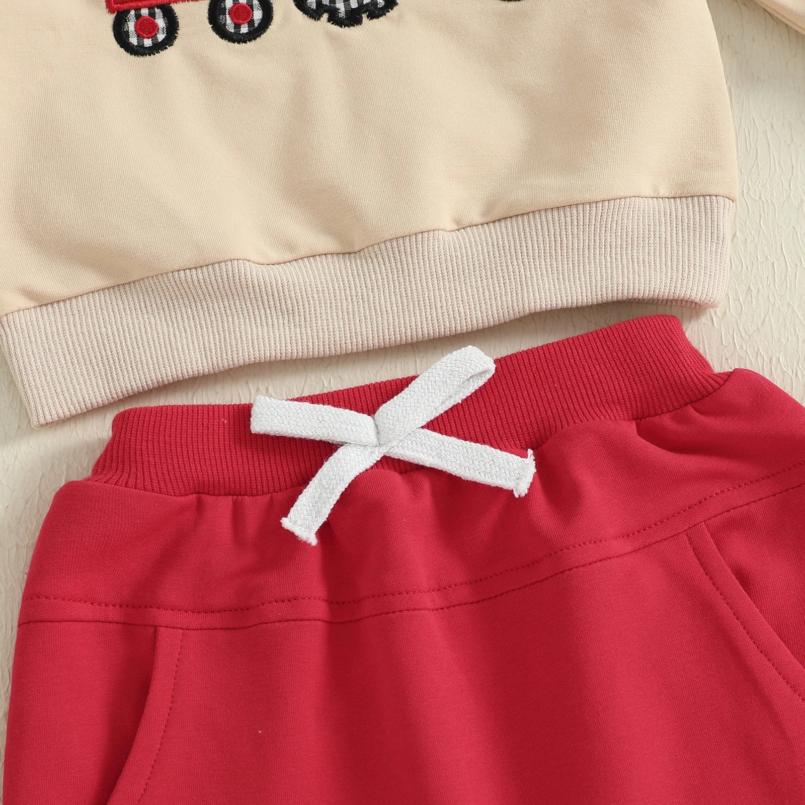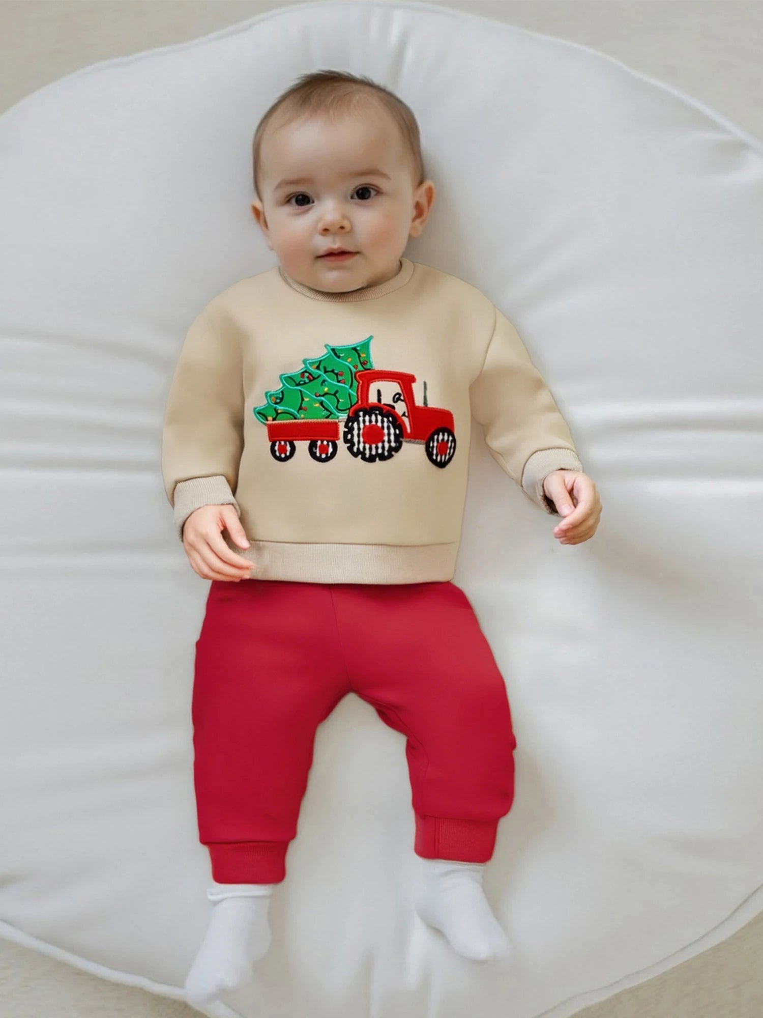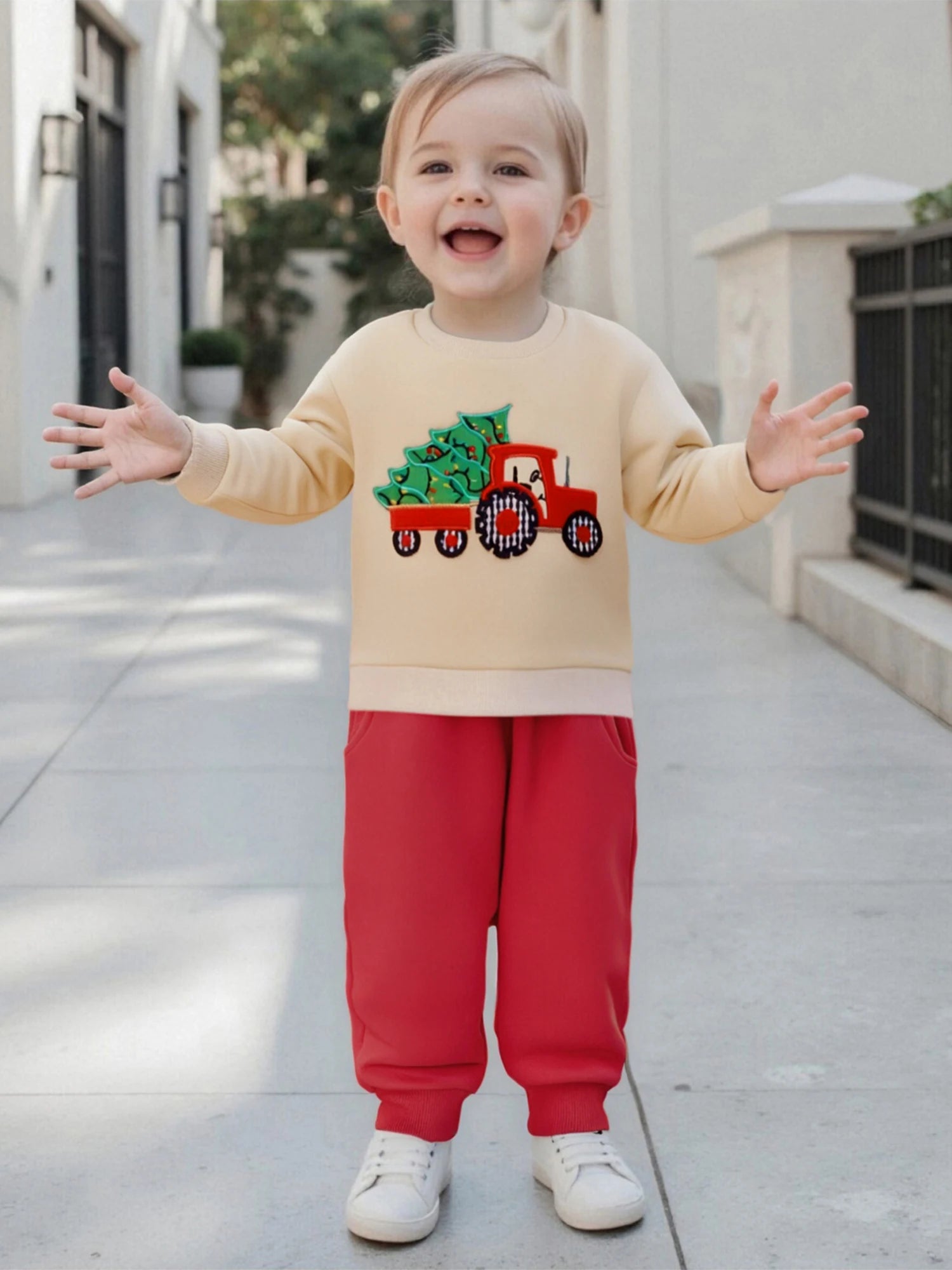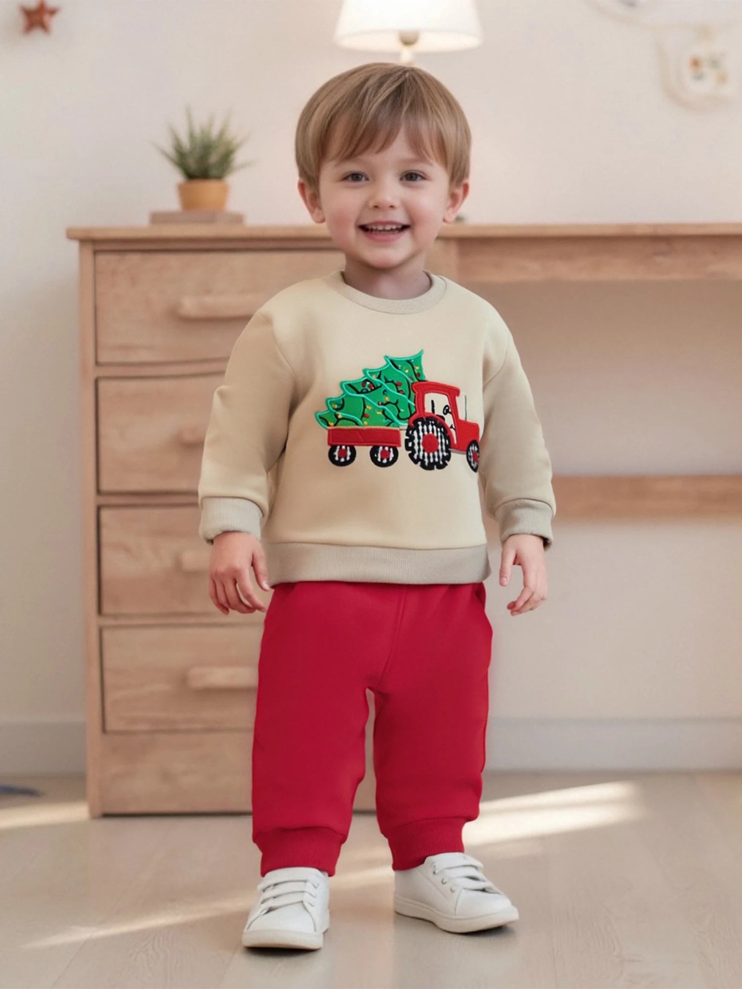 Baby Toddler Boys 2Pcs Christmas Set Truck and Christmas Tree Long Sleeve Round Neck Pullover Top Jogger Pants Set