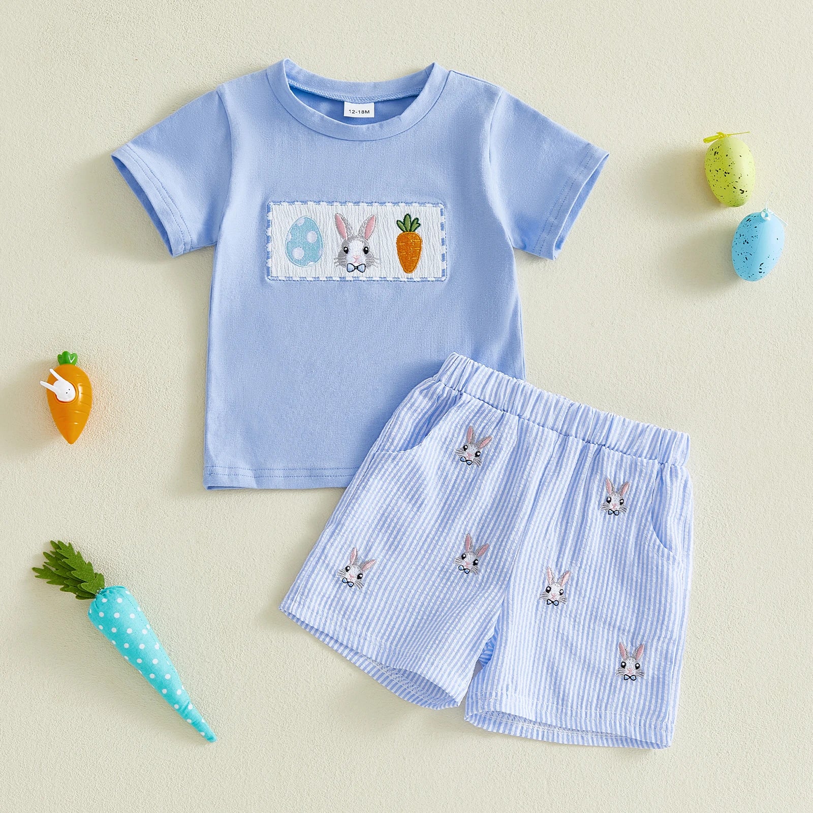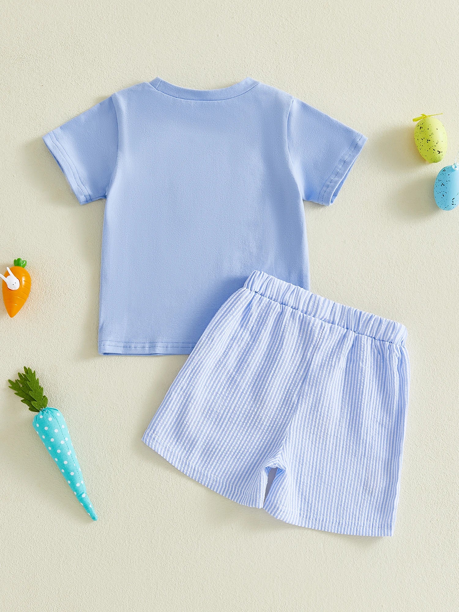 Baby Toddler Boys 2Pcs Easter Outfit Adorable Bunny Eggs Embroidery Short Sleeve Round Neck Top and Shorts Set