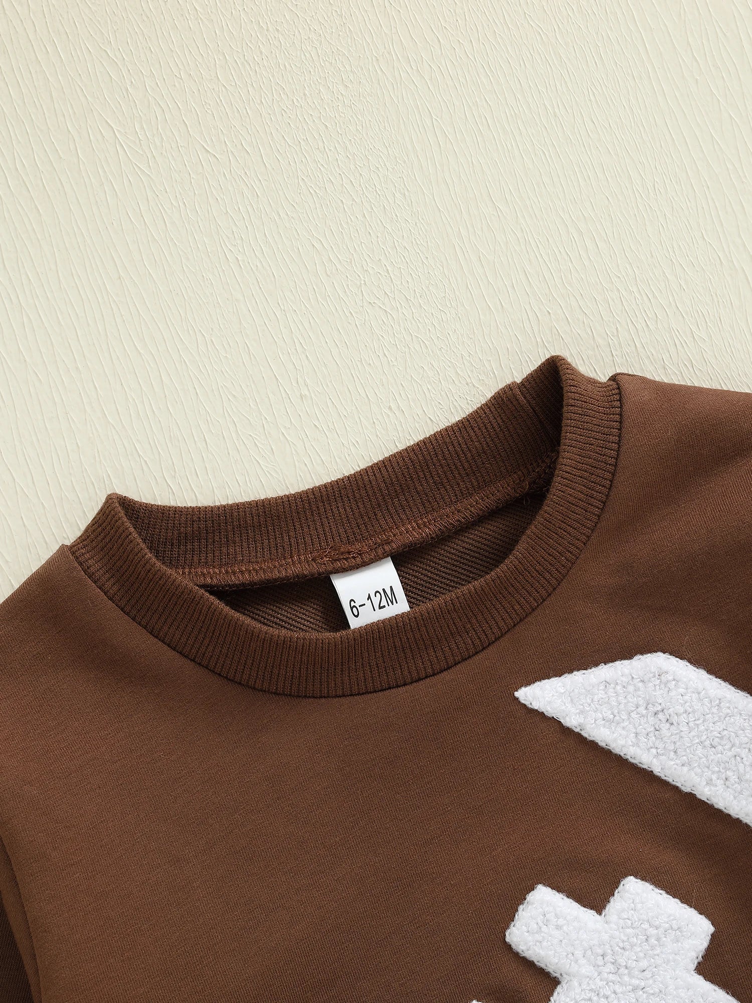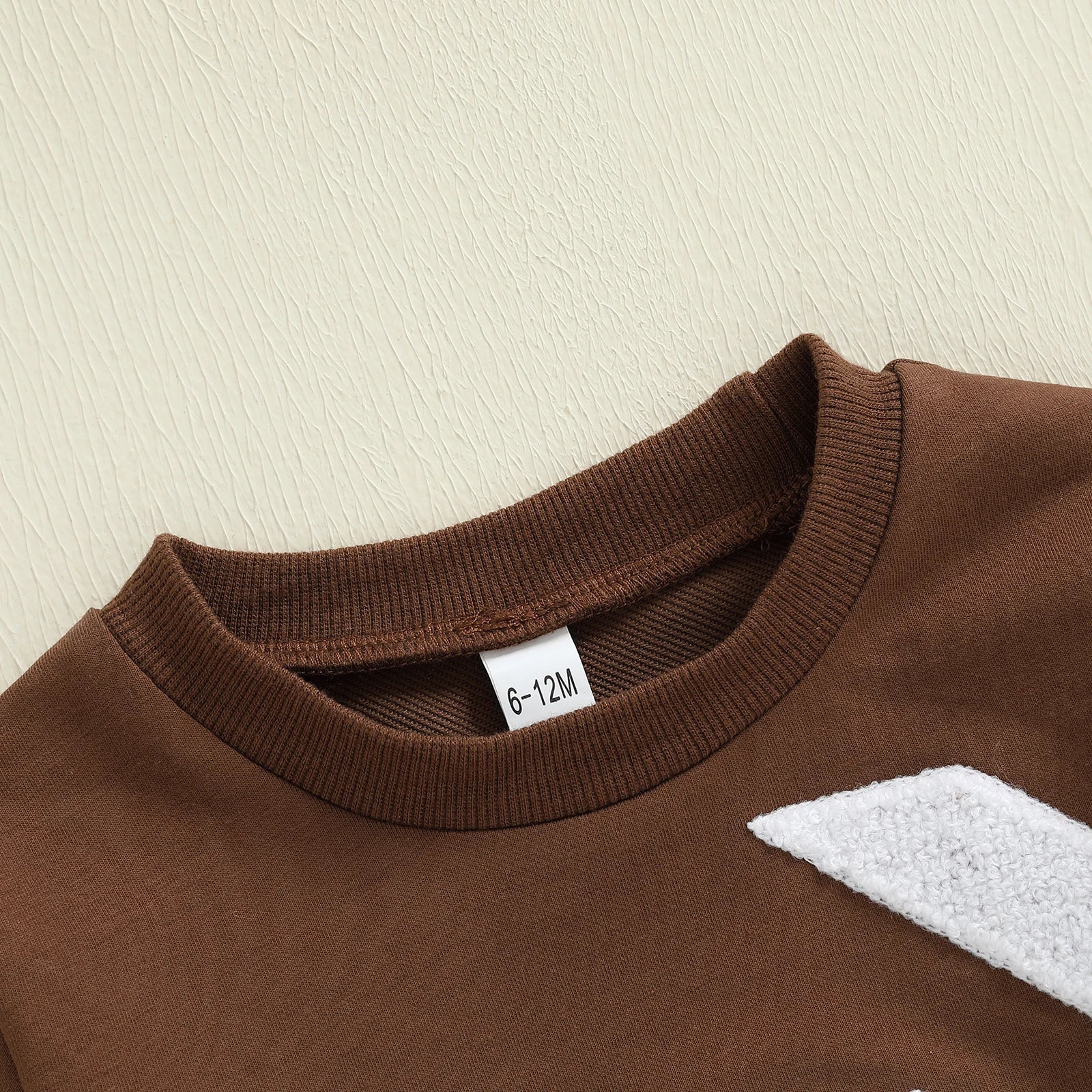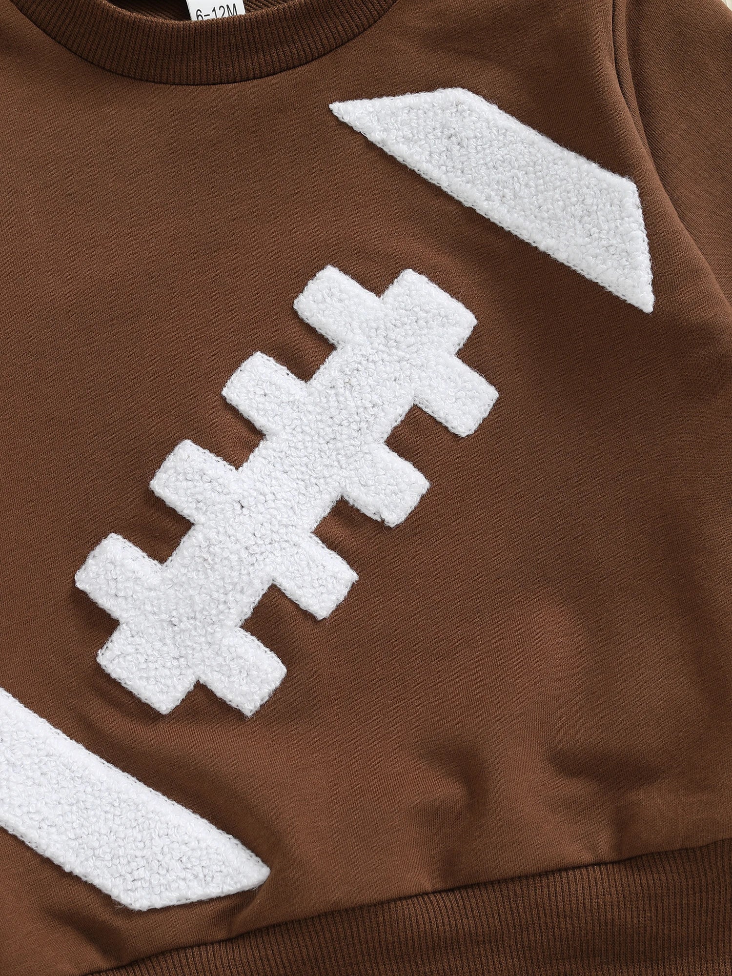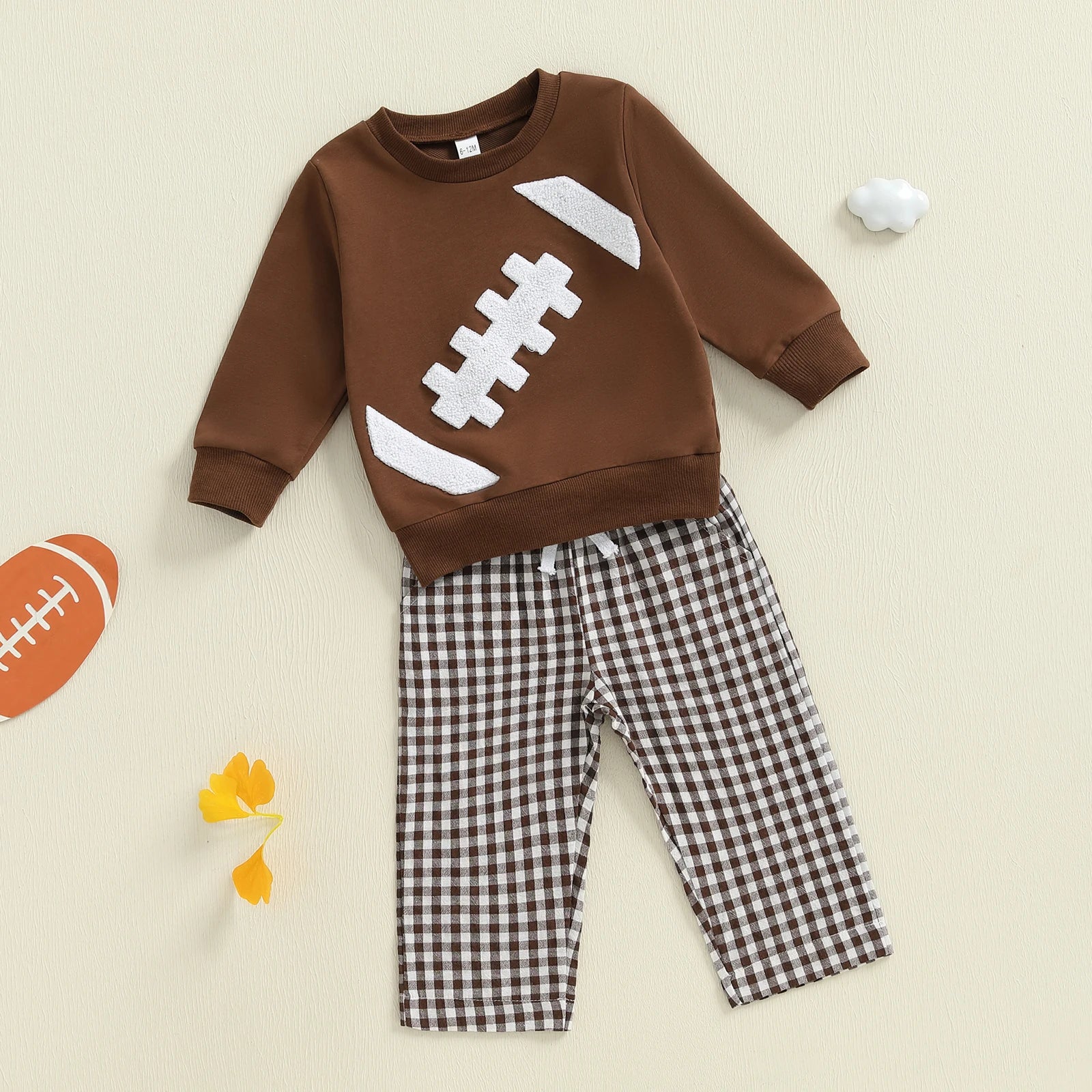 Baby Toddler Boys 2Pcs Fall Set Fashionable Long Sleeve Football Embroidery Pullover with Plaid Pants Outfits