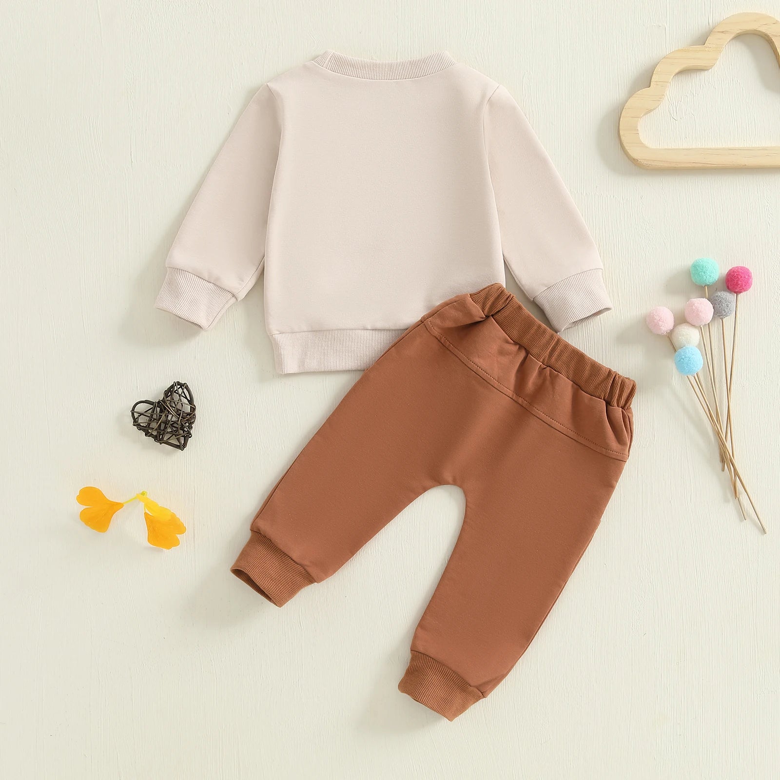 Baby Toddler Boys 2Pcs Jesus Loves Me Fall Outfit Letter Print Long Sleeve Top and Elastic Pants 2Piece Clothes Jogger Set
