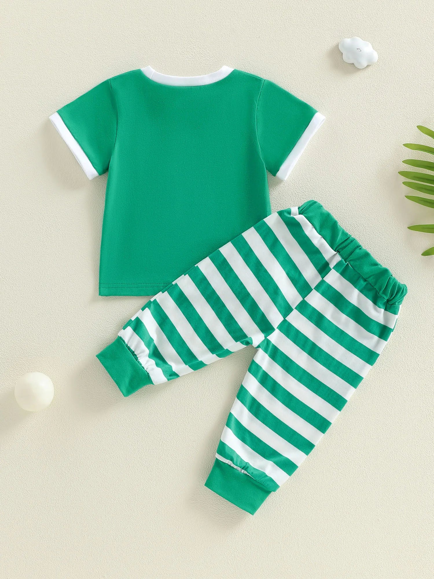 Baby Toddler Boys 2Pcs Outfit Short Sleeve Crew Neck Embroidery Golf Court T-shirt Top with Striped Pants Summer Outfit