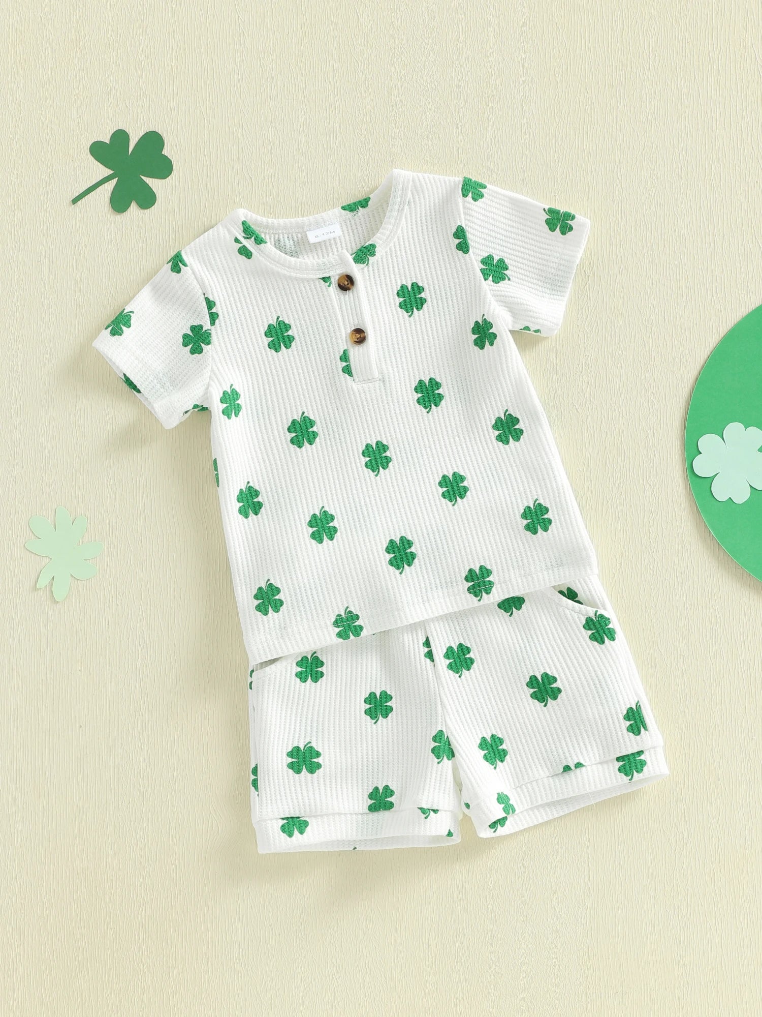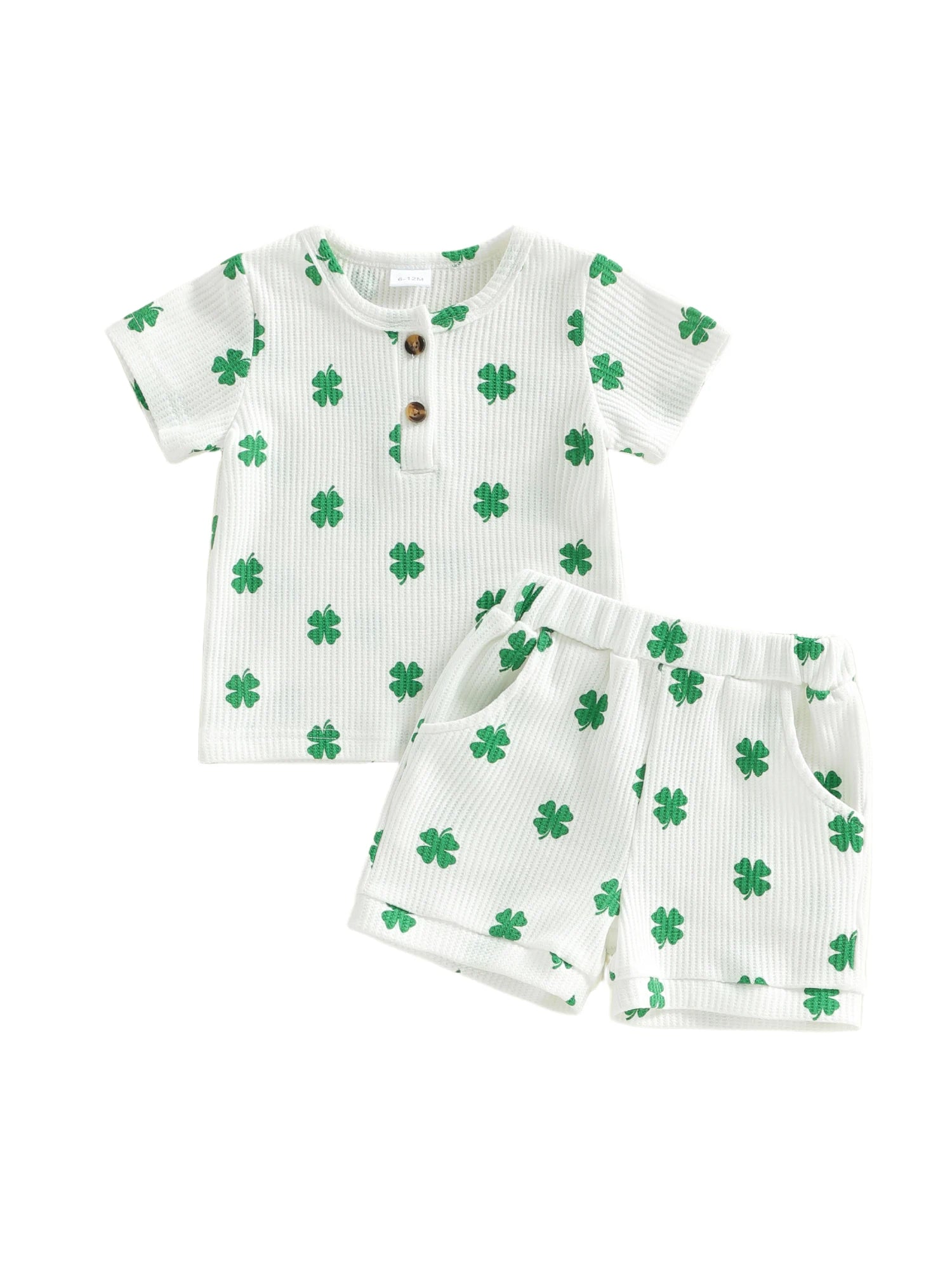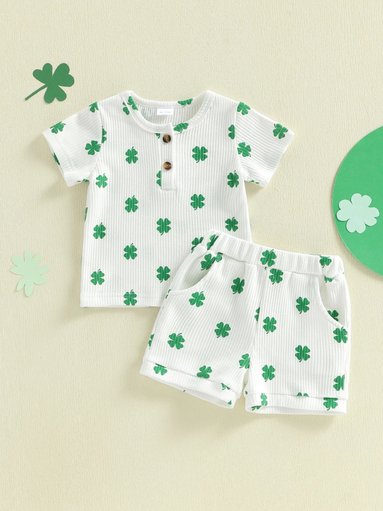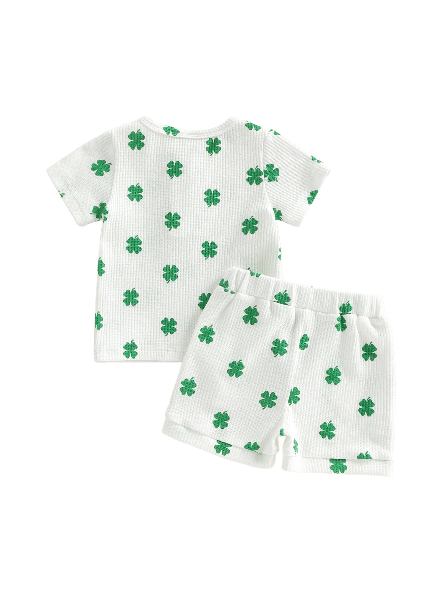 Baby Toddler Boys 2Pcs Outfit Spring Short Sleeve Crew Neck Shamrock Print Top and Elastic Waist Shorts St. Patrick's Day Set
