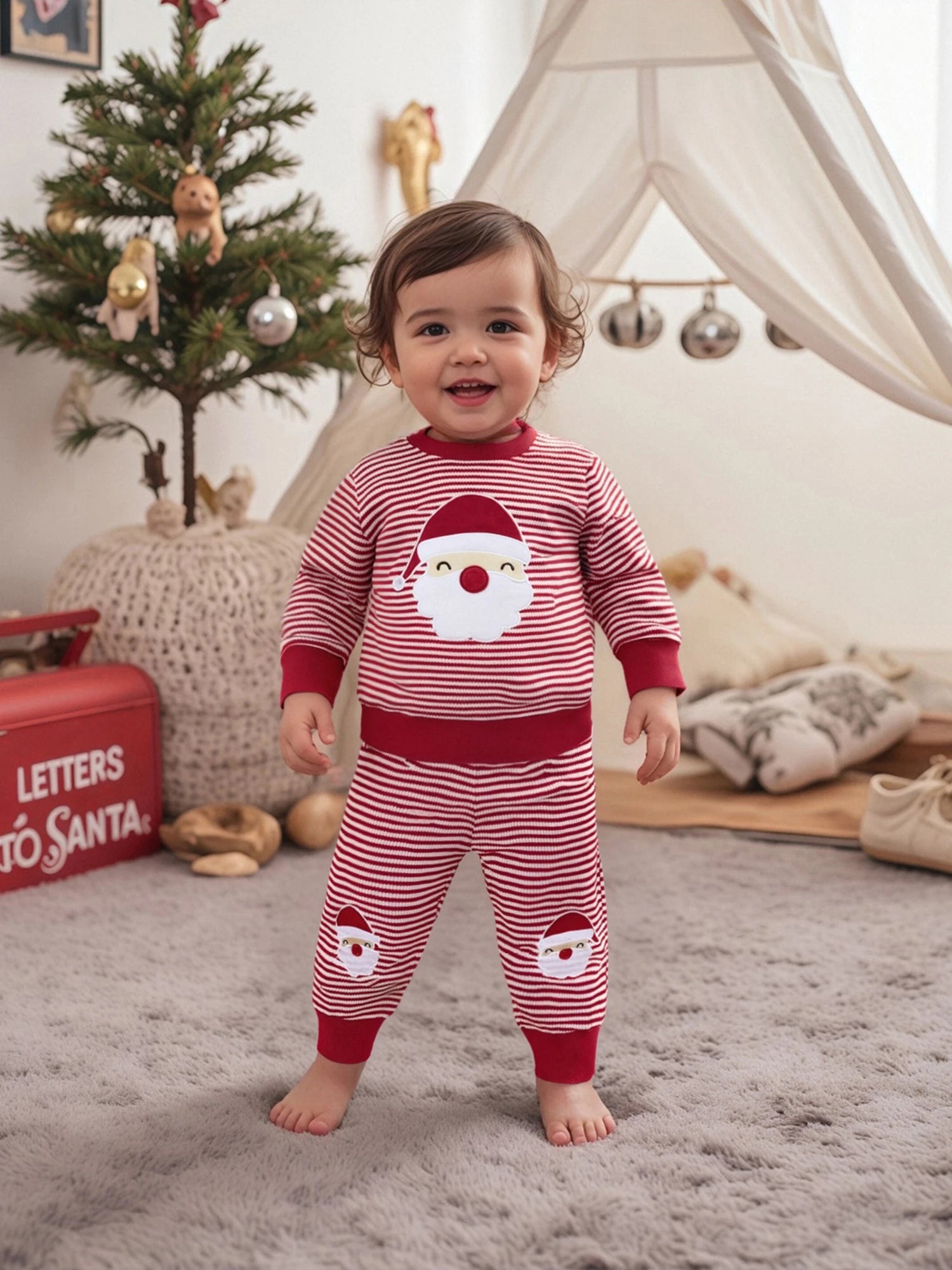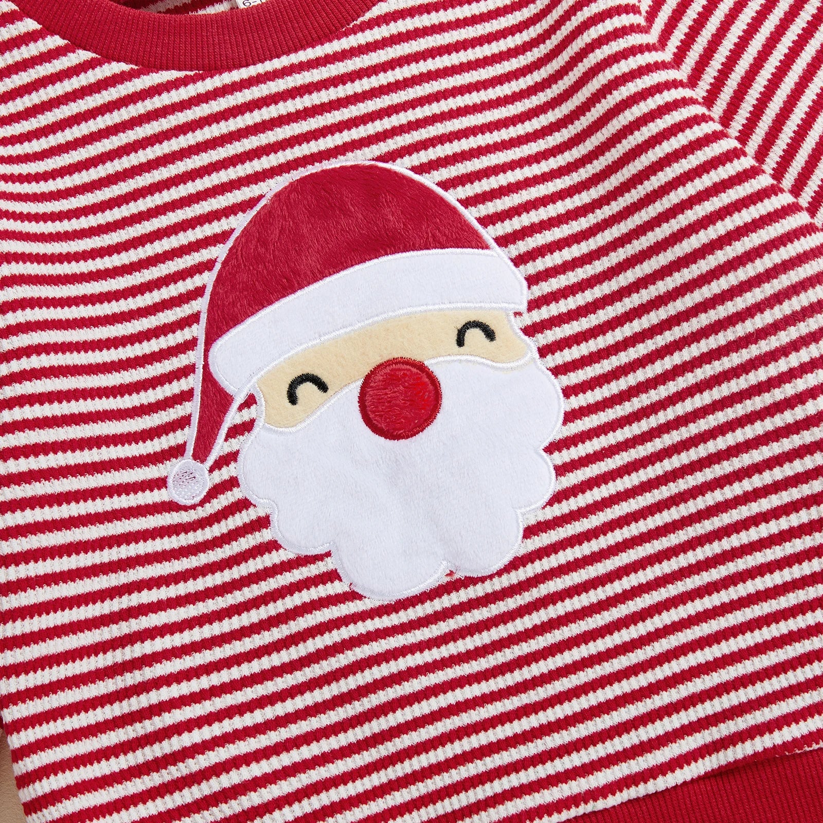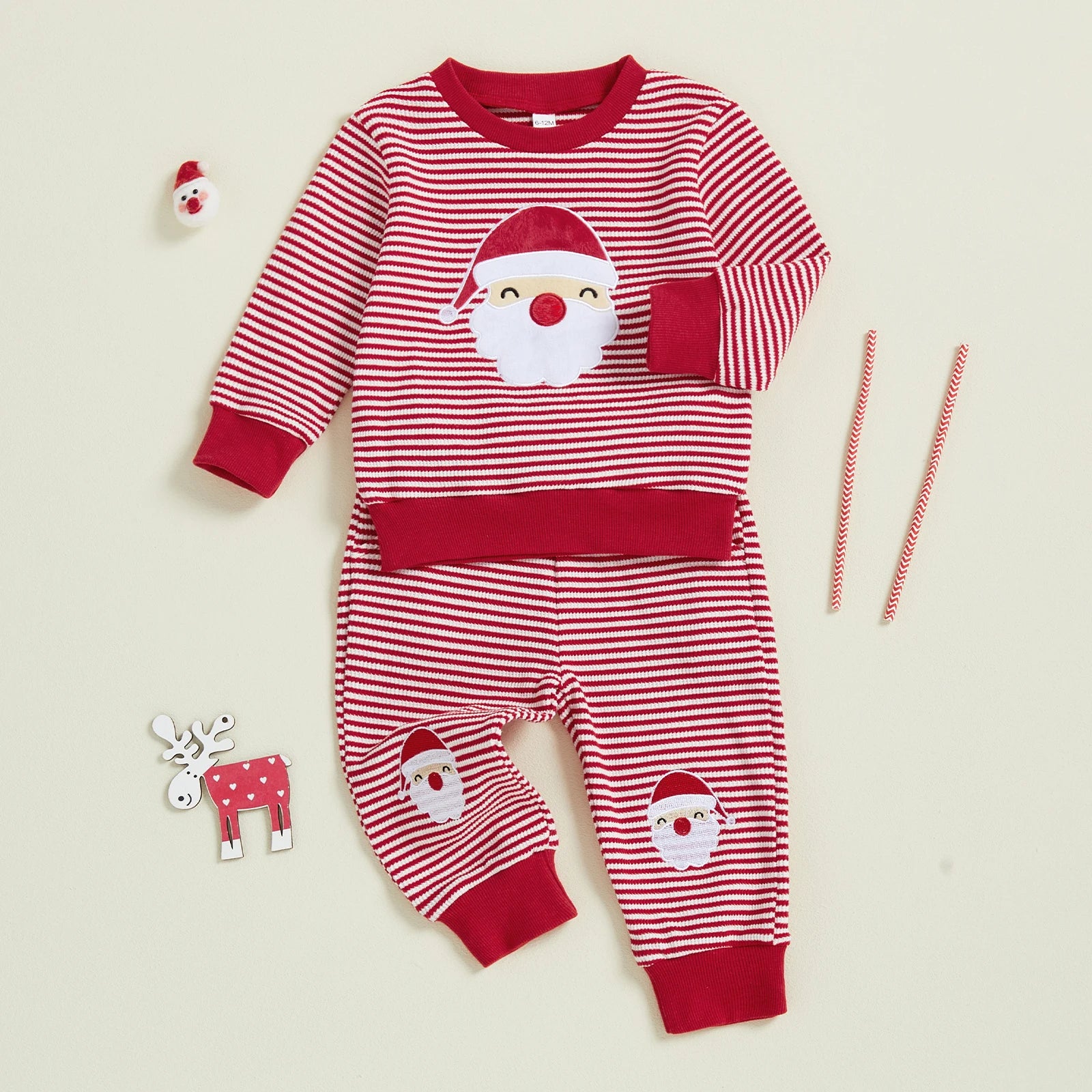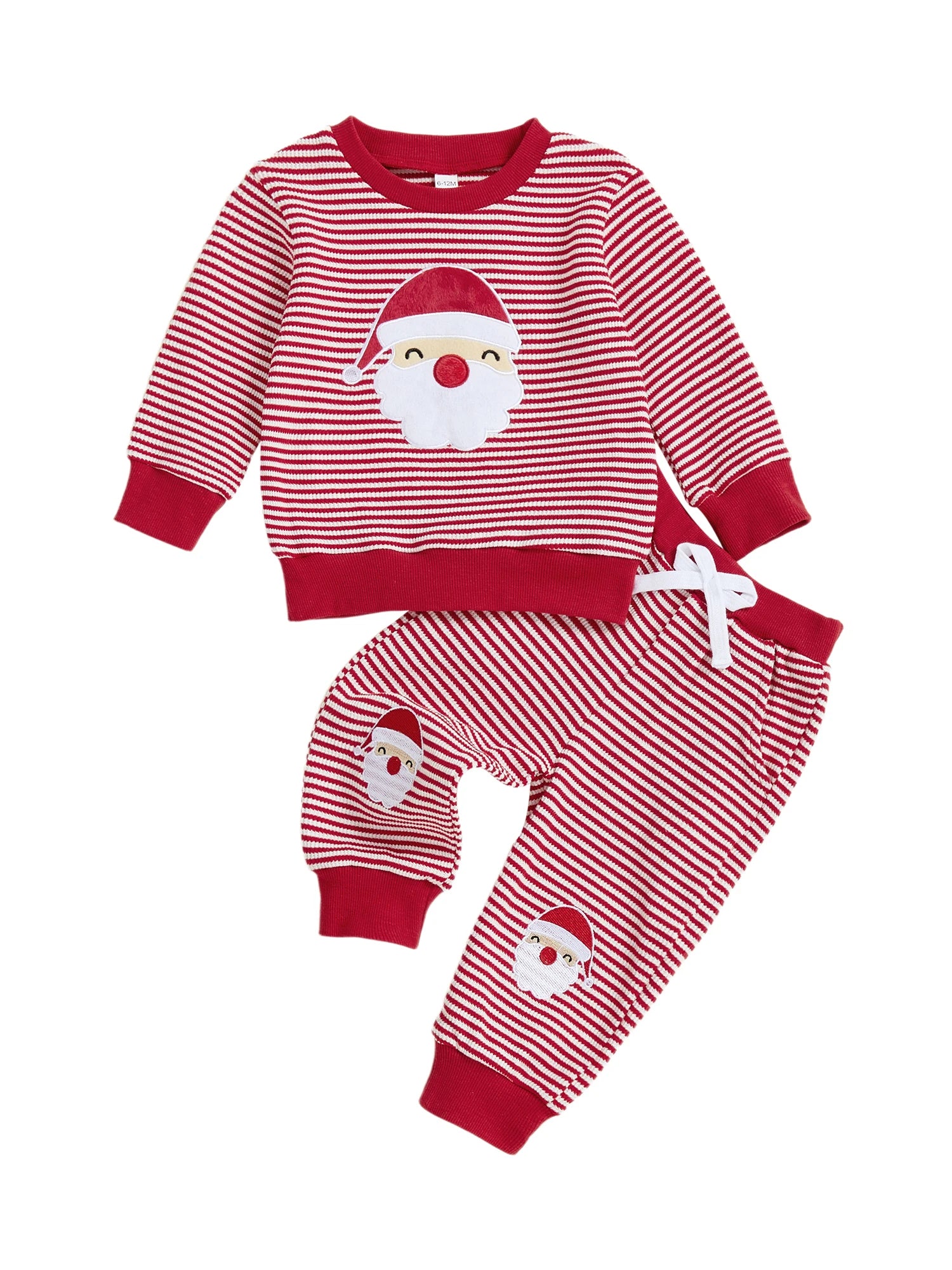 Baby Toddler Boys 2Pcs Striped Set Santa Claus Embroidery Long Sleeve Pullover Top with Pants Christmas Outfit
