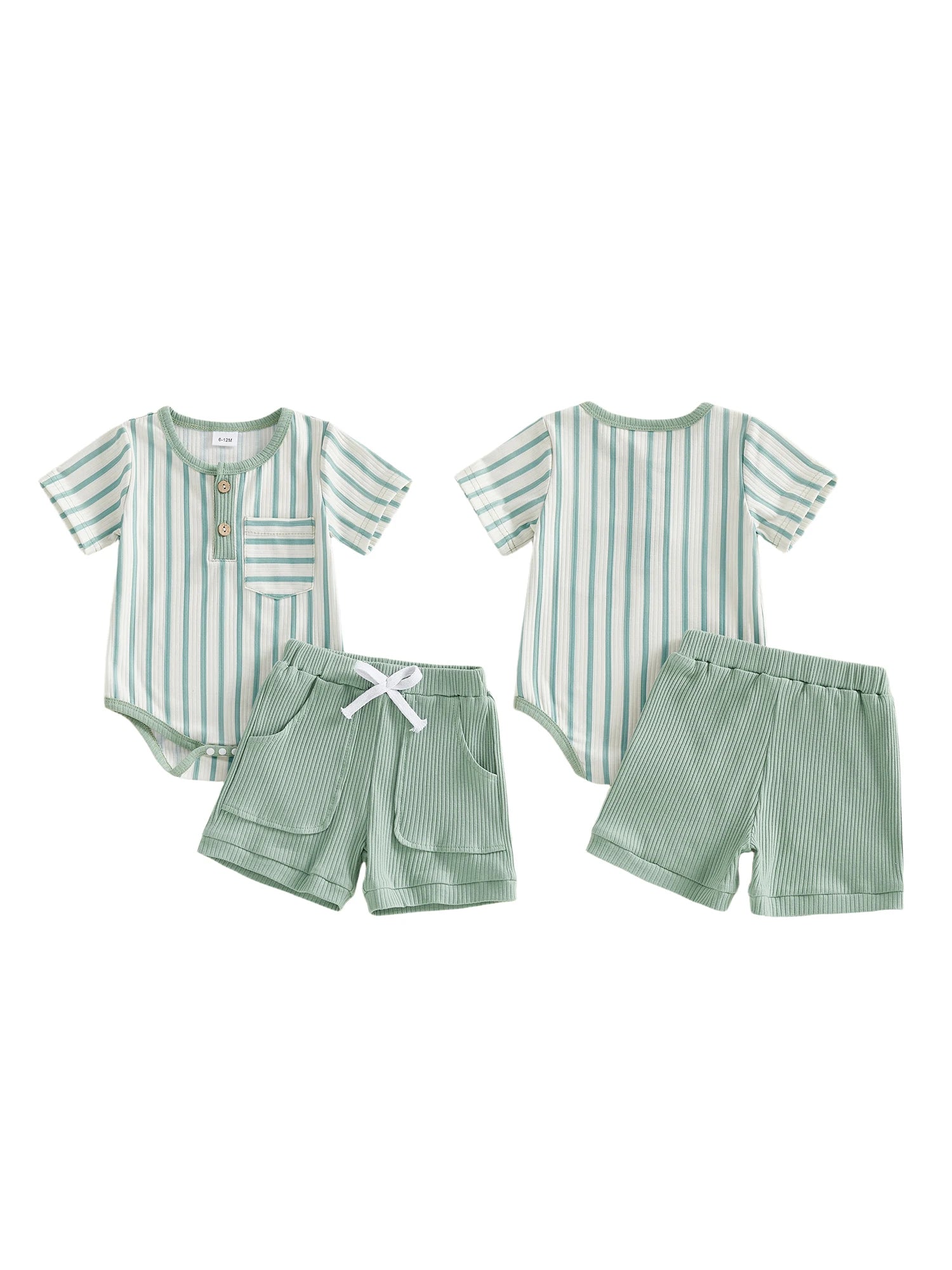 Baby Toddler Boys 2Pcs Summer Outfits Short Sleeve Stripes Print Romper Shorts Set