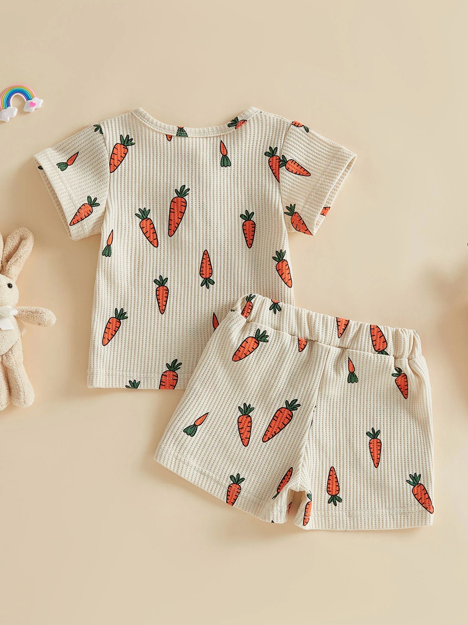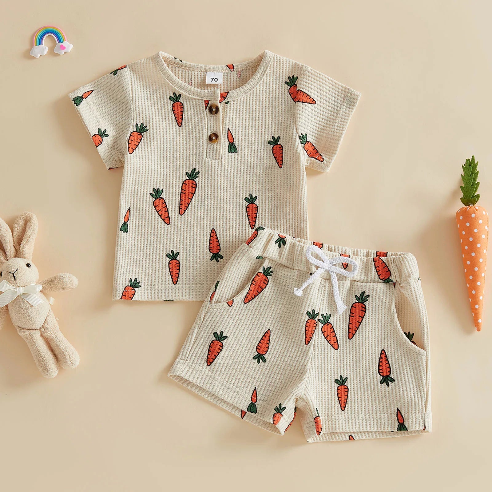 Baby Toddler Boys Girls 2Pcs Easter Outfit Carrot Print Short Sleeve Crew Neck T-shirt Top with Shorts 2-piece Set