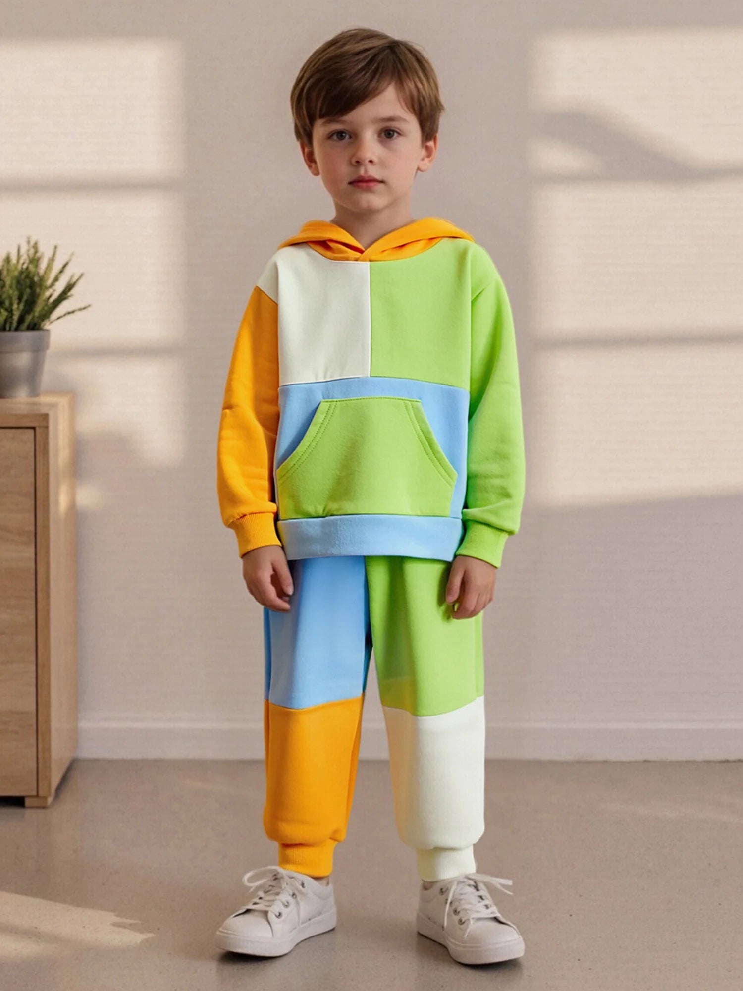 Baby Toddler Boys Girls 2Pcs Fall Outfit Loose Fit Contrast Color Long Sleeve Hoodie and Pants Jogger Set
