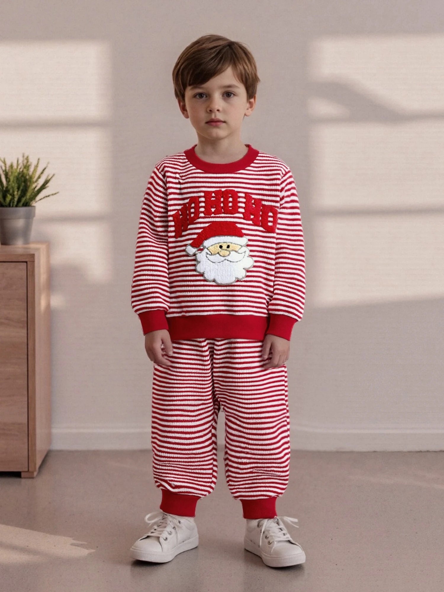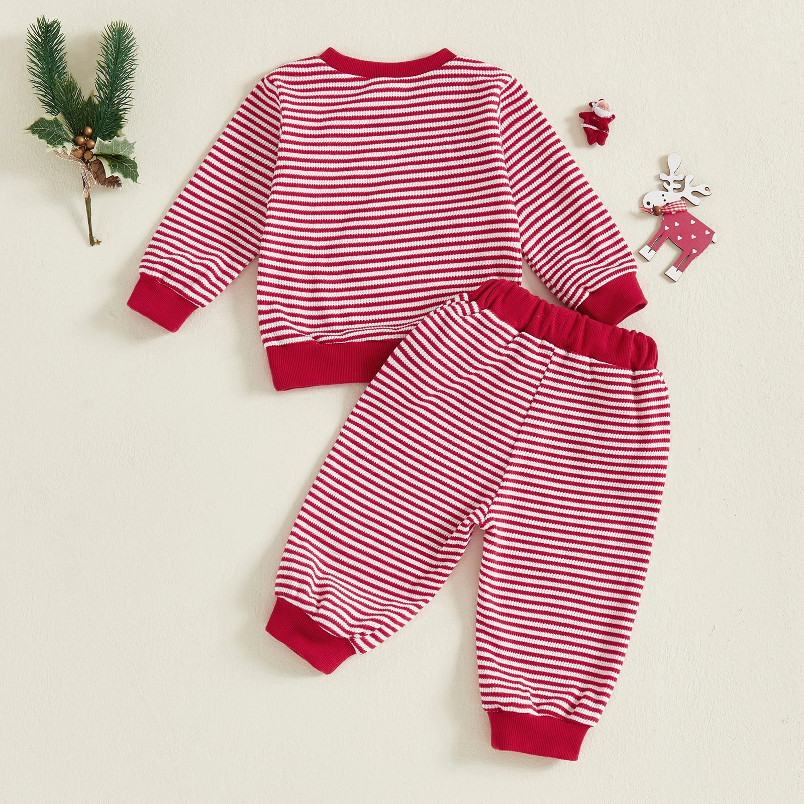 Baby Toddler Boys Girls 2Pcs Ho Ho Ho Christmas Striped Jogger Set Fashionable Long Sleeve Santa Claus Embroidery Pullover Top with Pants 2 Pcs Outfit