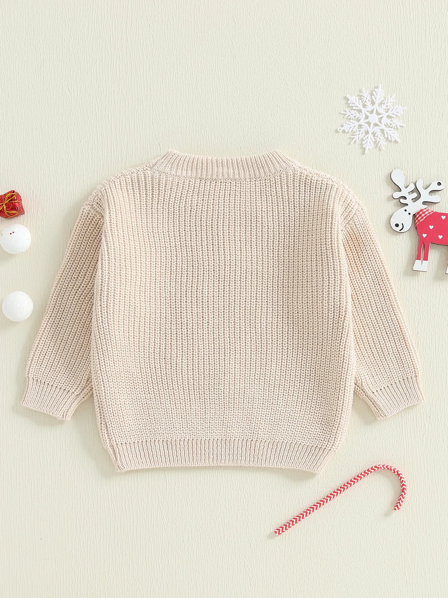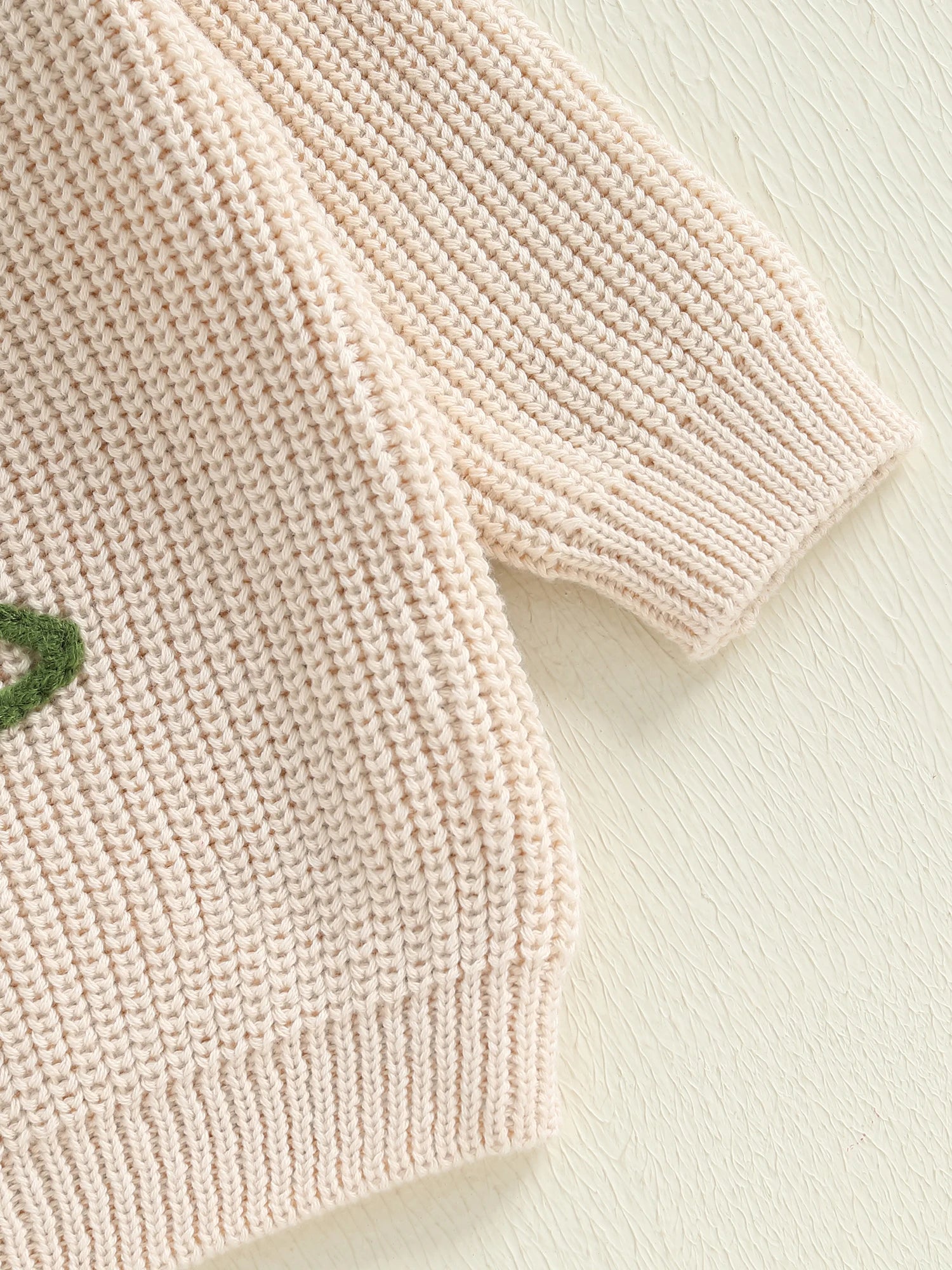 Baby Toddler Boys Girls Christmas Sweater Christmas Tree Embroidered Ribbed Long Sleeve Knitted Top for Winter